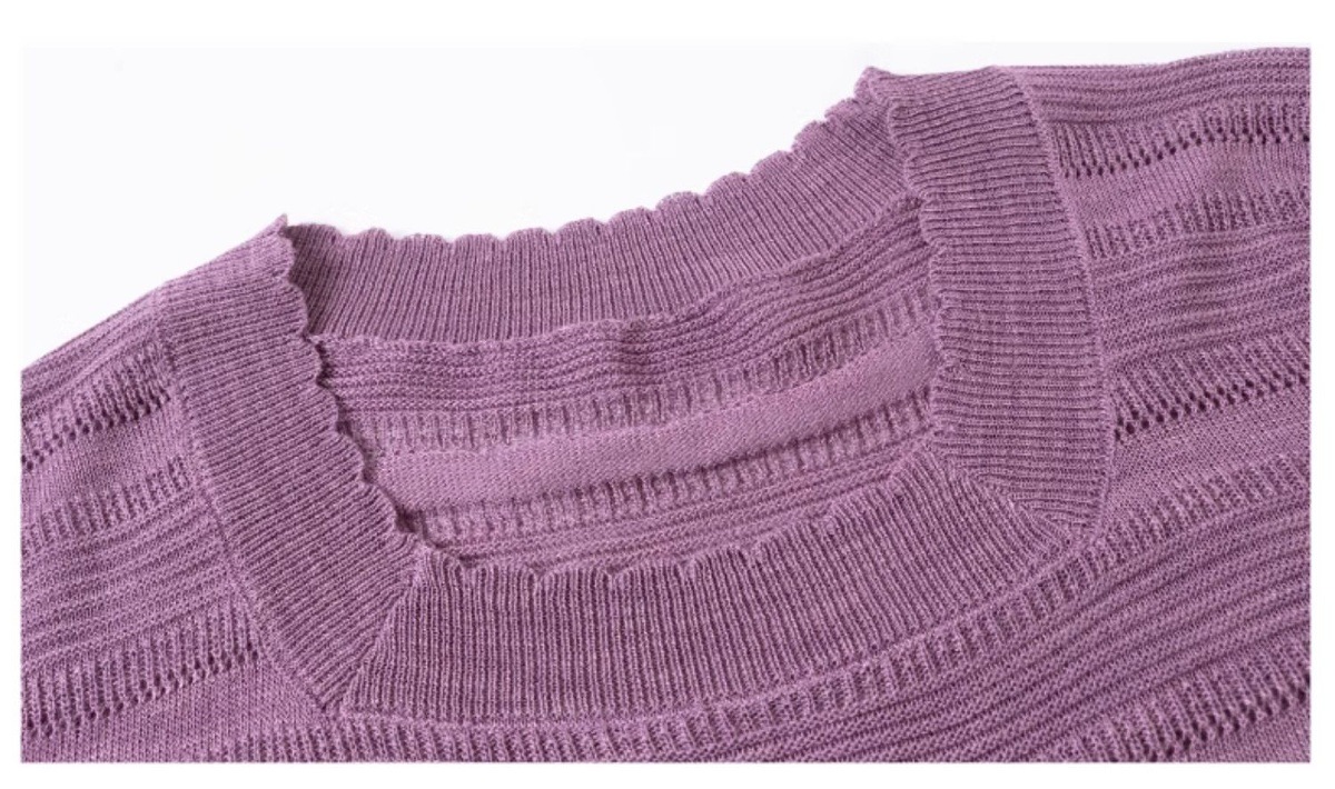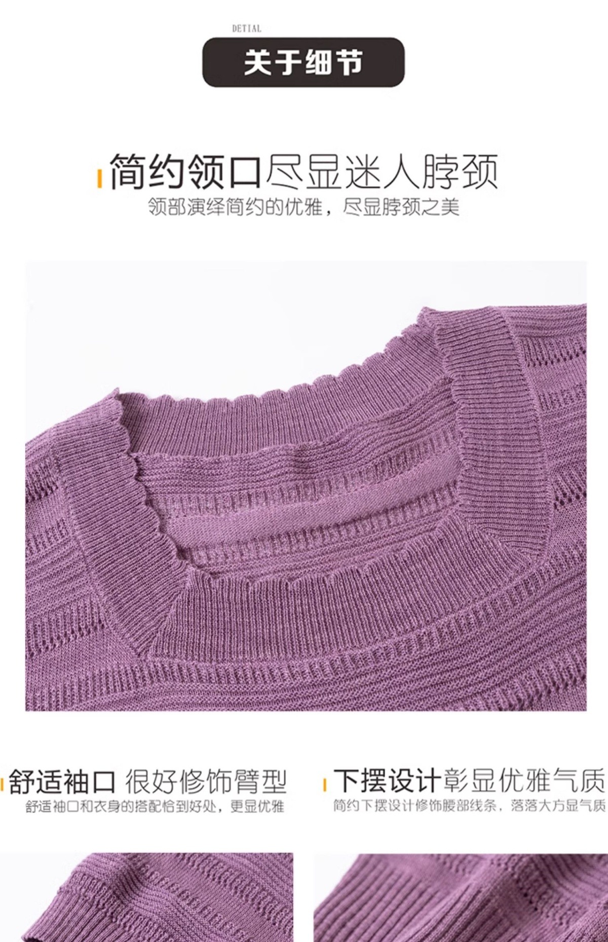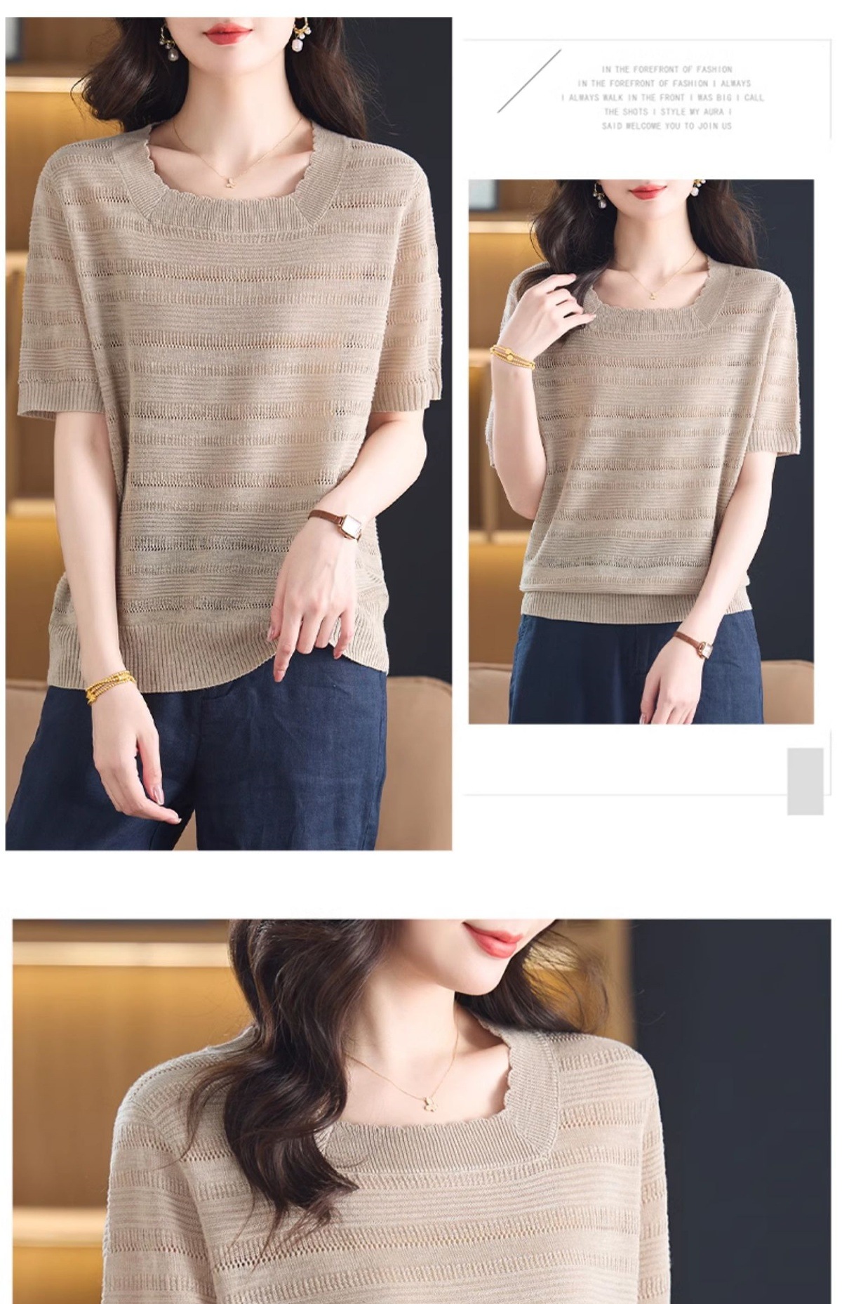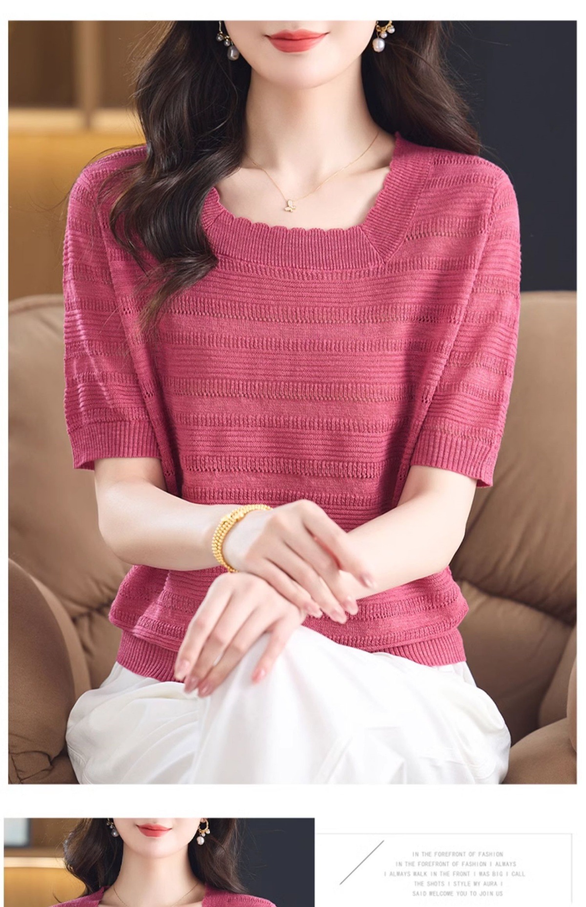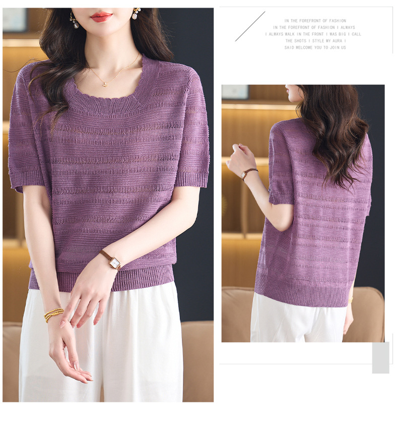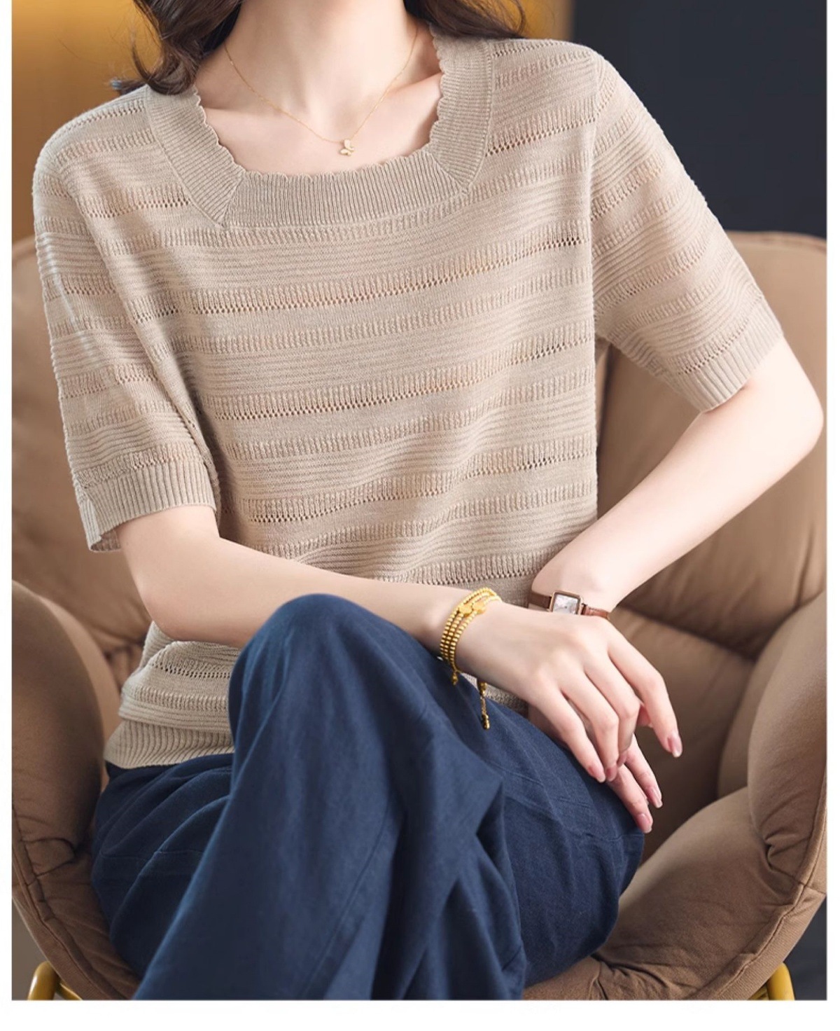 短款冰丝针织短袖T恤,薄款体恤宽松休闲小个子套头上衣CC- 5-6363