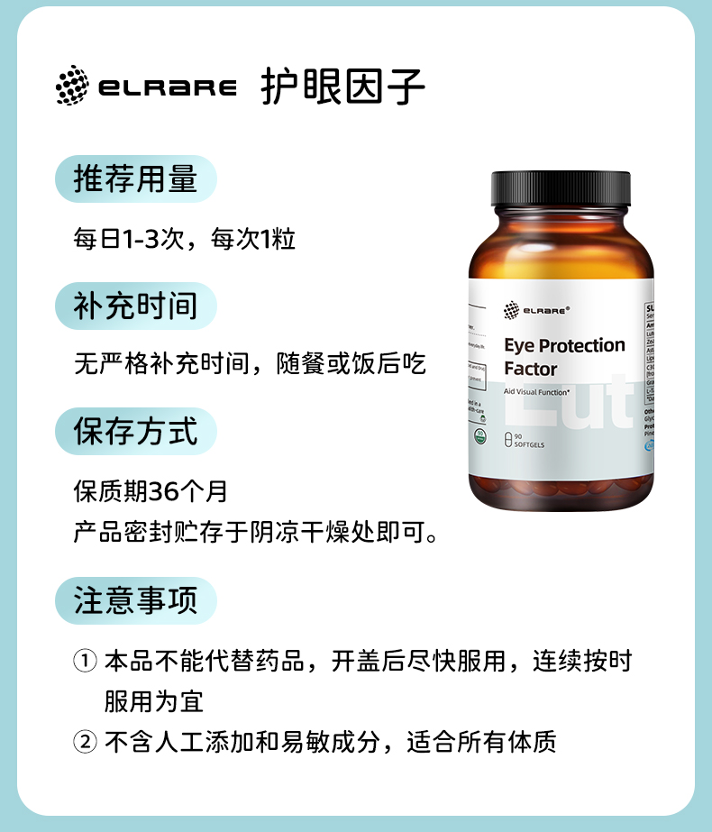 海淘 ELRARE伊莱瑞 EyeProtectionFactor护眼因子 90粒/瓶 26/11
