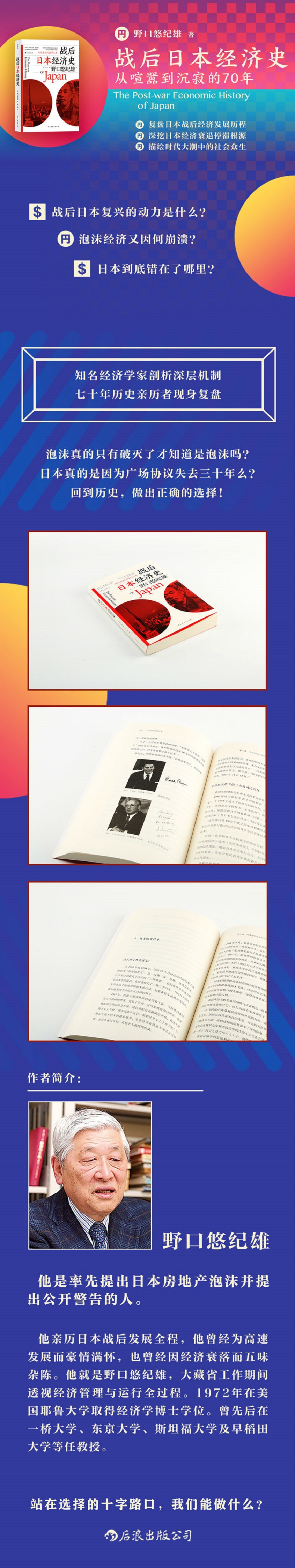 ◎回顾70年境遇变迁,生动描绘时代大潮中的社会众生相。 除了从全局视角“鸟瞰”日本经济的整体格局,野口悠纪雄还在本书中记录了自己和家人、朋友所经历的经济和社会变迁。他们曾经在高速增长时期意气风发,也曾经为经济衰落萧条而黯然神伤,现在仍有很多人在为未知的明天而焦虑和迷茫。作者饱含深情的回顾和叙述,使战后日本经济史不再是冰冷枯燥的数据和图表,而是化作一幕幕立体、生动的人生场景展现在我们面前。 ◎借鉴日本经济的起起落落,思考如何走好自己的路。 战后日本经济的发展过程可以为我们提供极为重要的参考和借鉴。特别是泡沫经济时期人们对股票和房地产的狂热和痴迷,泡沫经济崩溃给人们带来的巨大冲击和惨痛损失。这些都促使我们进一步思考:中国经济会重蹈日本覆辙吗?会如当时的世界第二大经济体一样,在“爆买全球”之后经历“失去的三十年”吗?