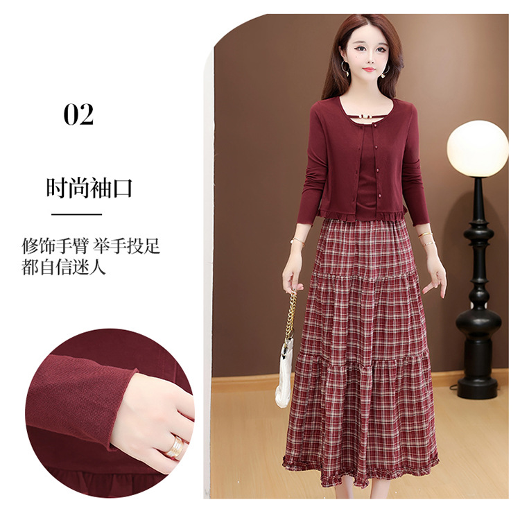 QYM 53B252-Y时尚三件套背心+短款外套+高腰格纹长款半身裙 商品图2