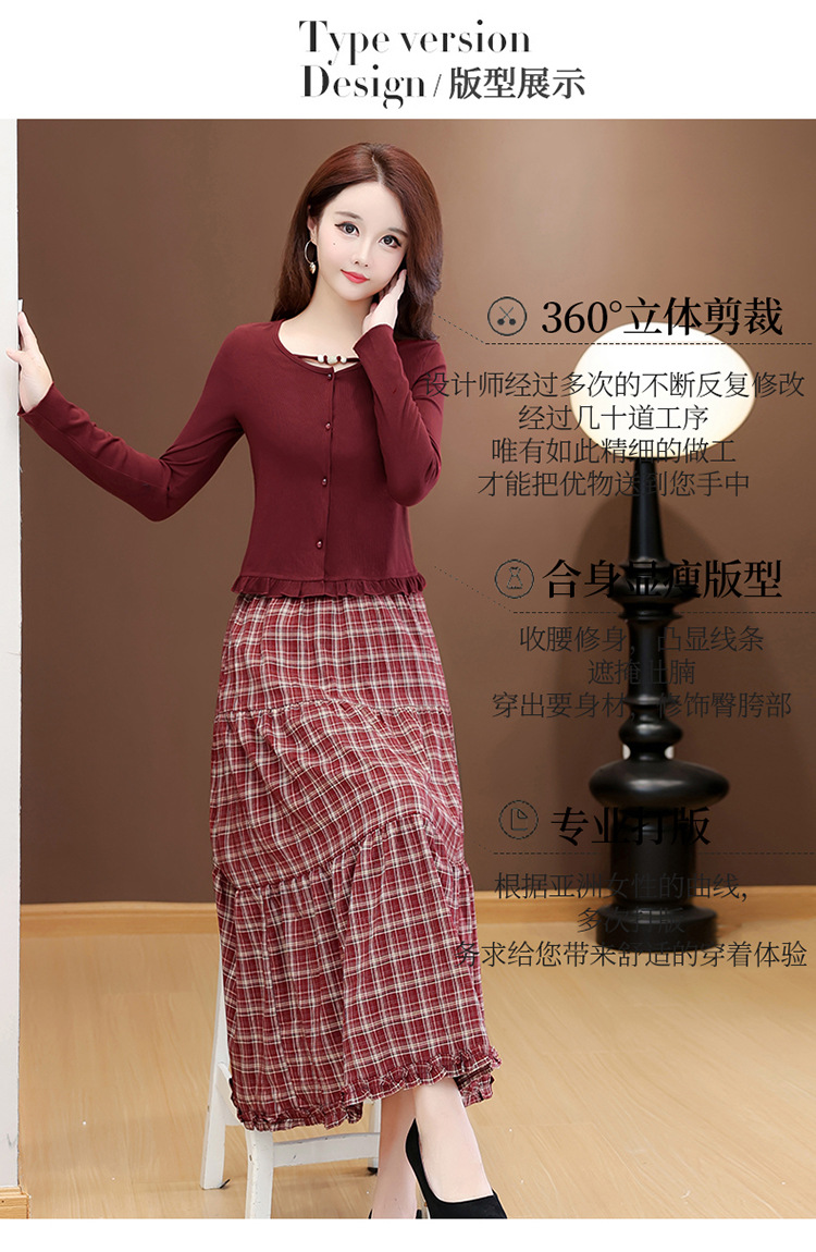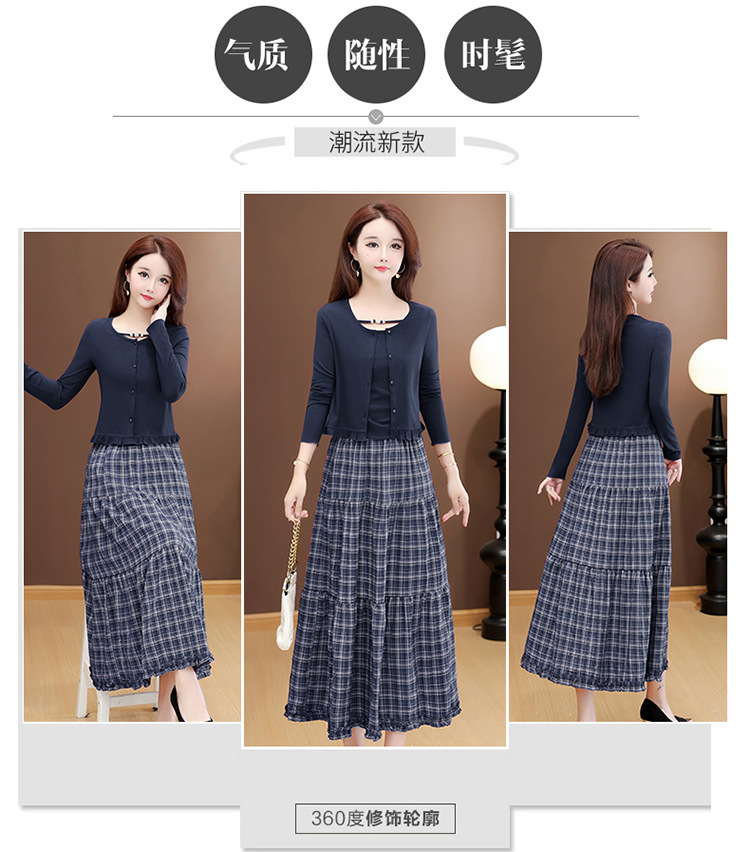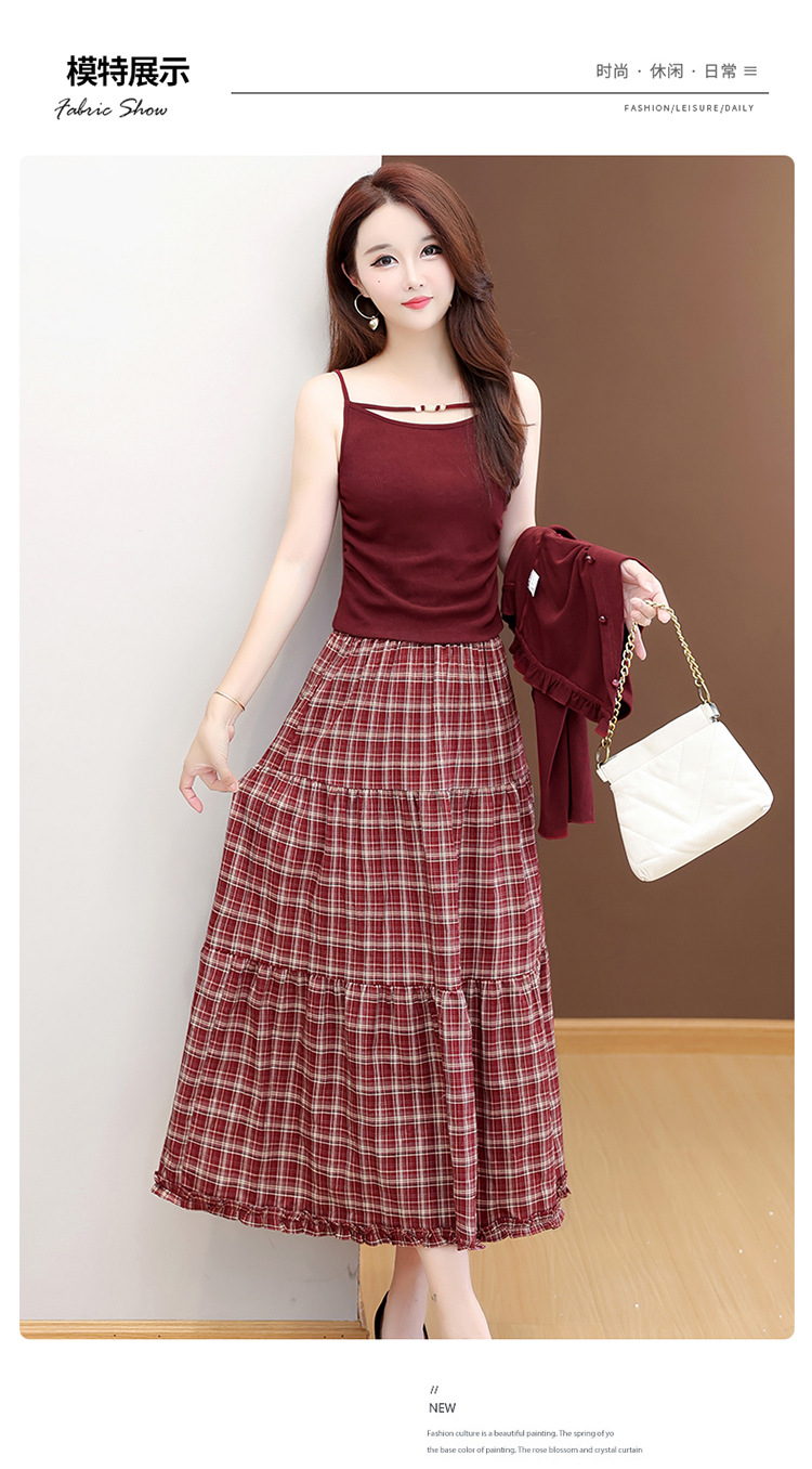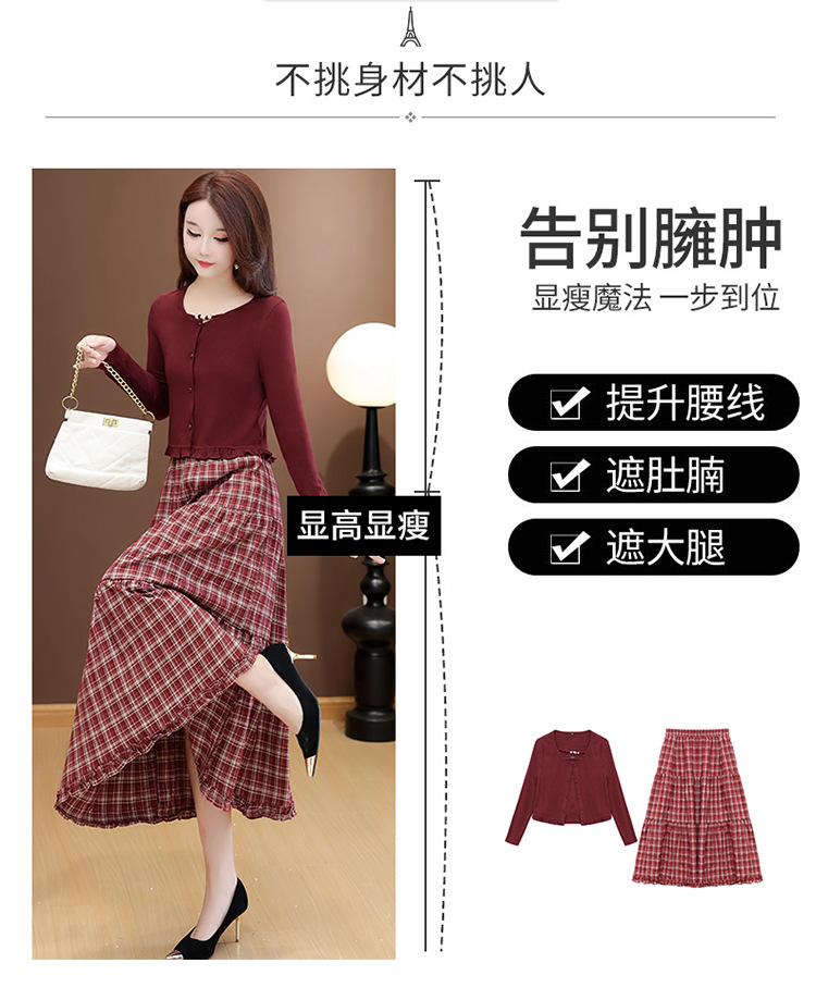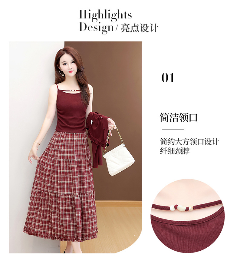 QYM 53B252-Y时尚三件套背心+短款外套+高腰格纹长款半身裙 商品图4