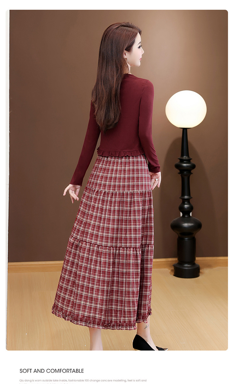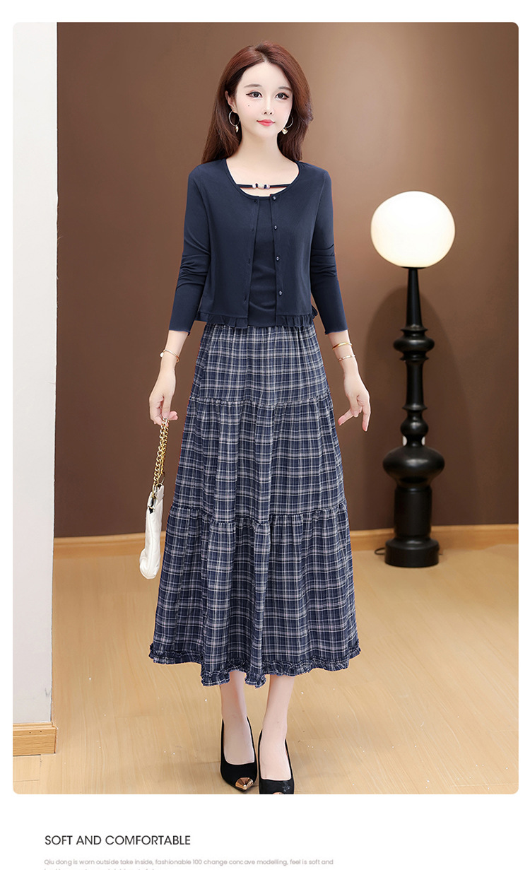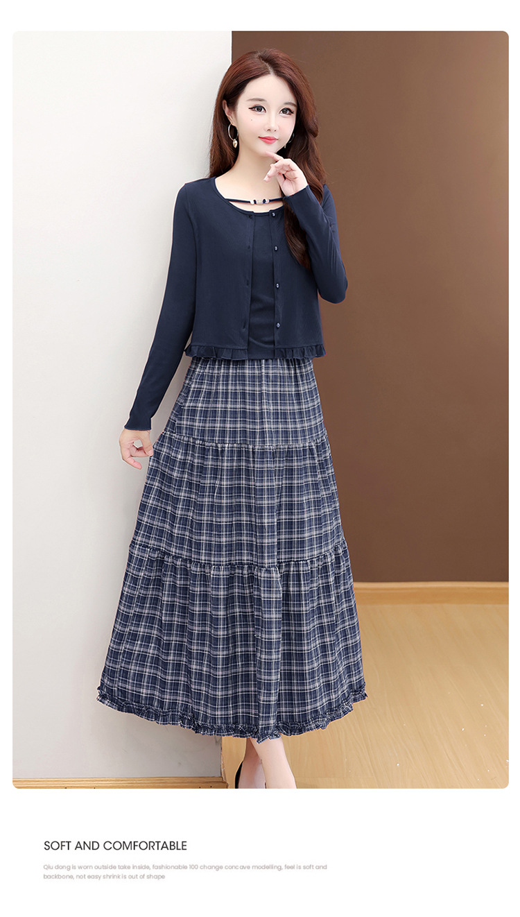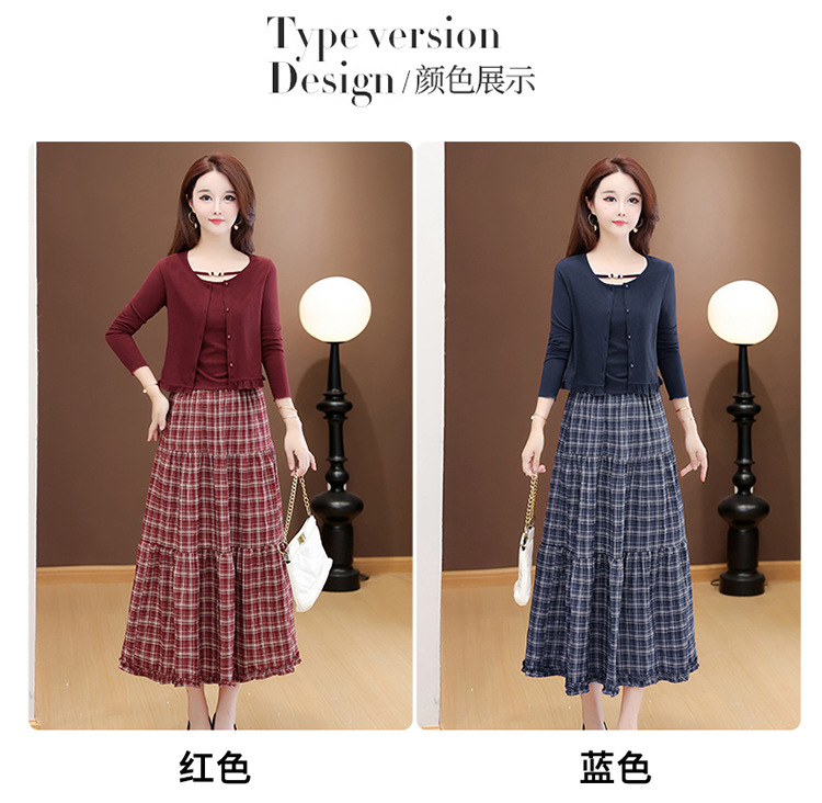 QYM 53B252-Y时尚三件套背心+短款外套+高腰格纹长款半身裙 商品图4