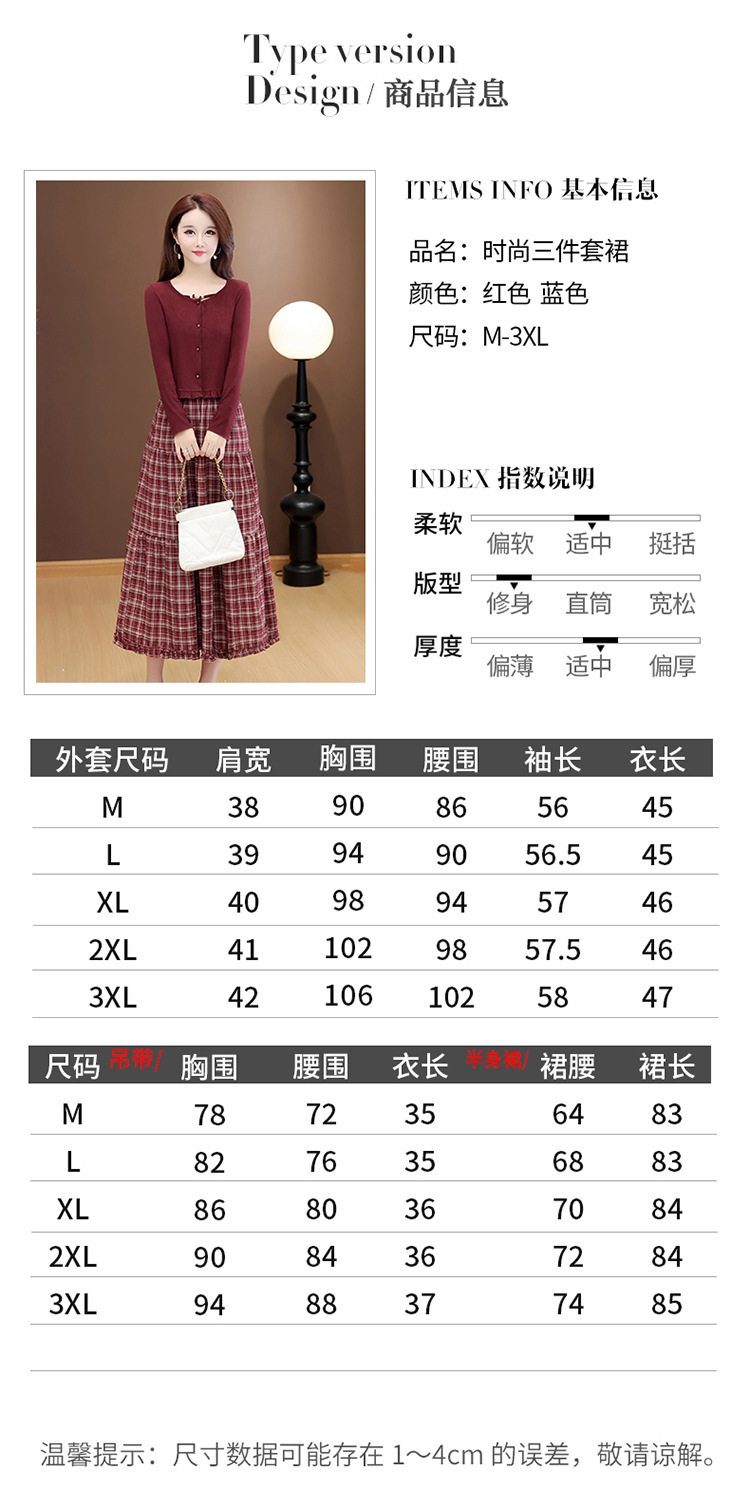 QYM 53B252-Y时尚三件套背心+短款外套+高腰格纹长款半身裙 商品图3