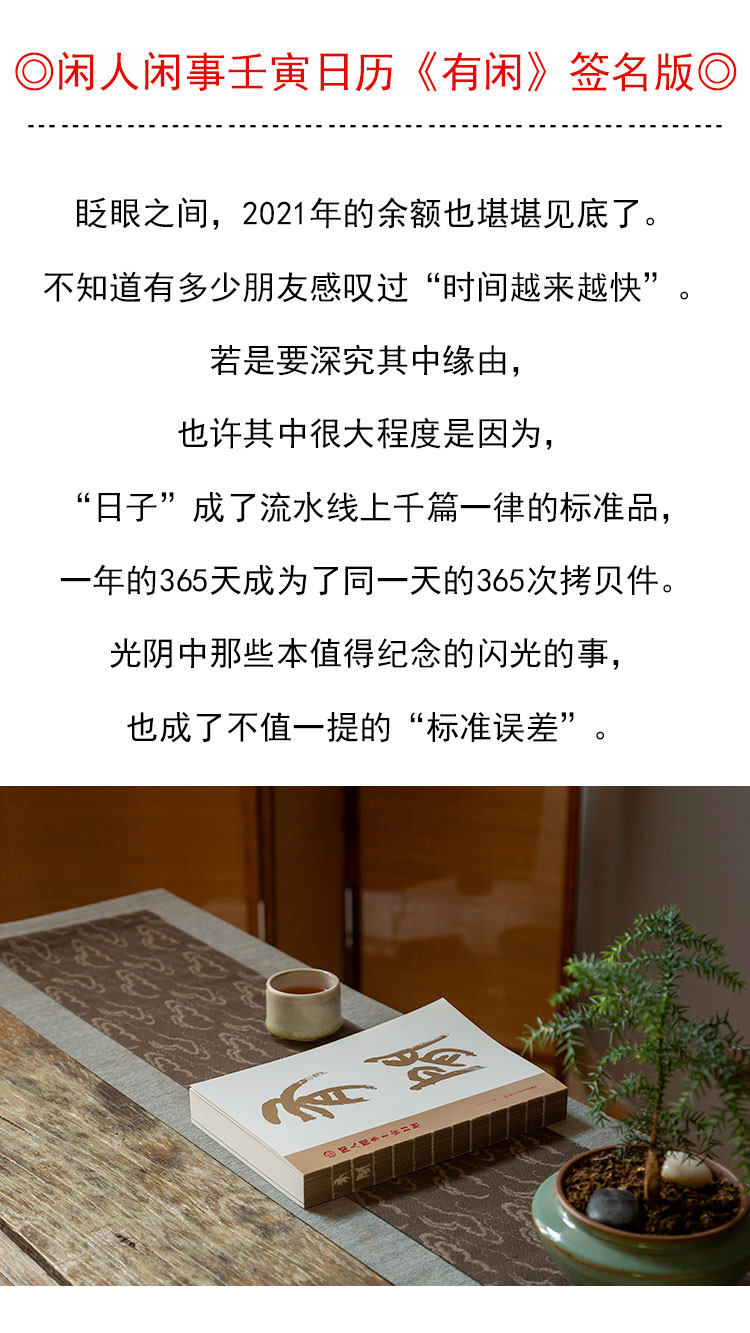 茶香记 有闲·闲人闲事壬寅日历 签名版 生活美学 日历 手账