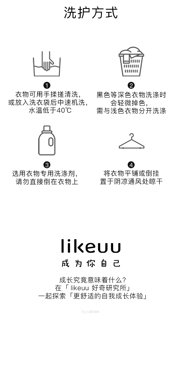 - likeuu是专注于为6~15岁的青少年创造柔软、无束缚的成长体验,以好奇心为灵感的成长发育期贴身衣物品牌。likeuu的产品覆盖内衣、内裤、保暖衣、家居服、运动等品类。