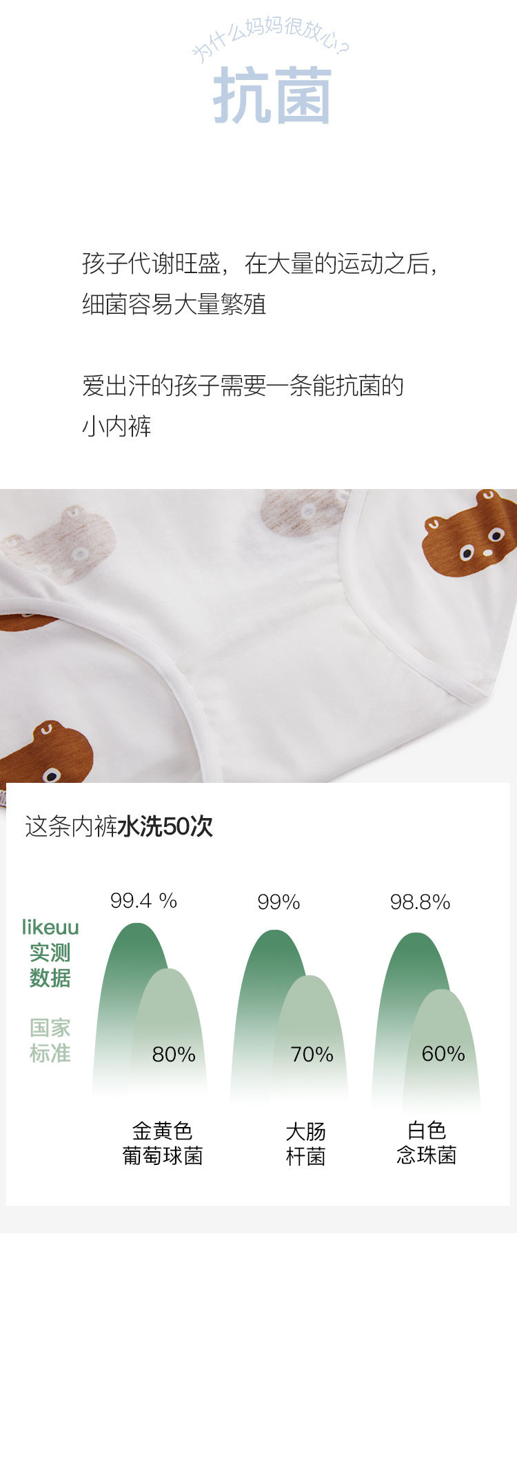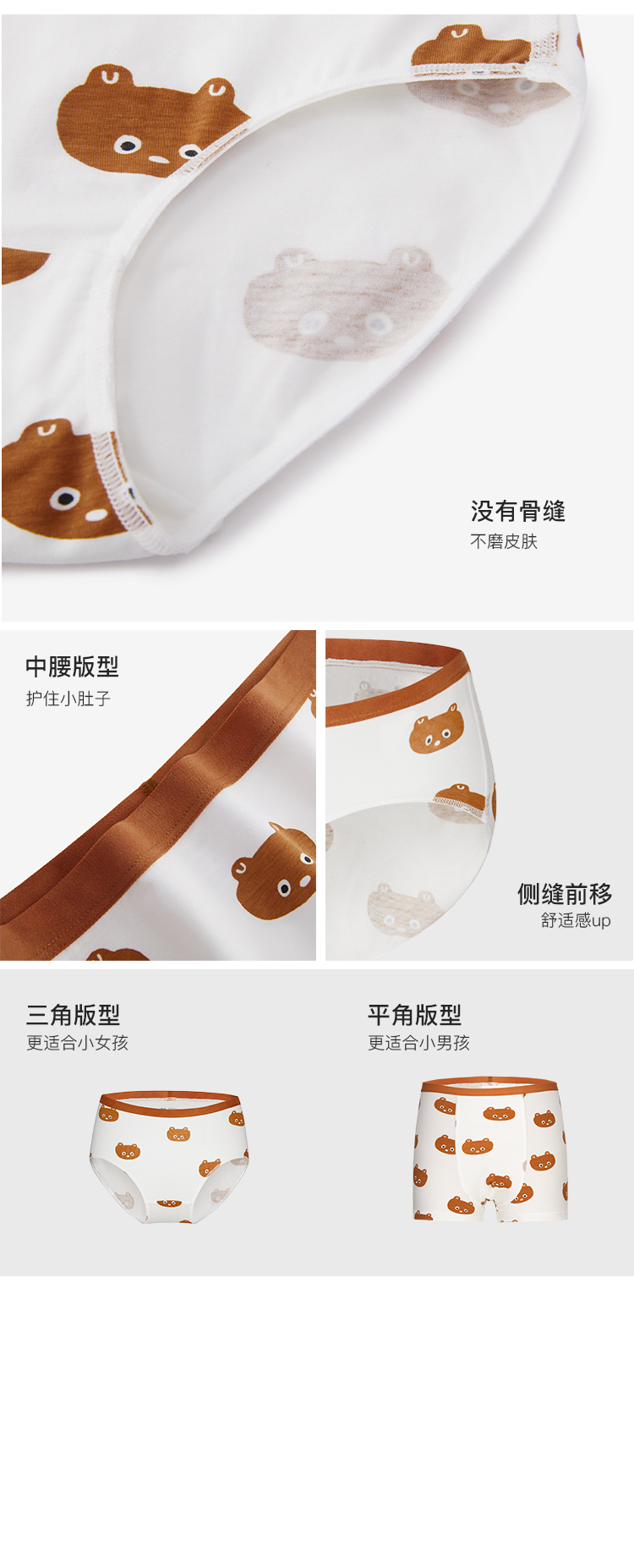 likeuu儿童内裤男女童小熊印花抗菌透气女童内裤三条装ZY