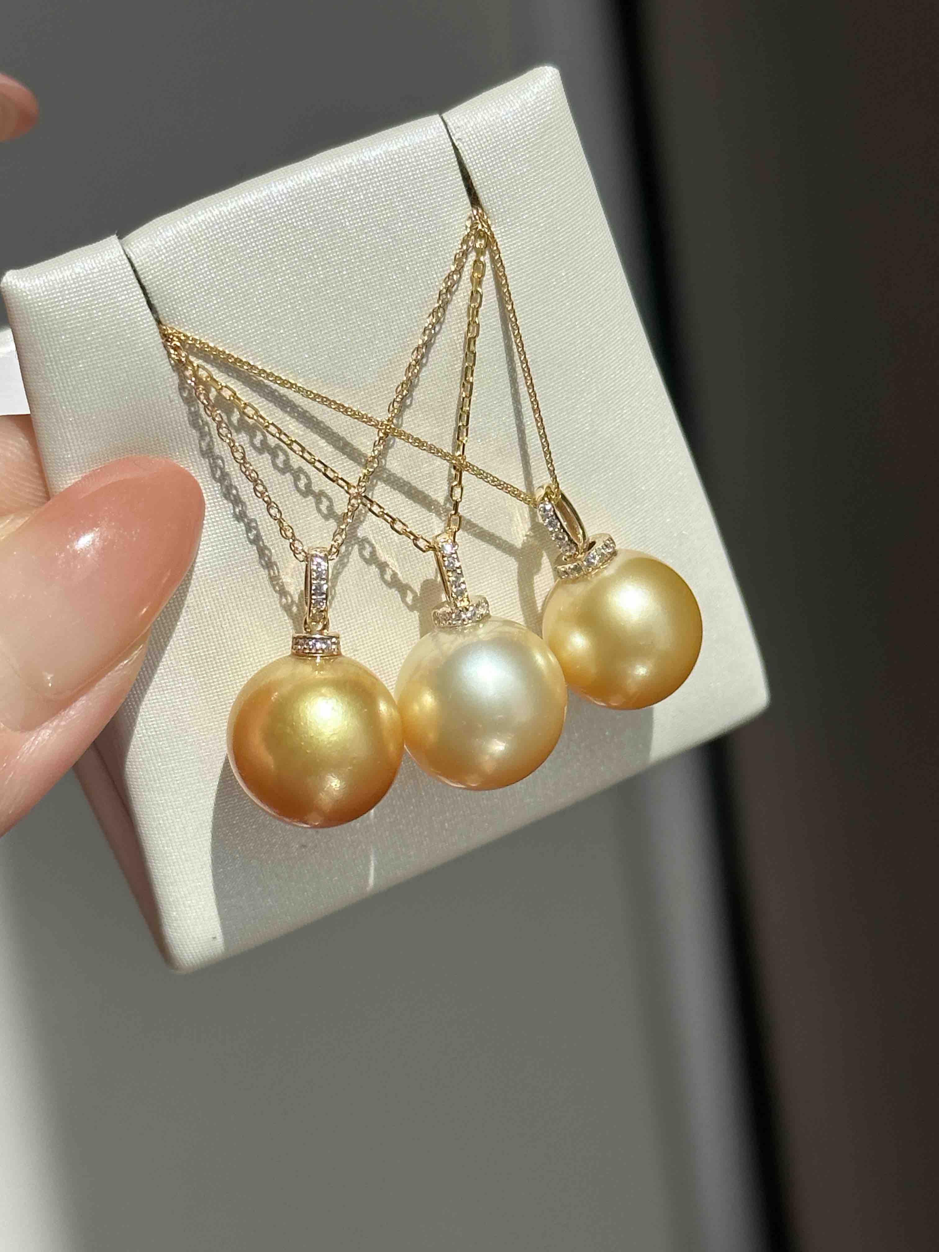 • 浓金12-13(¥2800):浓金度拉满!自带高级暖调滤镜,微微皮纹藏在珠光里,小瑕疵在背面,佩戴完全隐形,性价比超高。