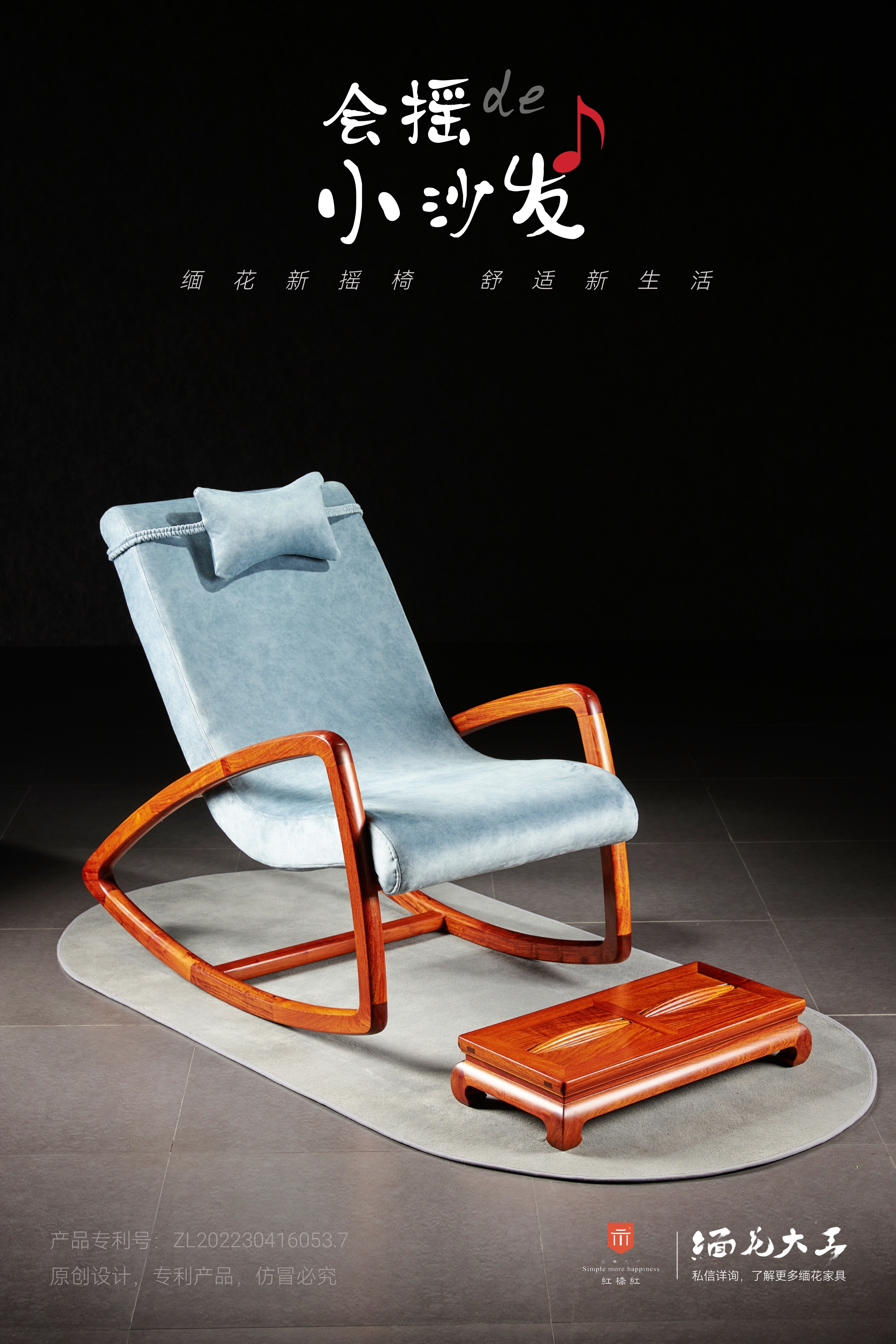 摇椅当代设计不古板,极简“三角形”“工字底”框架,加厚框,采用传统的榫卯结构,符合流线工学,框架加流线软包,亲肤型耐污耐刮科技布,坐感舒适,适合我们的日常生活。