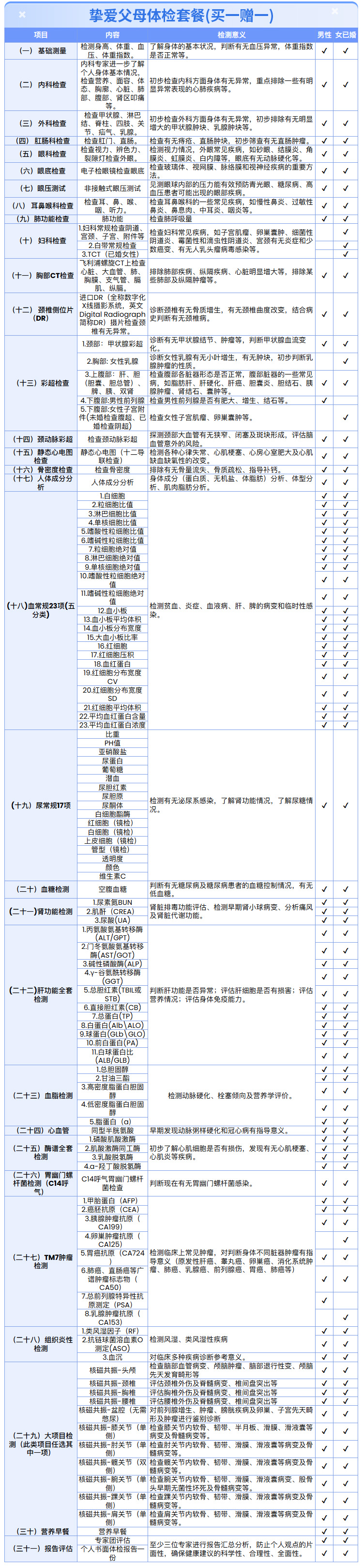 【父母双人|感恩爸妈细致深检】含胸部CT+核磁一项+颈动脉彩超+肿瘤七项 E5
