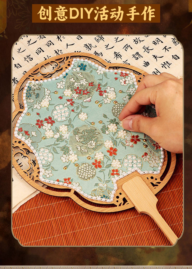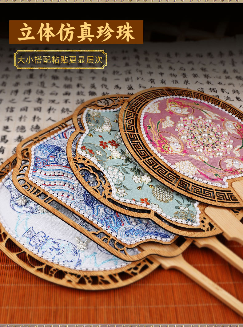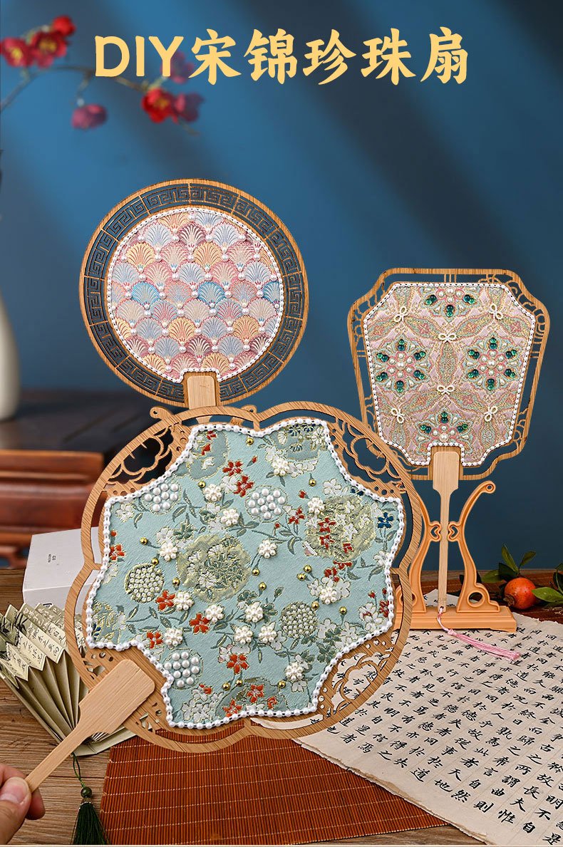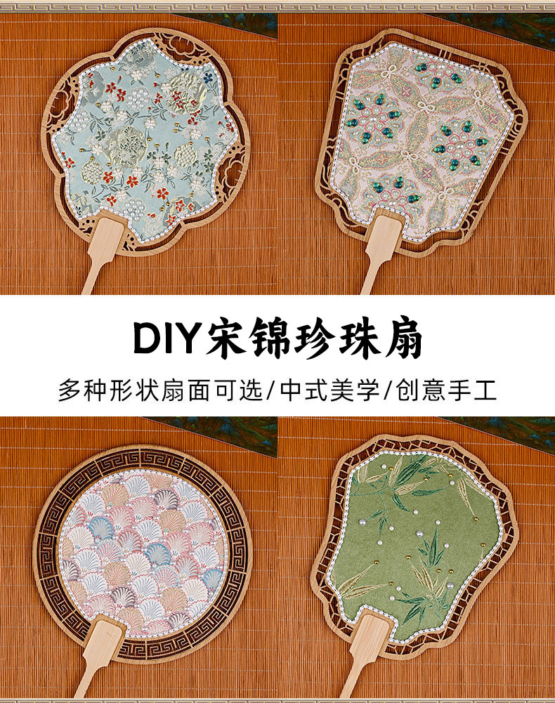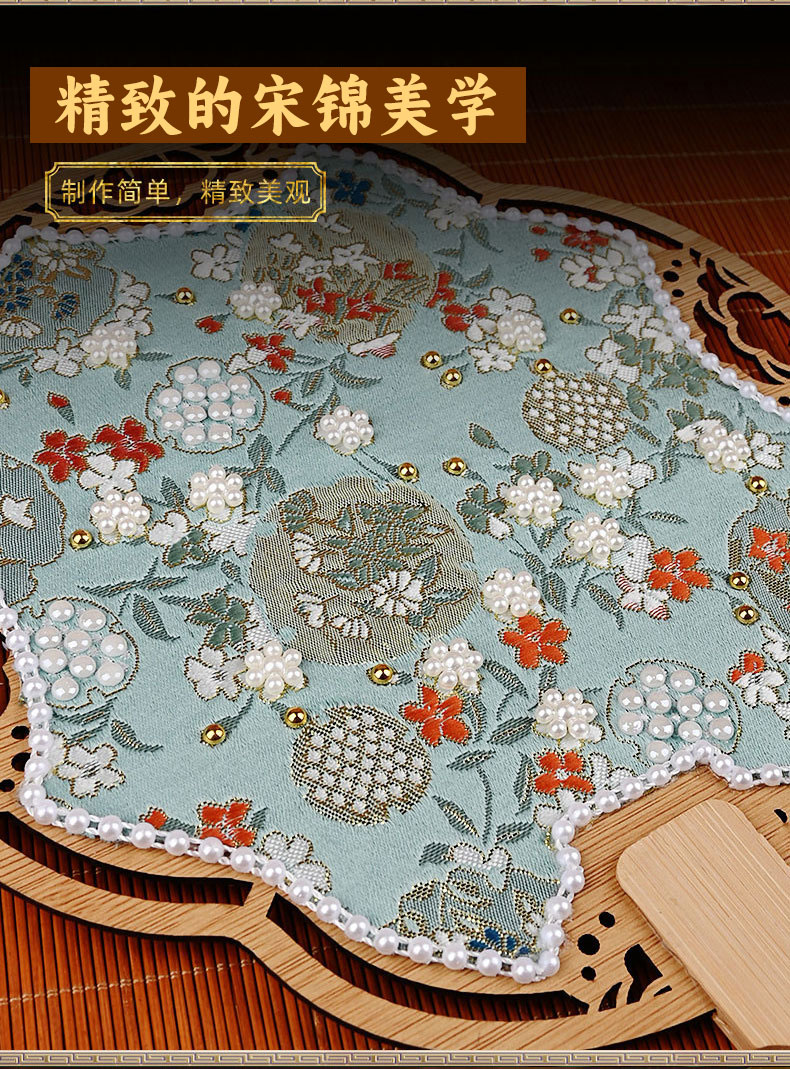 【织锦珍珠扇手工DIY材料包】非遗仿宋锦古风团扇织锦扇子团建活动沙龙礼物