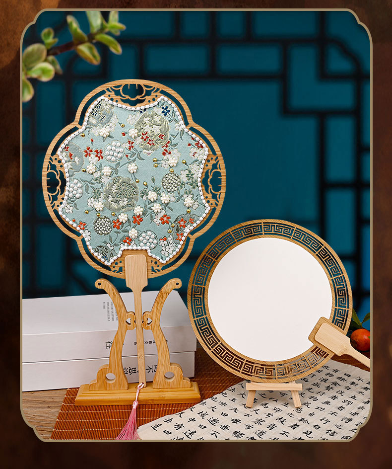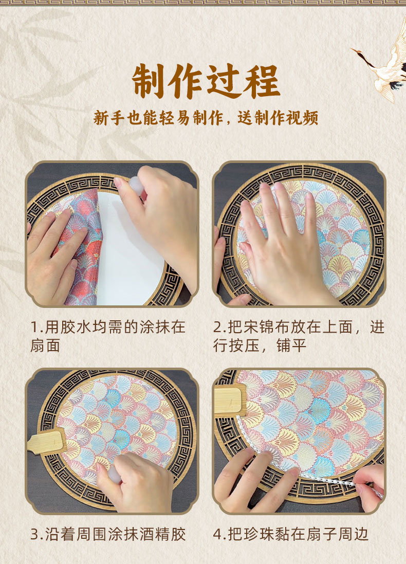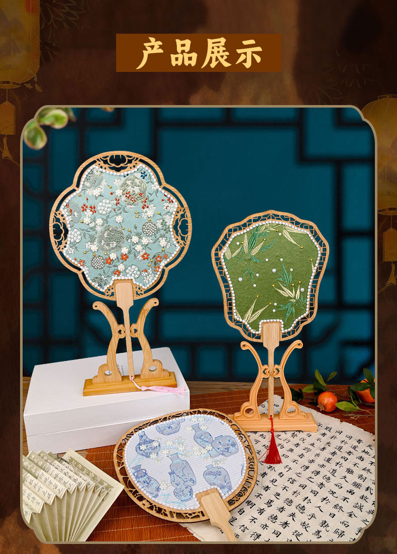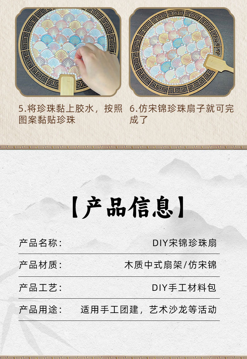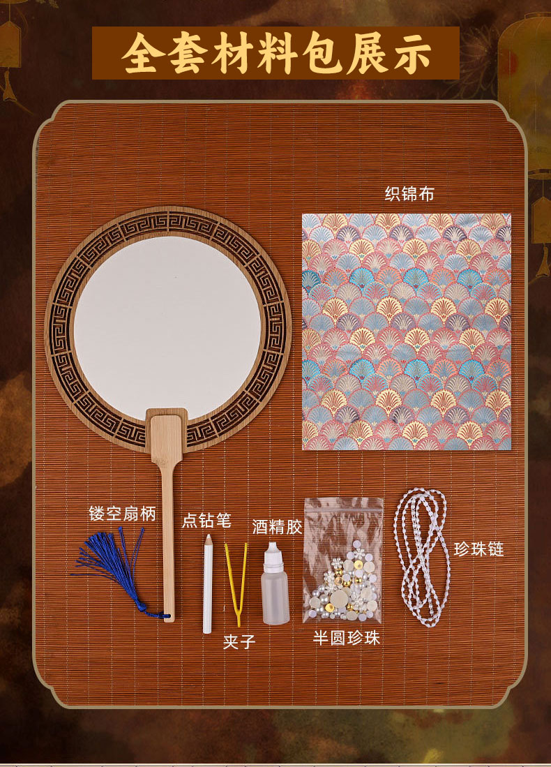 【织锦珍珠扇手工DIY材料包】非遗仿宋锦古风团扇织锦扇子团建活动沙龙礼物