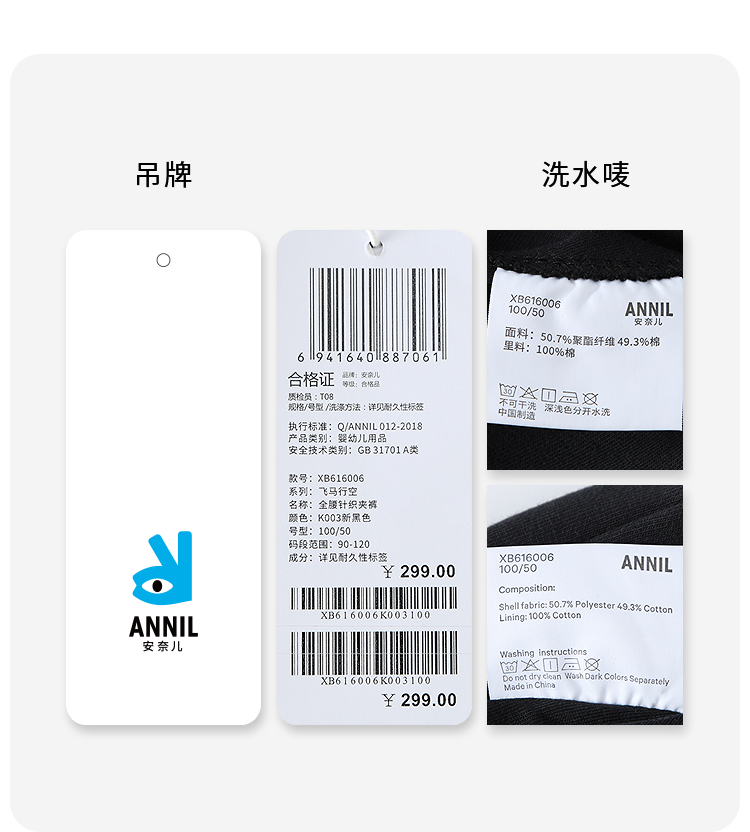 【实体店同款】男童全腰针织夹裤春季新款安奈儿童装XB616006