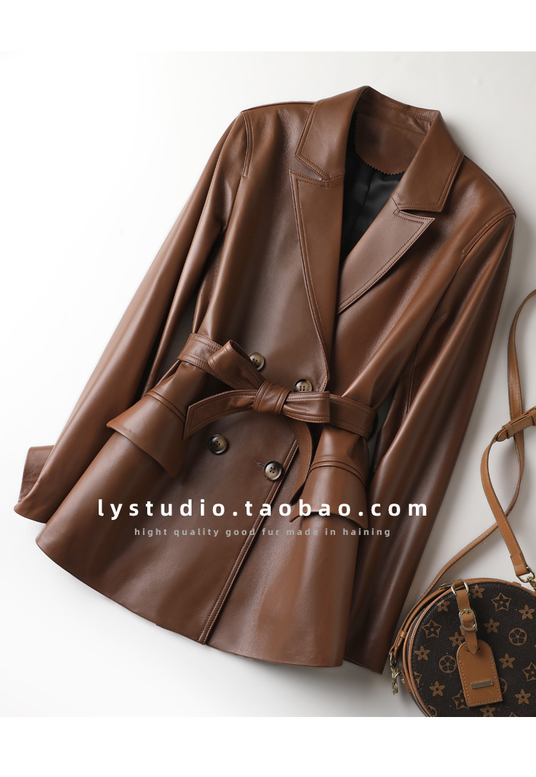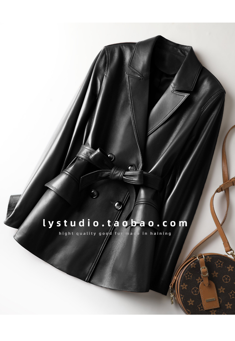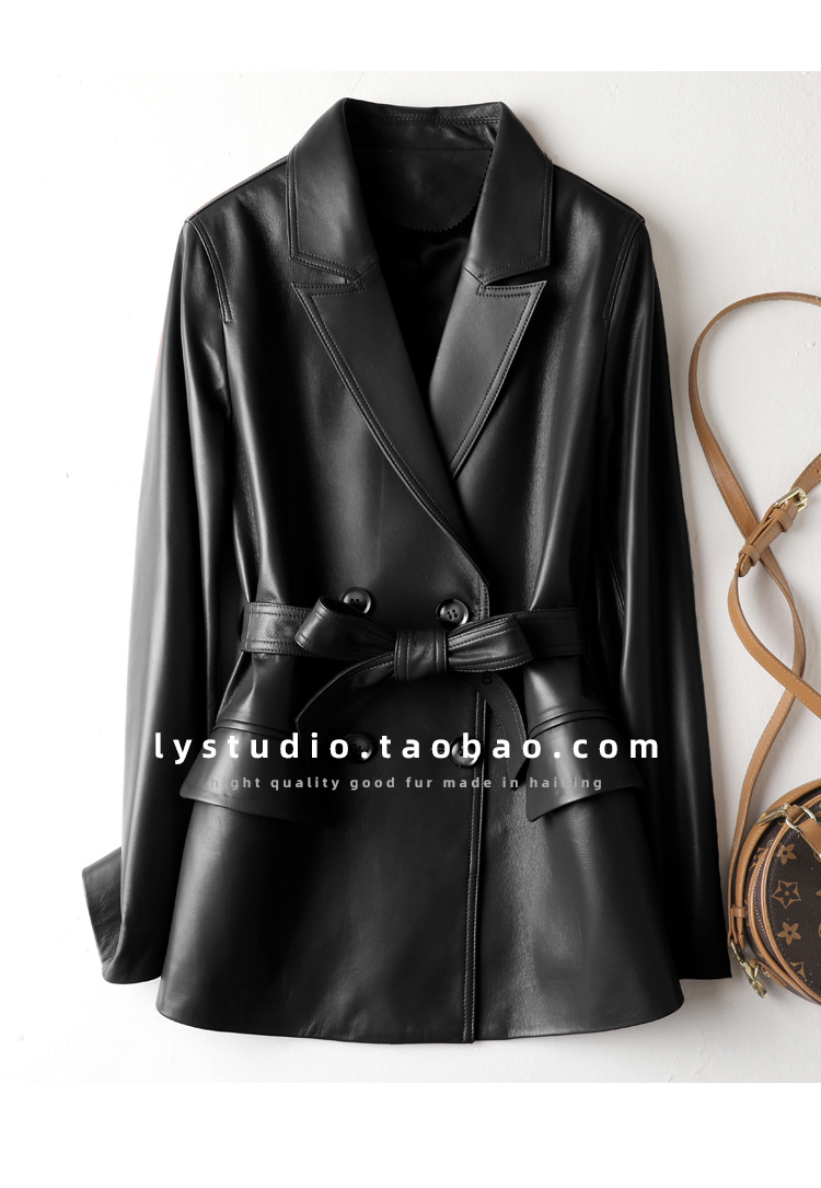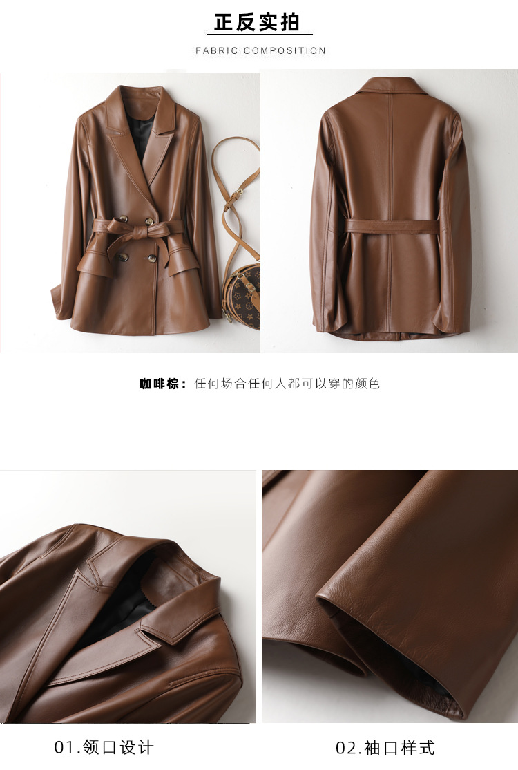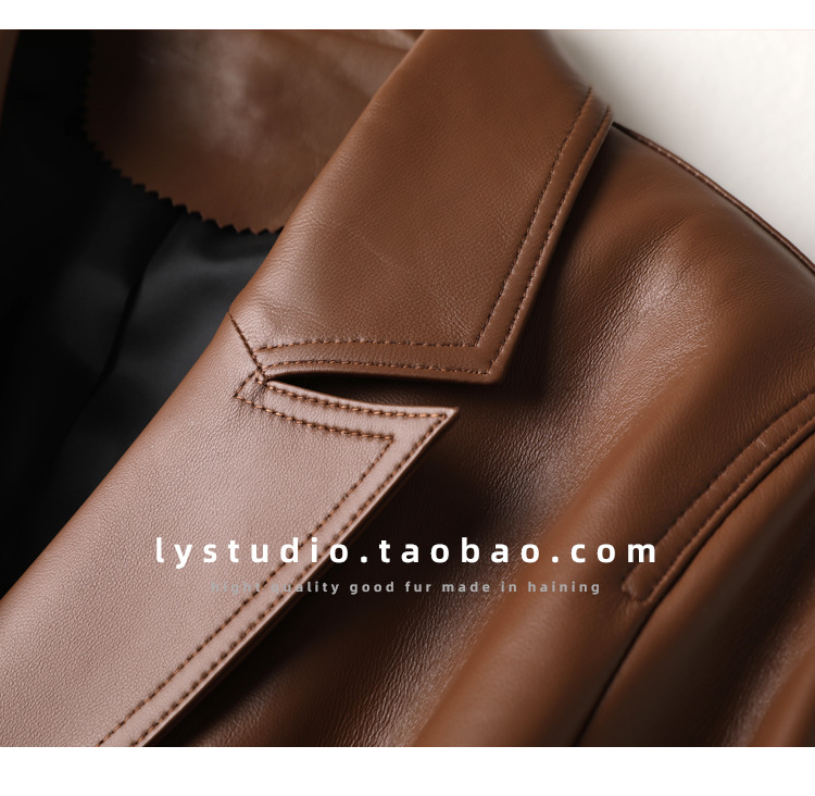 丁摩 真皮皮衣女绵羊皮西装外套7831