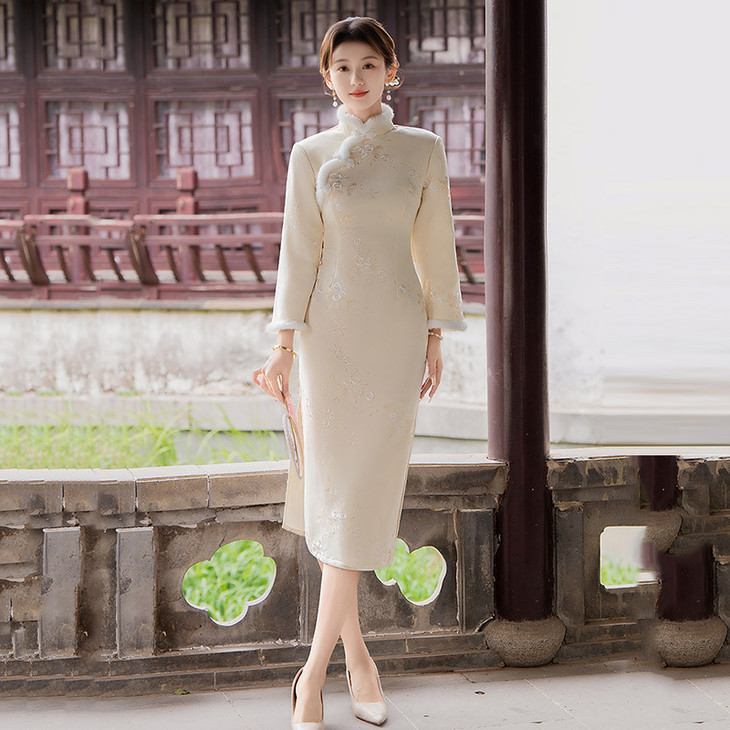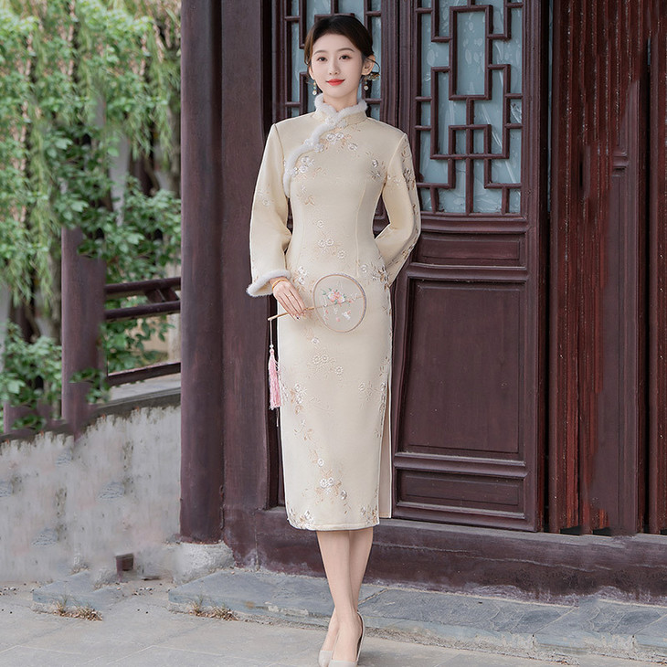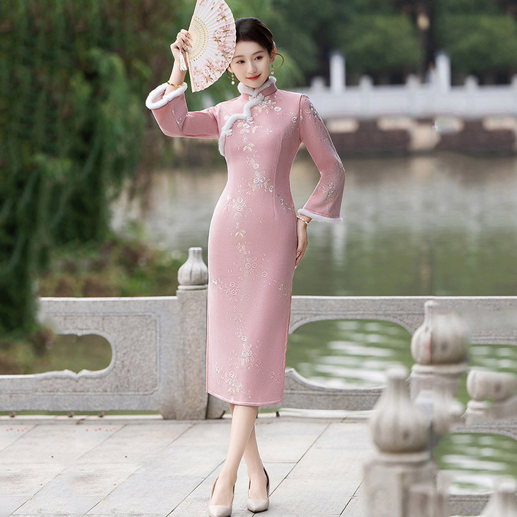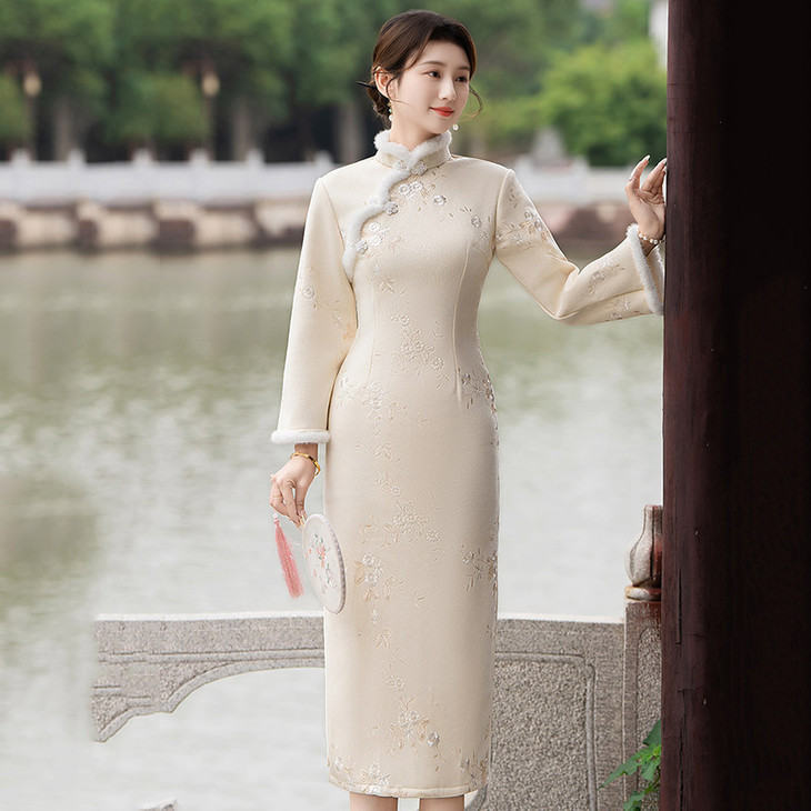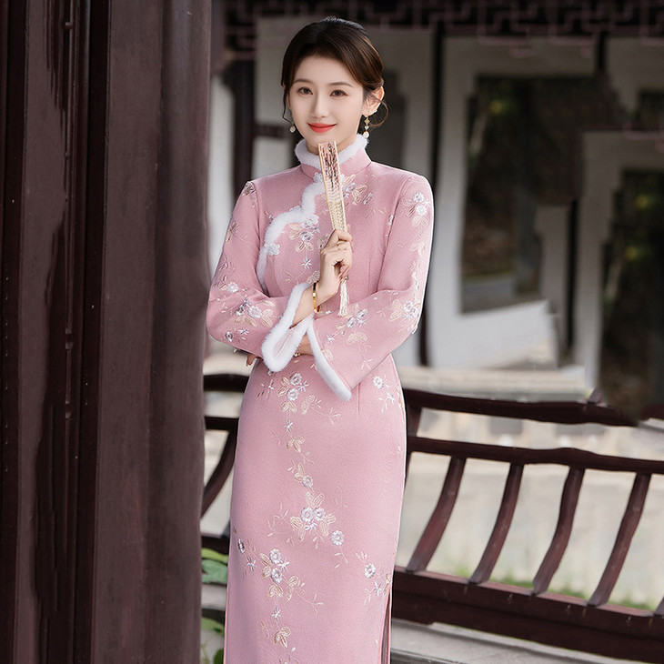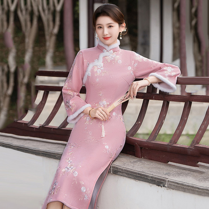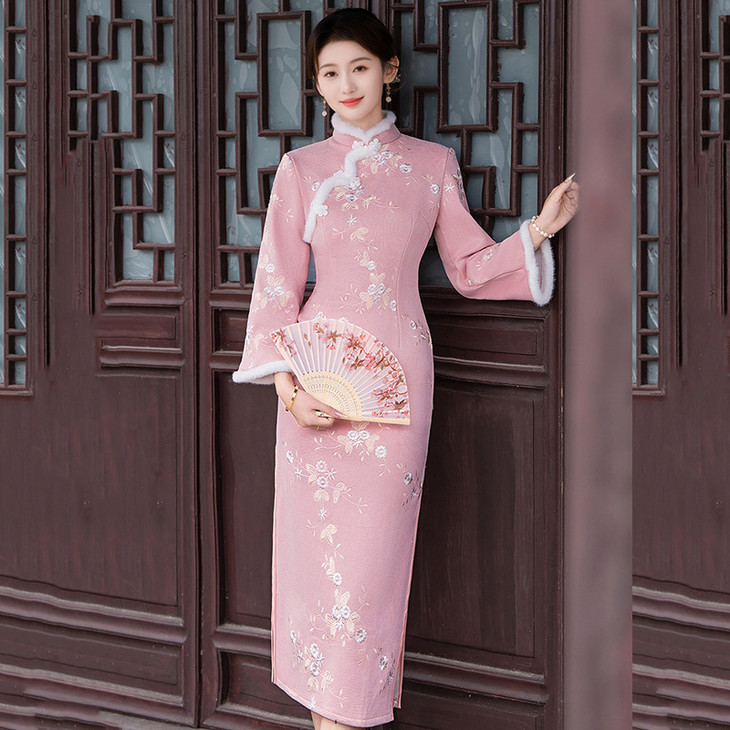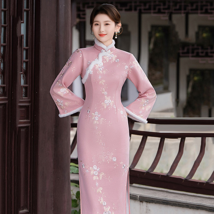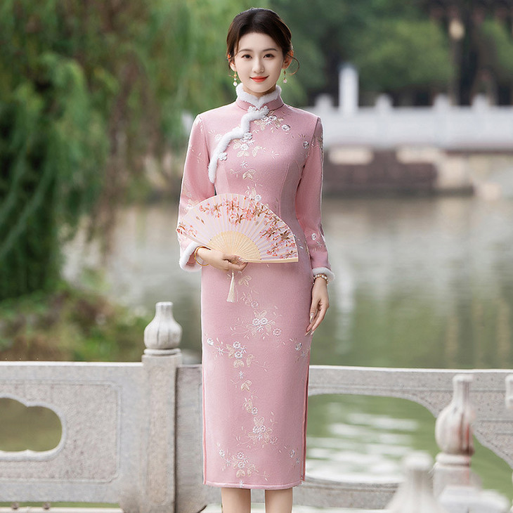 绣花加绒冬装,中式改良旗袍日常可穿ZQ60670
