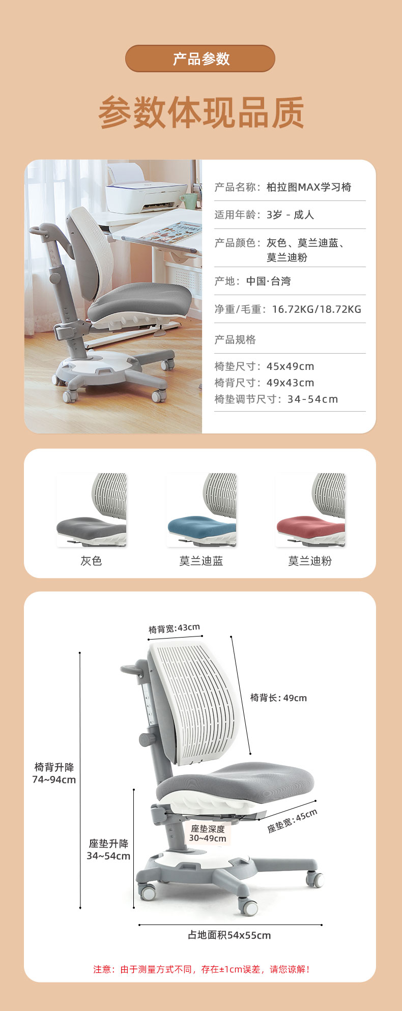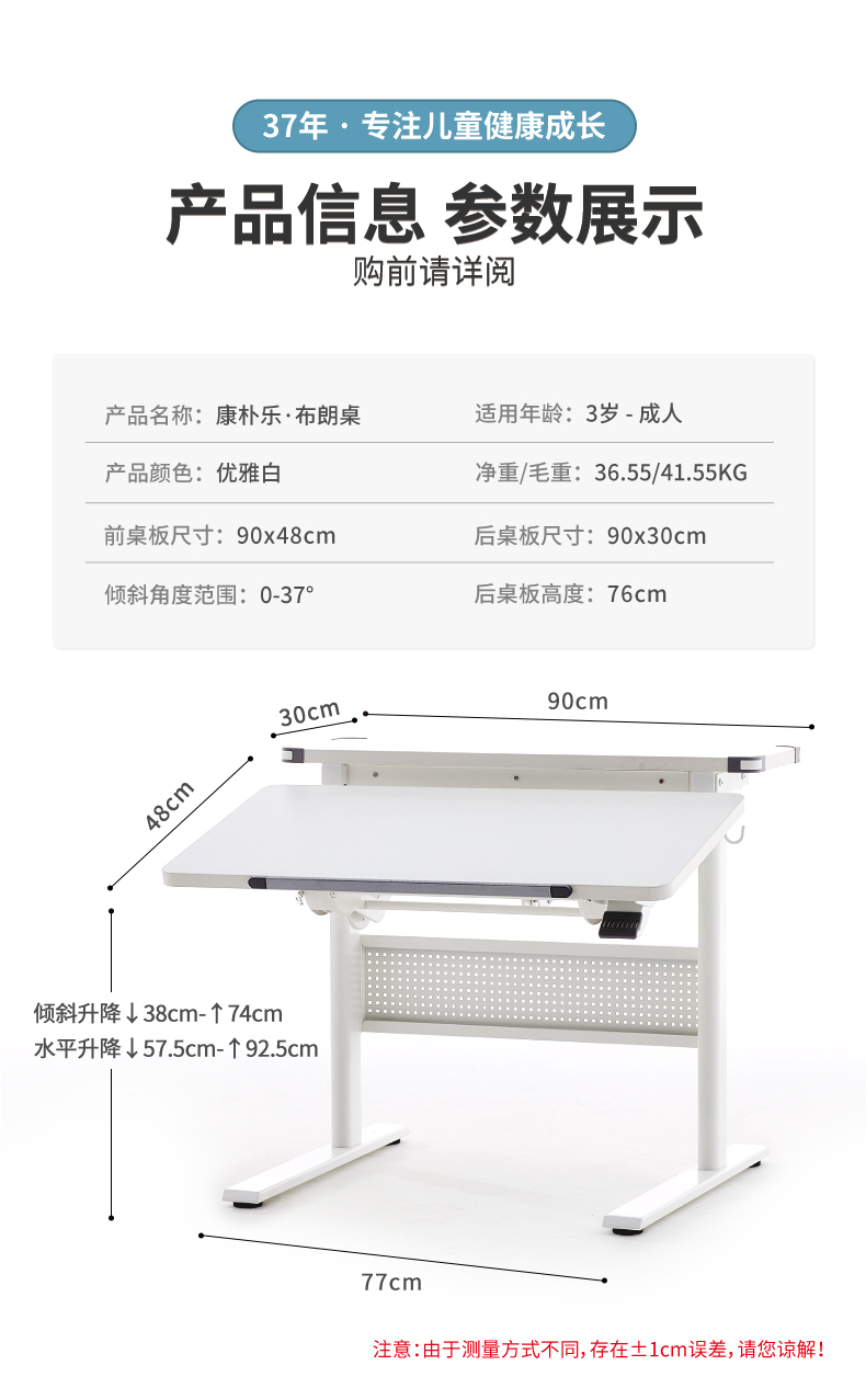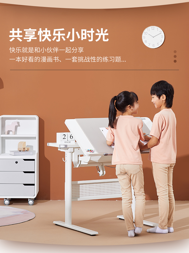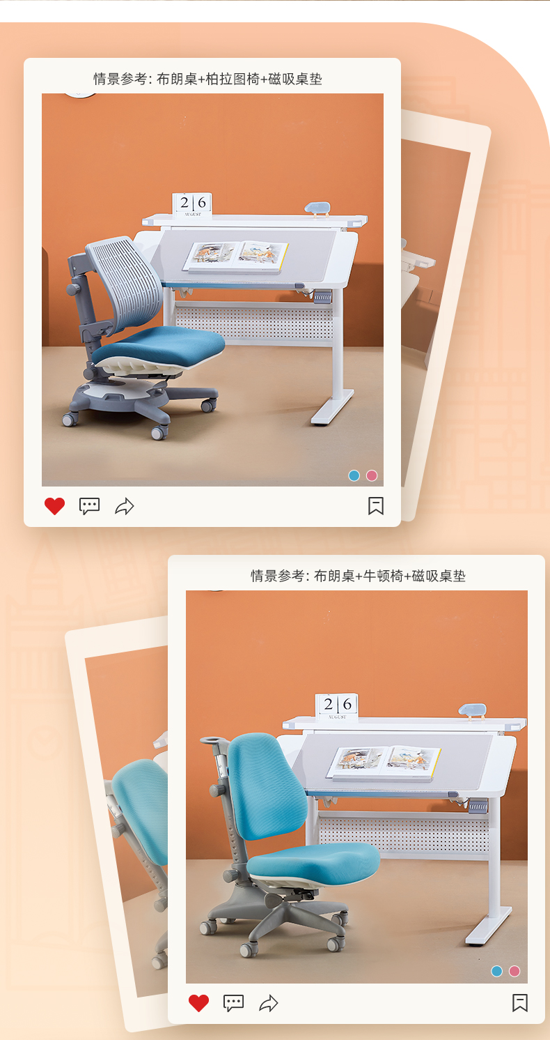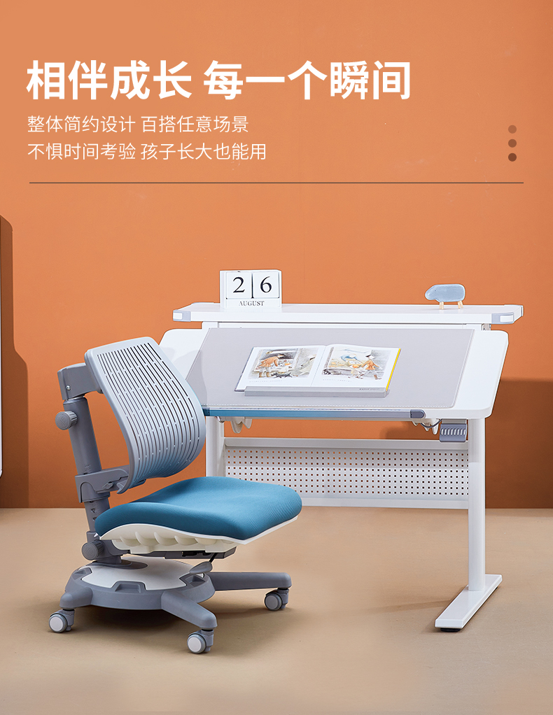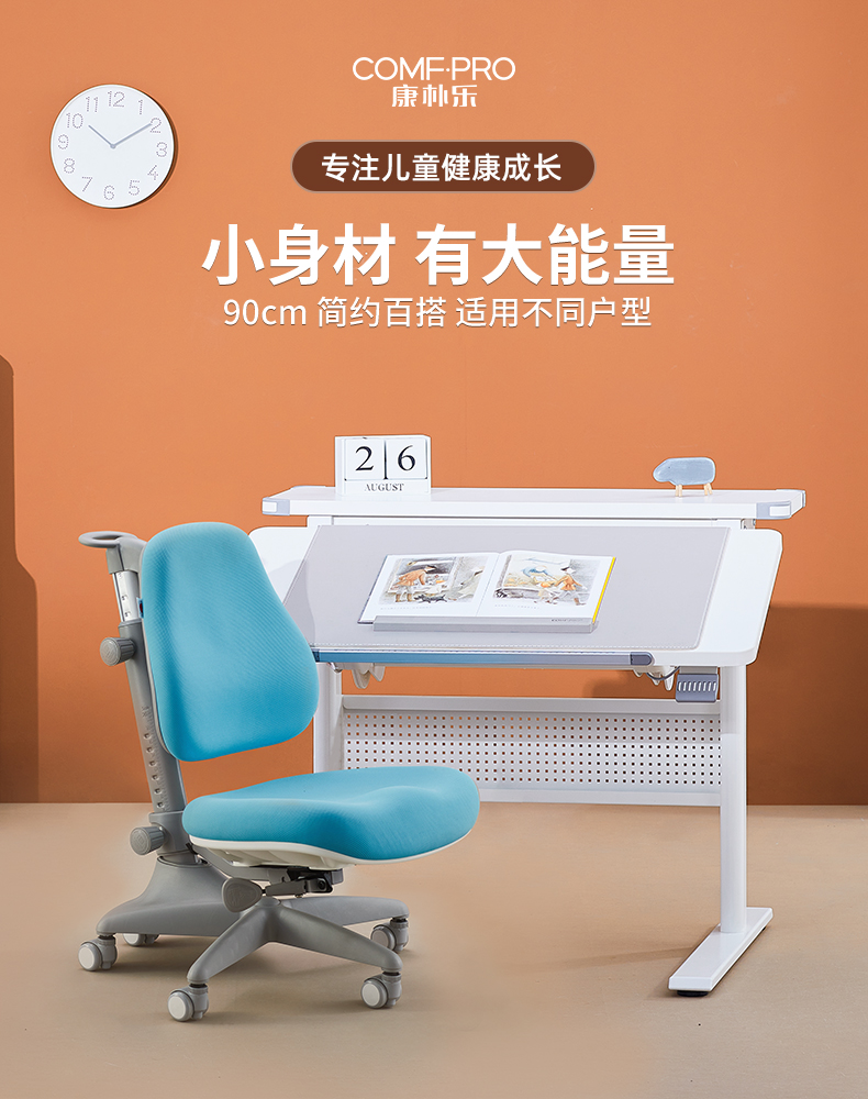 3岁+ 康朴乐气压棒升降学习桌| 布朗桌+柏拉图Pro椅 套装 尺寸:90cm*80cm,送椅套+桌垫