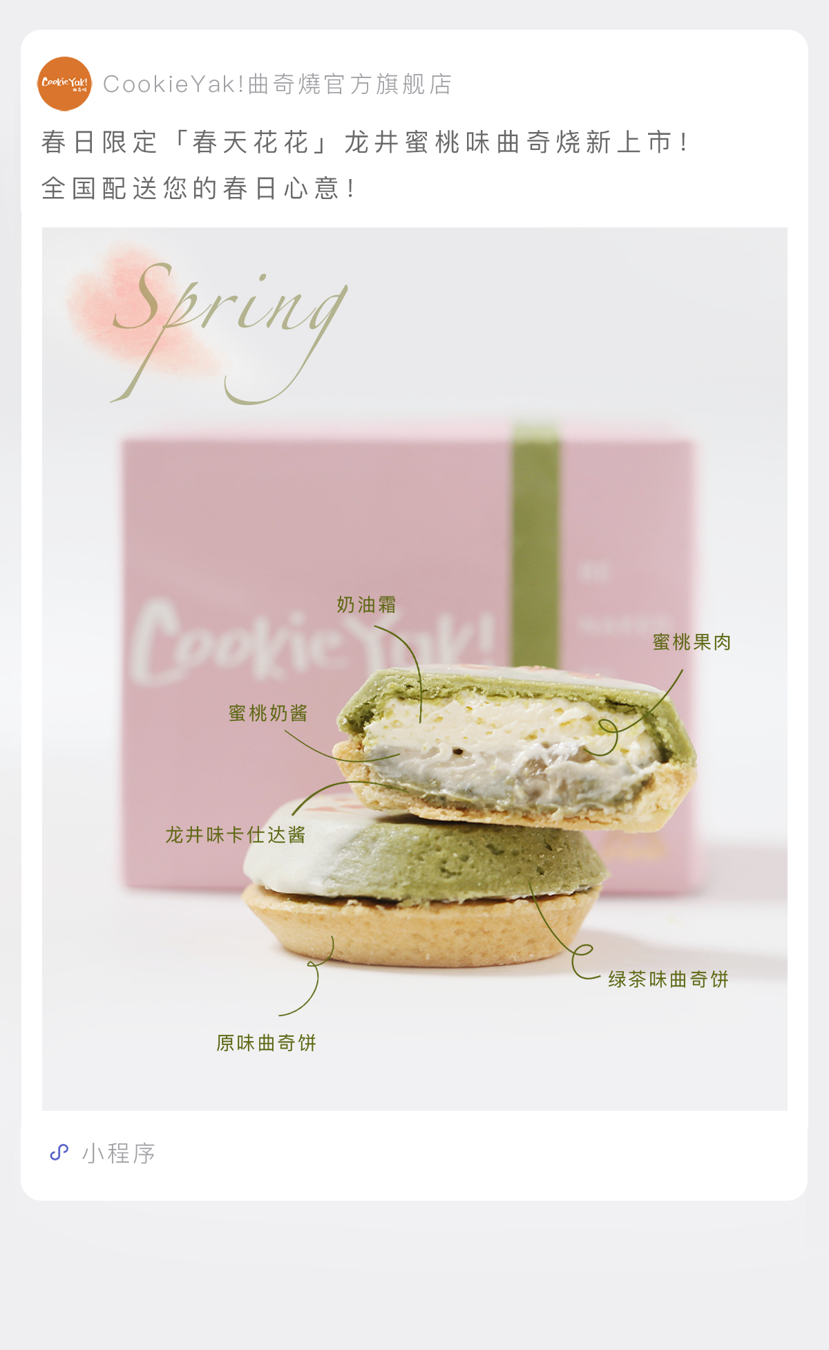 春日限定「春天花花」龙井蜜桃味曲奇烧|冷冻经典版曲奇烧 (4枚/盒)