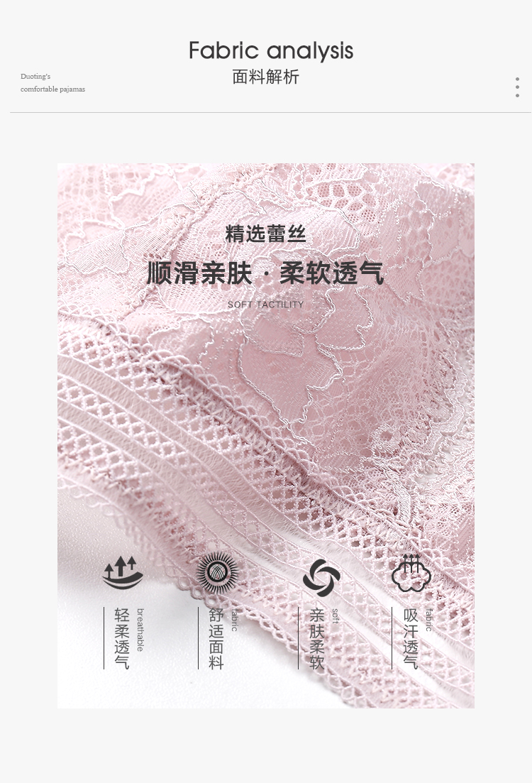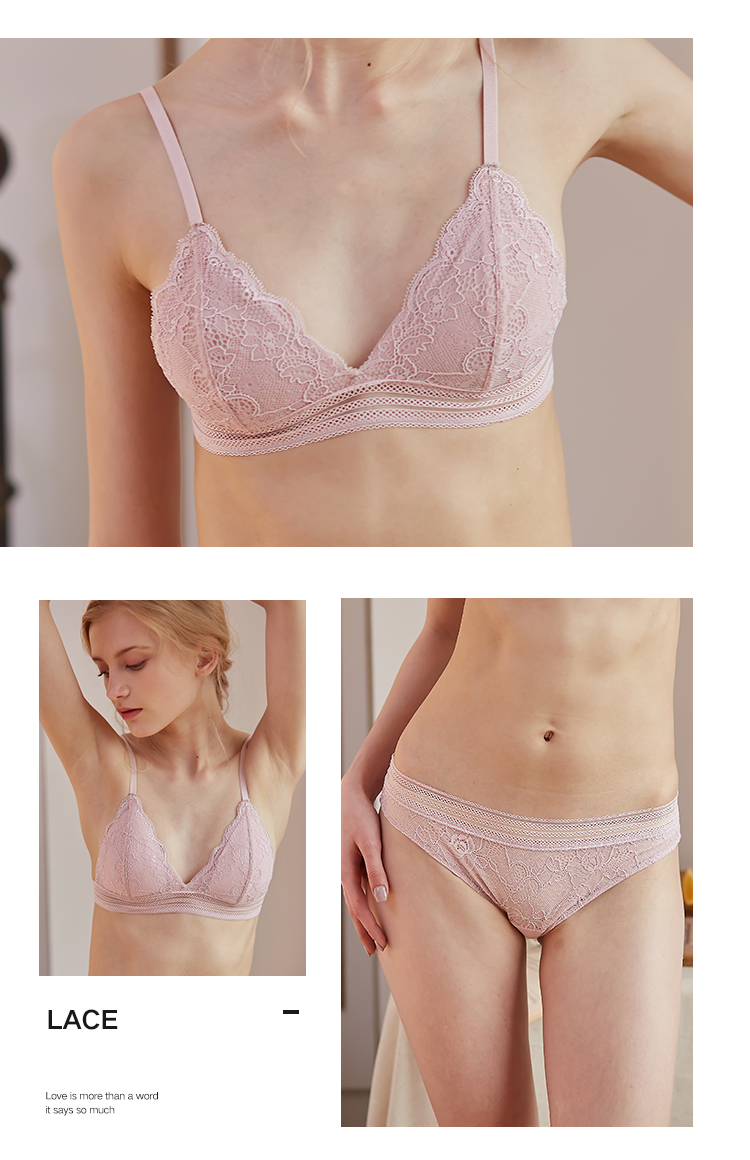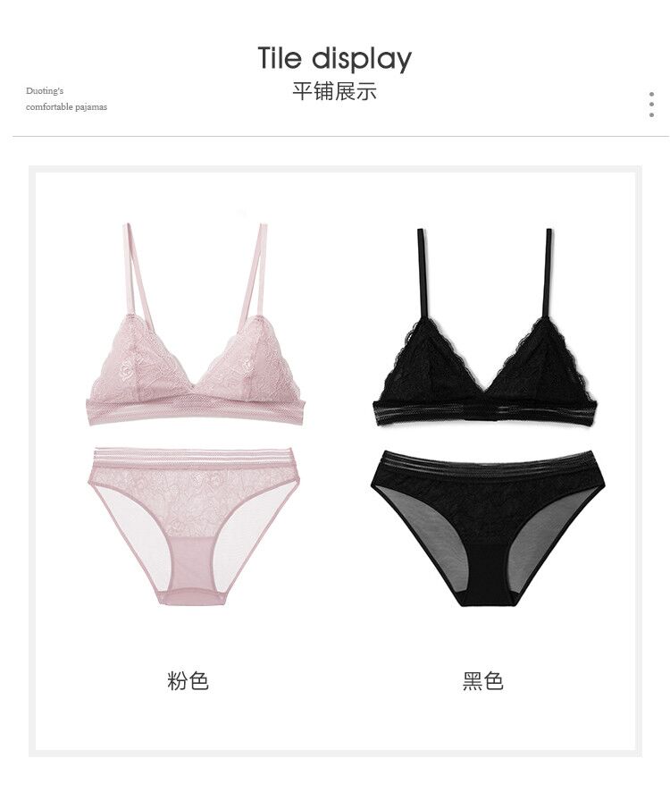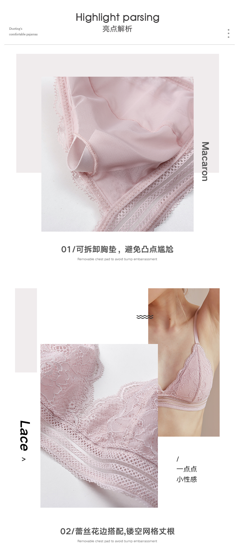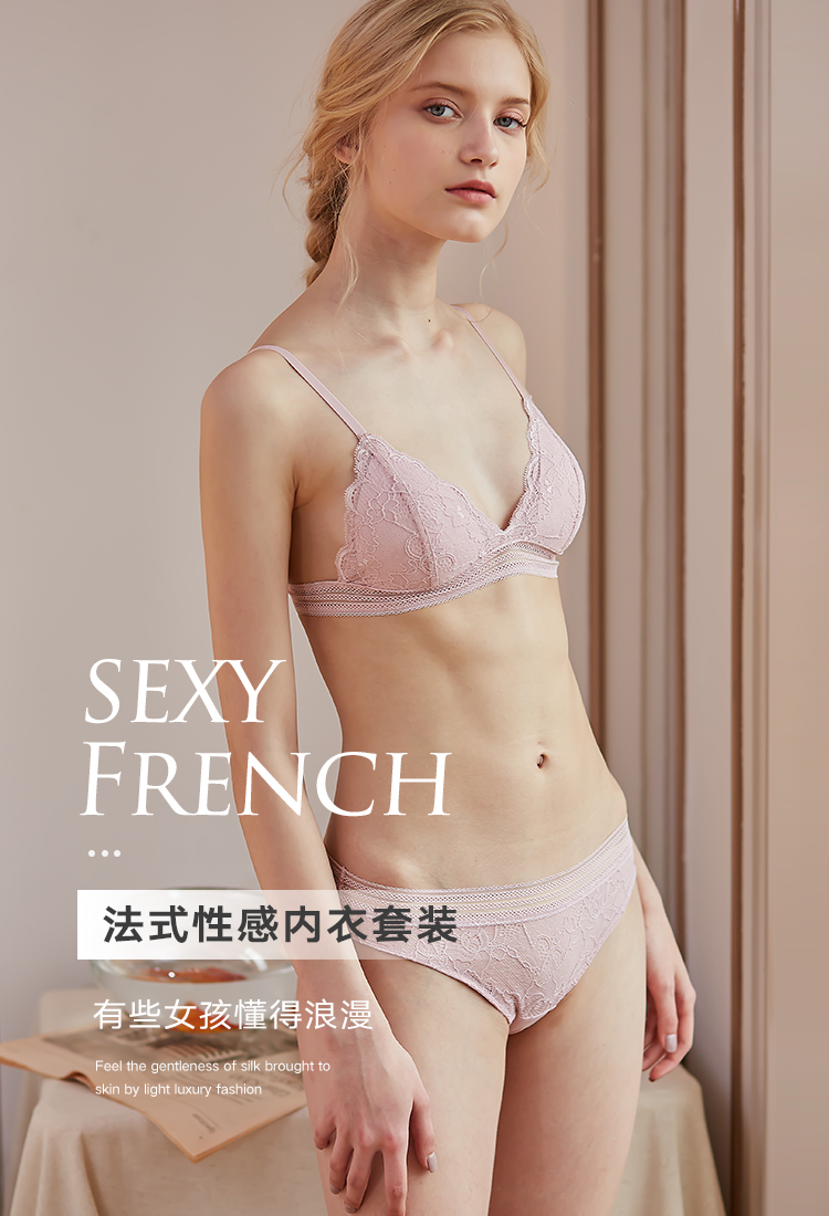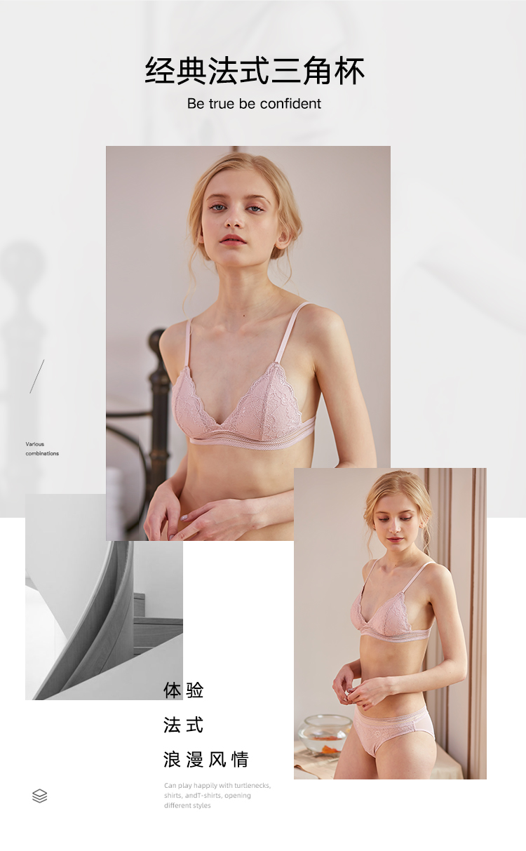 弗利少女法式内衣女士无钢圈文胸垫薄款性感蕾丝少女文胸套装新