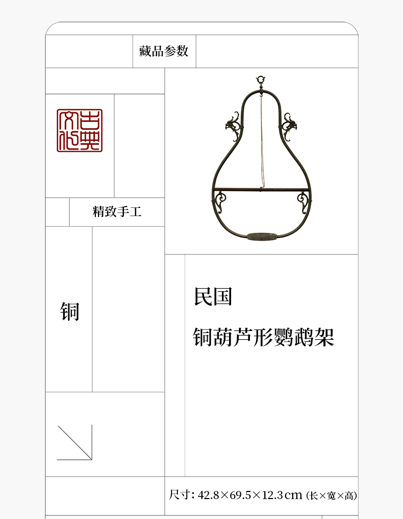 民国 铜葫芦形鹦鹉架