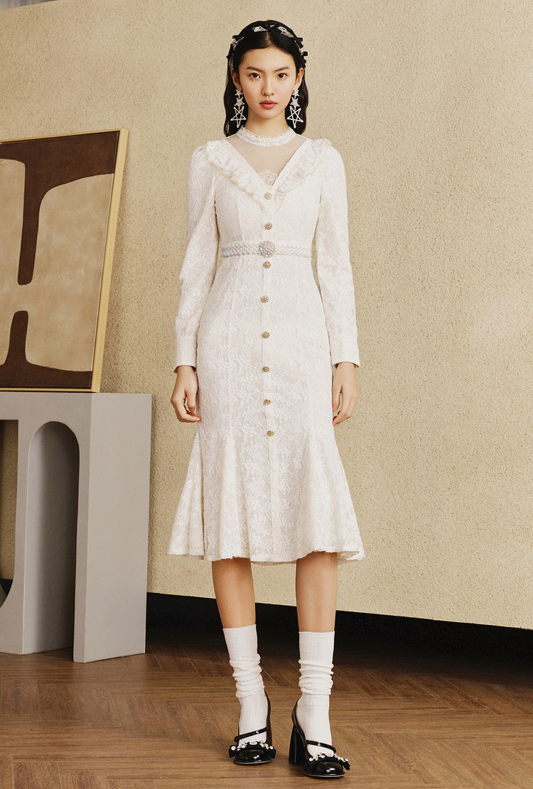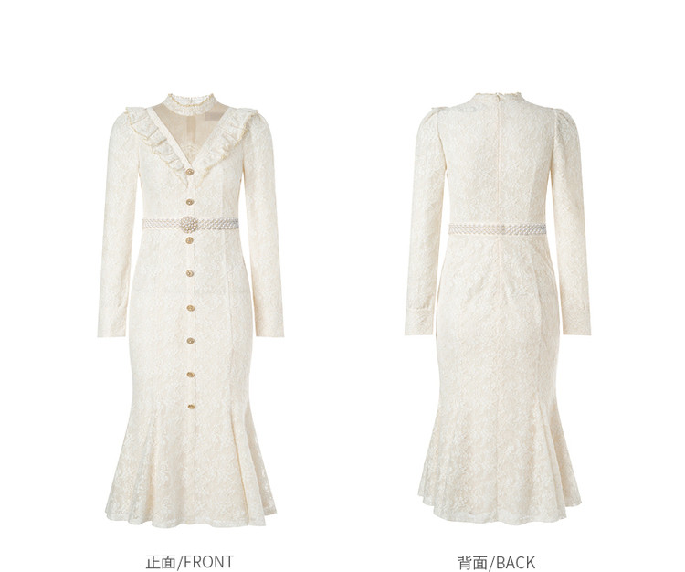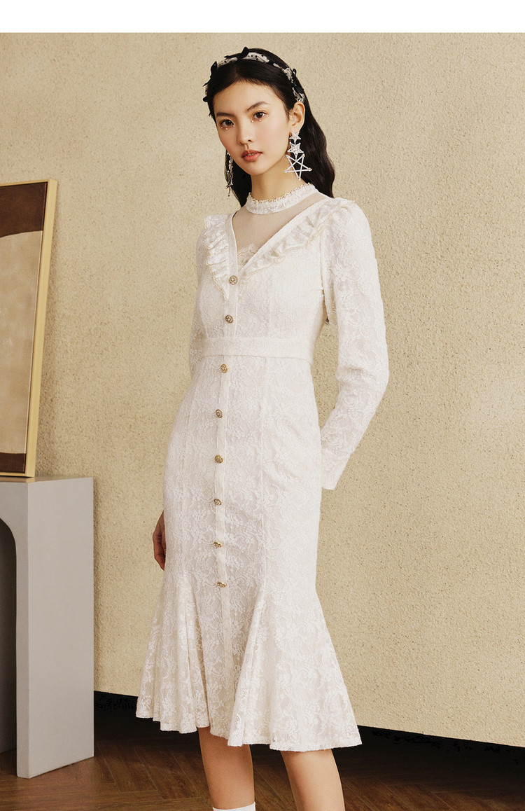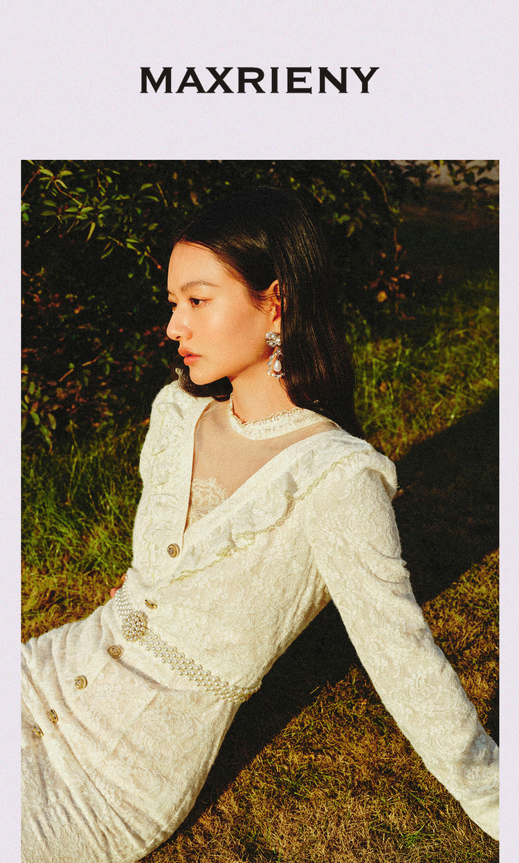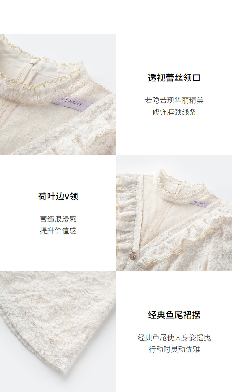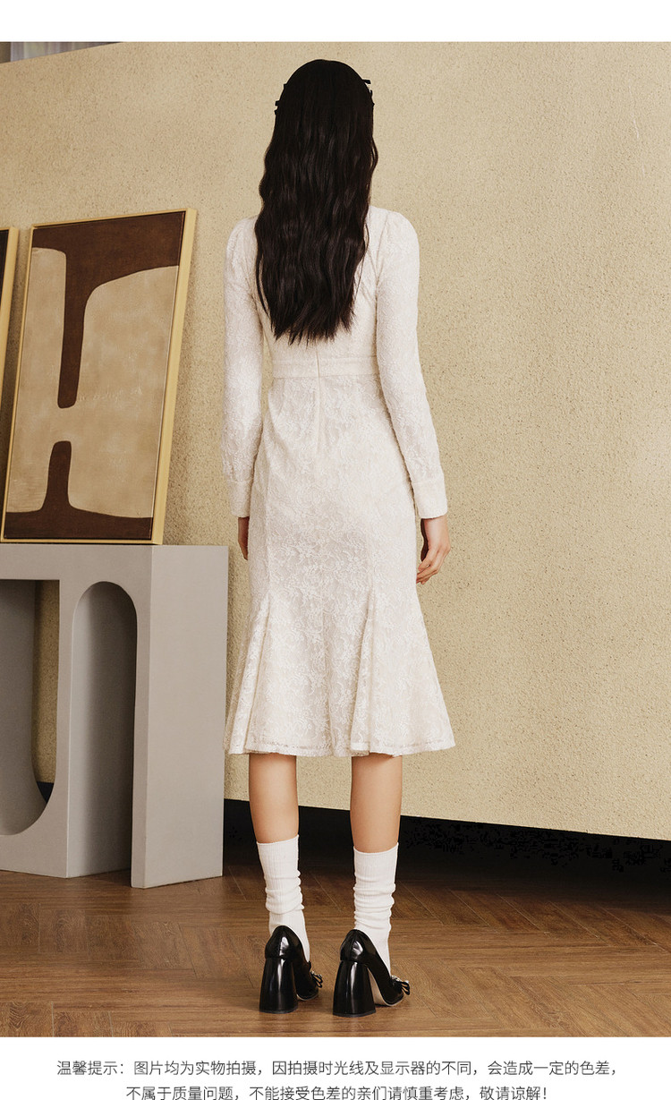 【波动心弦】MAXRIENY法式复古氛围感鱼尾裙修身V领蕾丝连衣裙