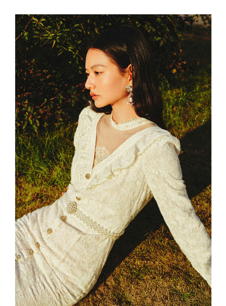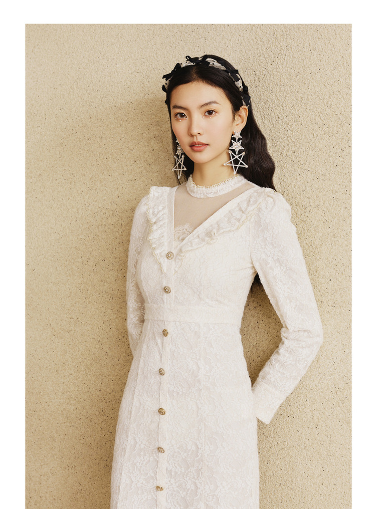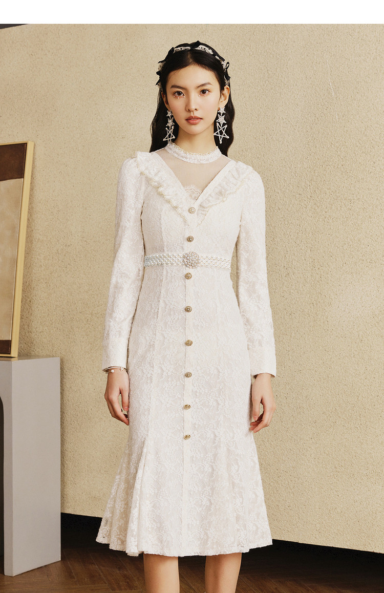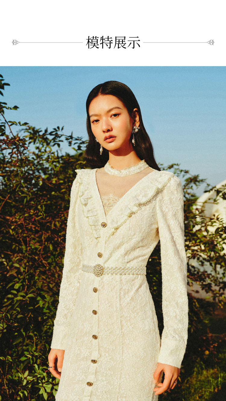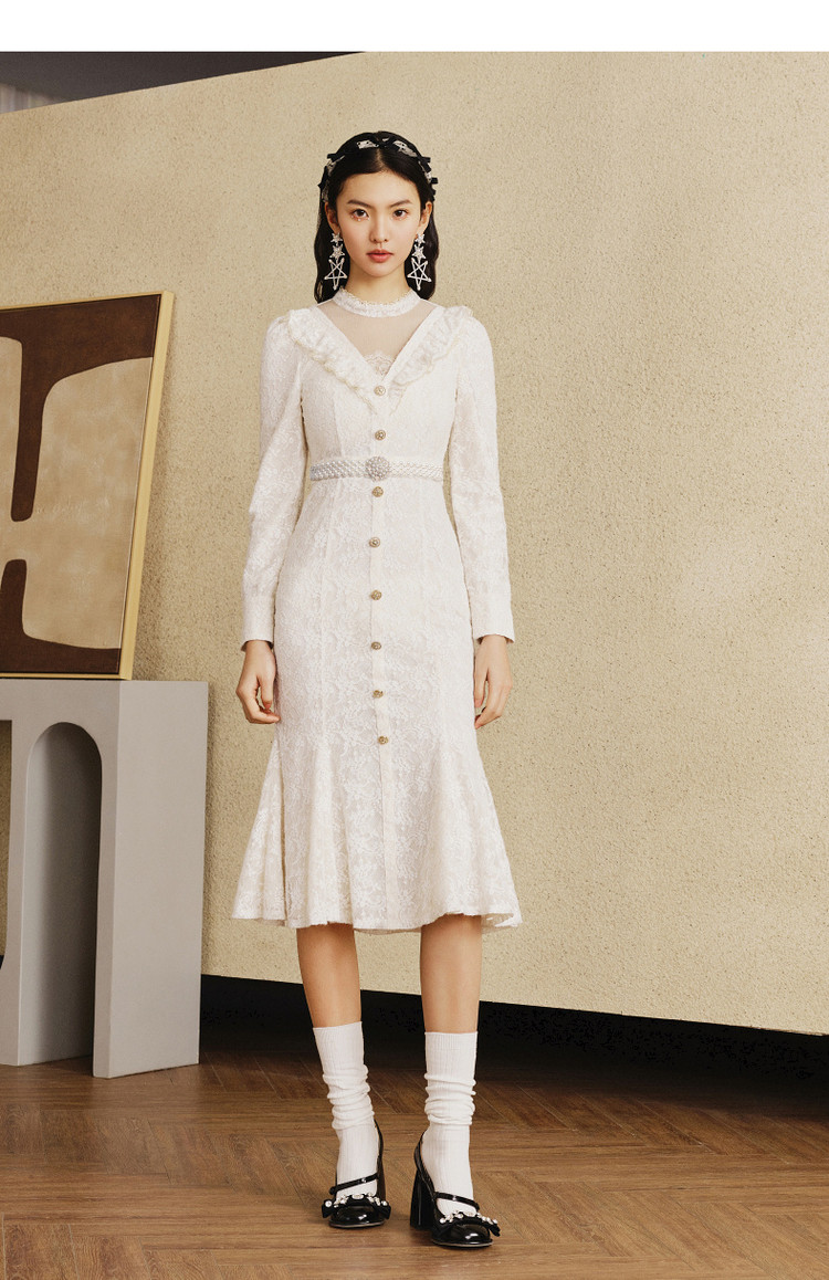 【波动心弦】MAXRIENY法式复古氛围感鱼尾裙修身V领蕾丝连衣裙