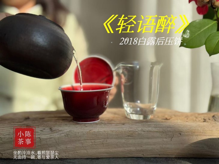 溢饼而出的枣香是它的标识,馥郁甜美又鲜妍明媚的独属于秋白茶的花香,是这块2018白露后压饼《轻语醉》的前调。