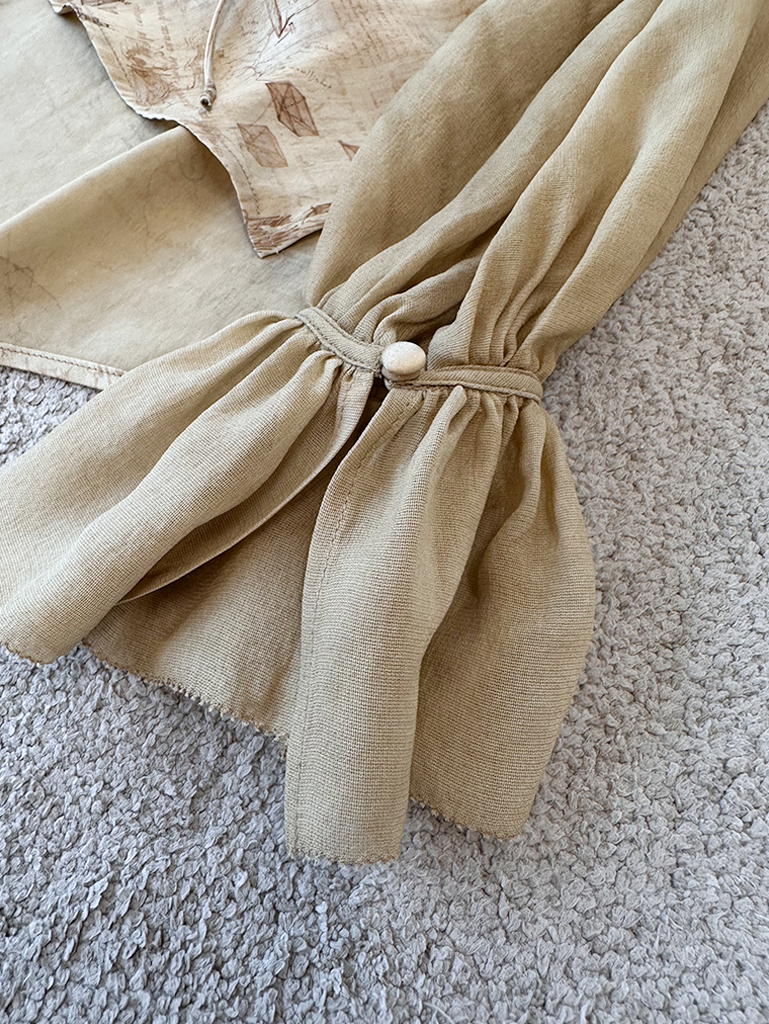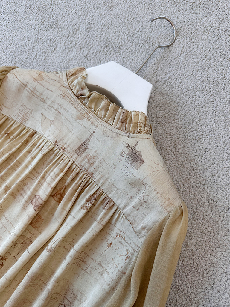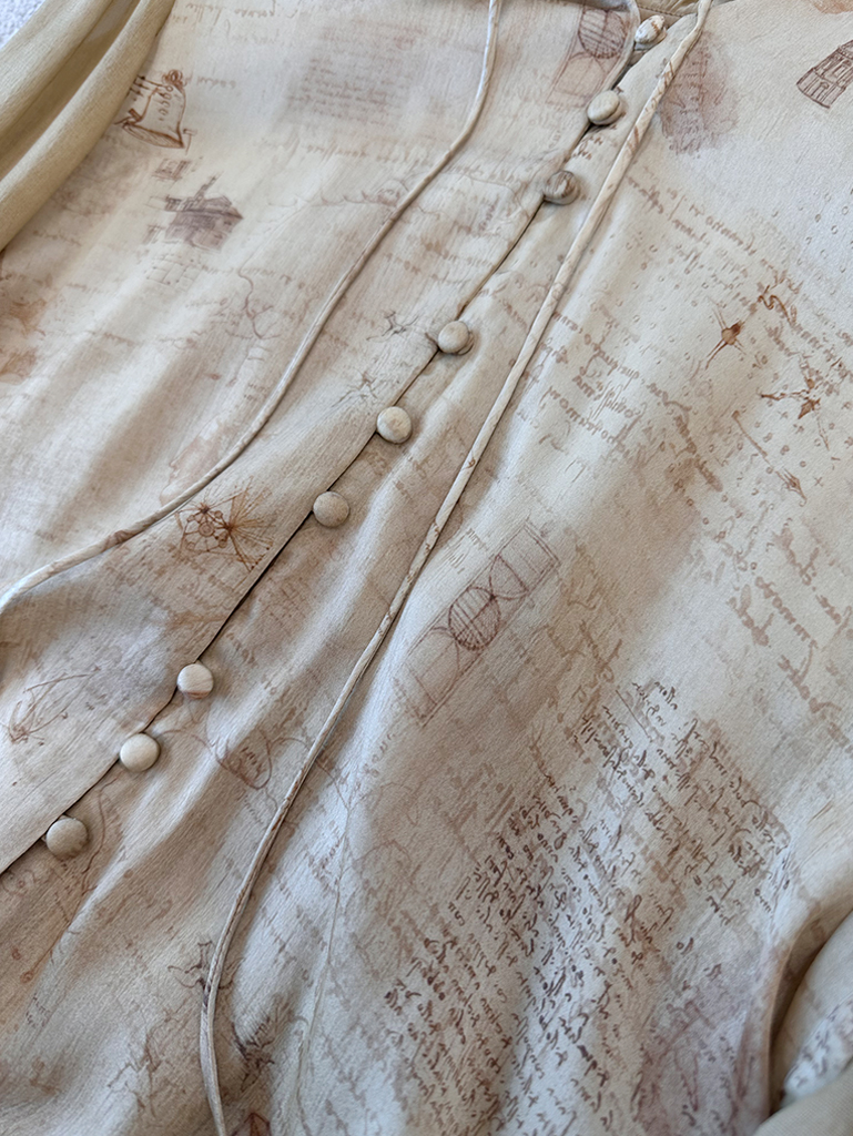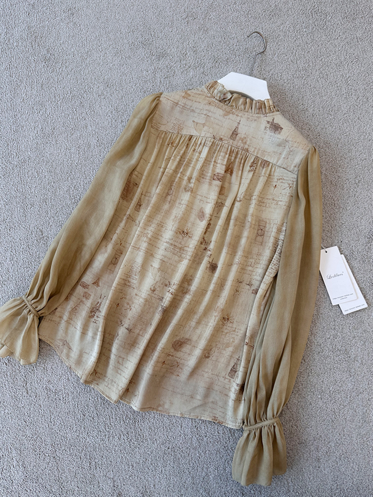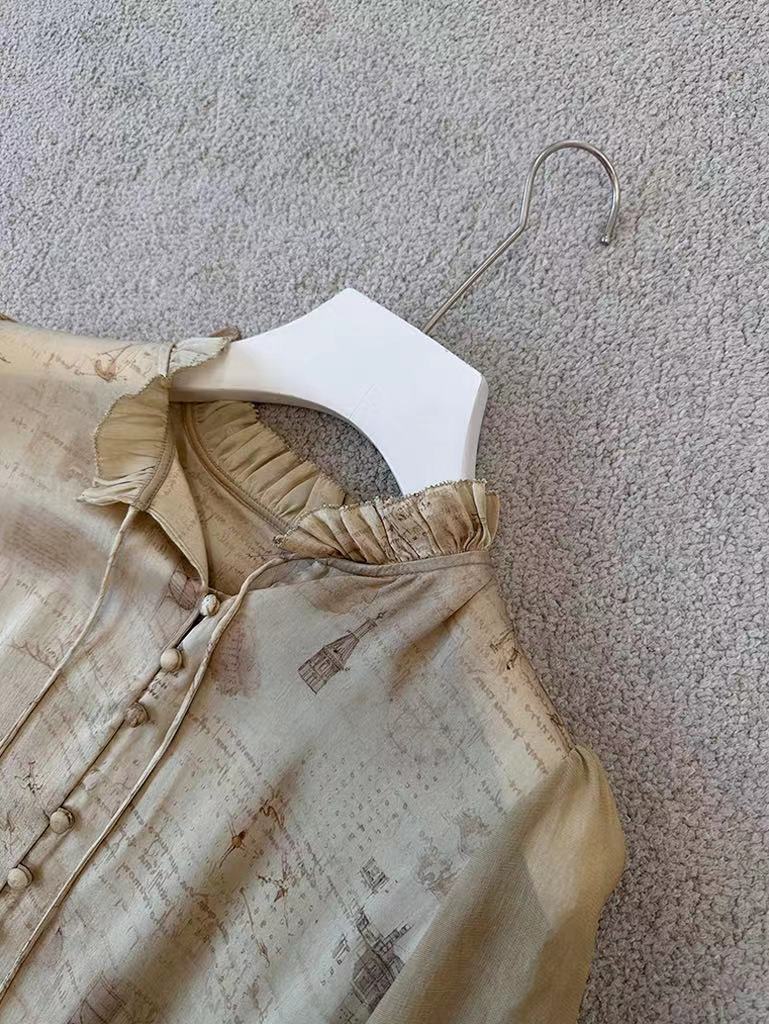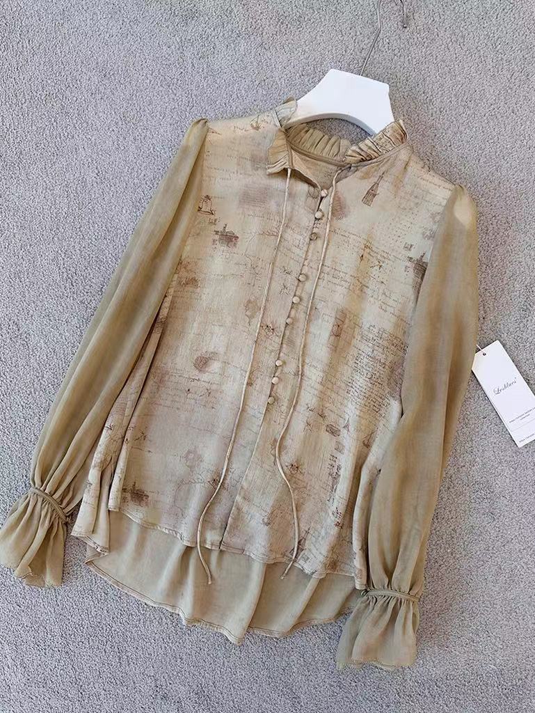 【à perles】GAO端小众数码印花真丝弹力缎花边袖衬衫【清仓,不退不换】