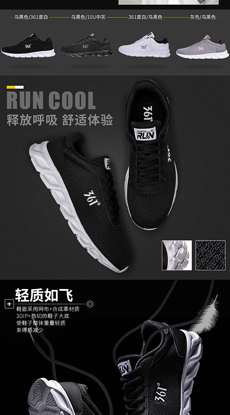 361运动鞋男鞋夏季透气跑鞋子361度官方秋季网面休闲鞋男士跑步鞋