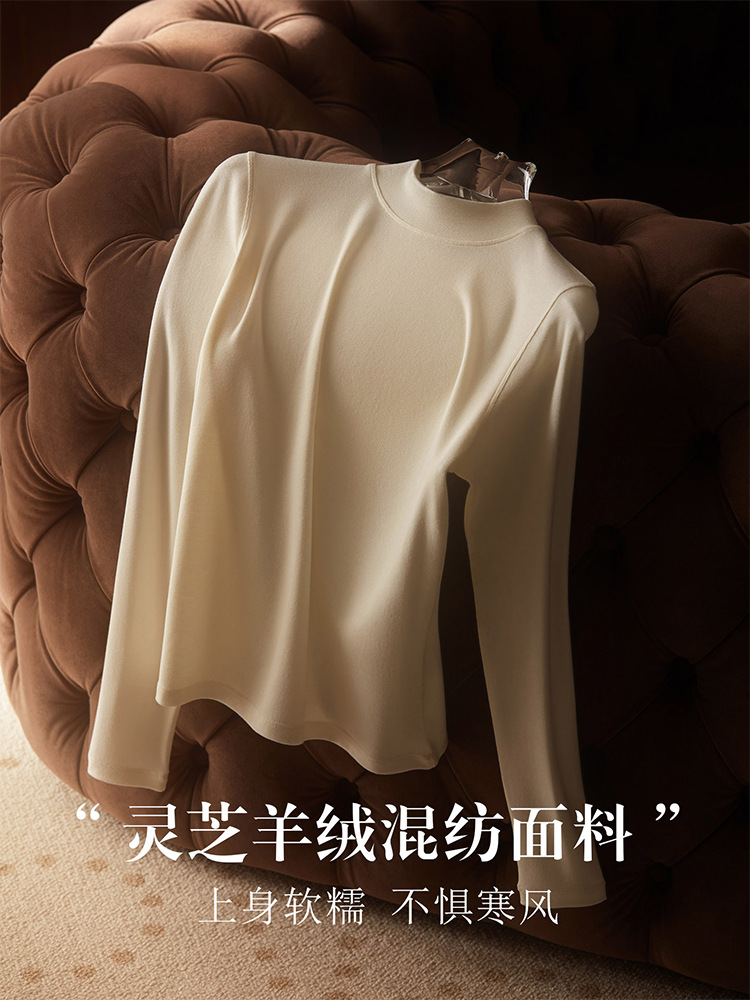 「自」全新升级【铂金会员119/天猫159/差价40】(03124)洛诗琳灵芝山羊绒加绒打底衫2025秋冬半高领防风保暖上衣女