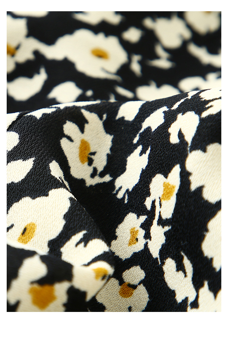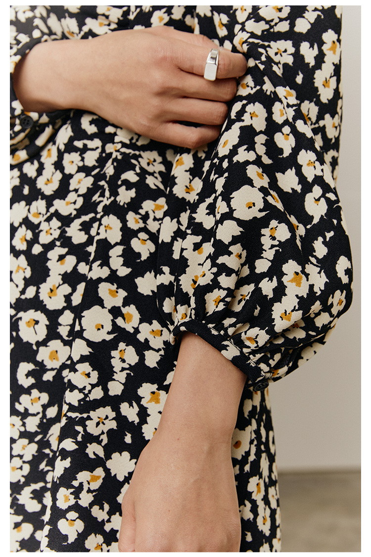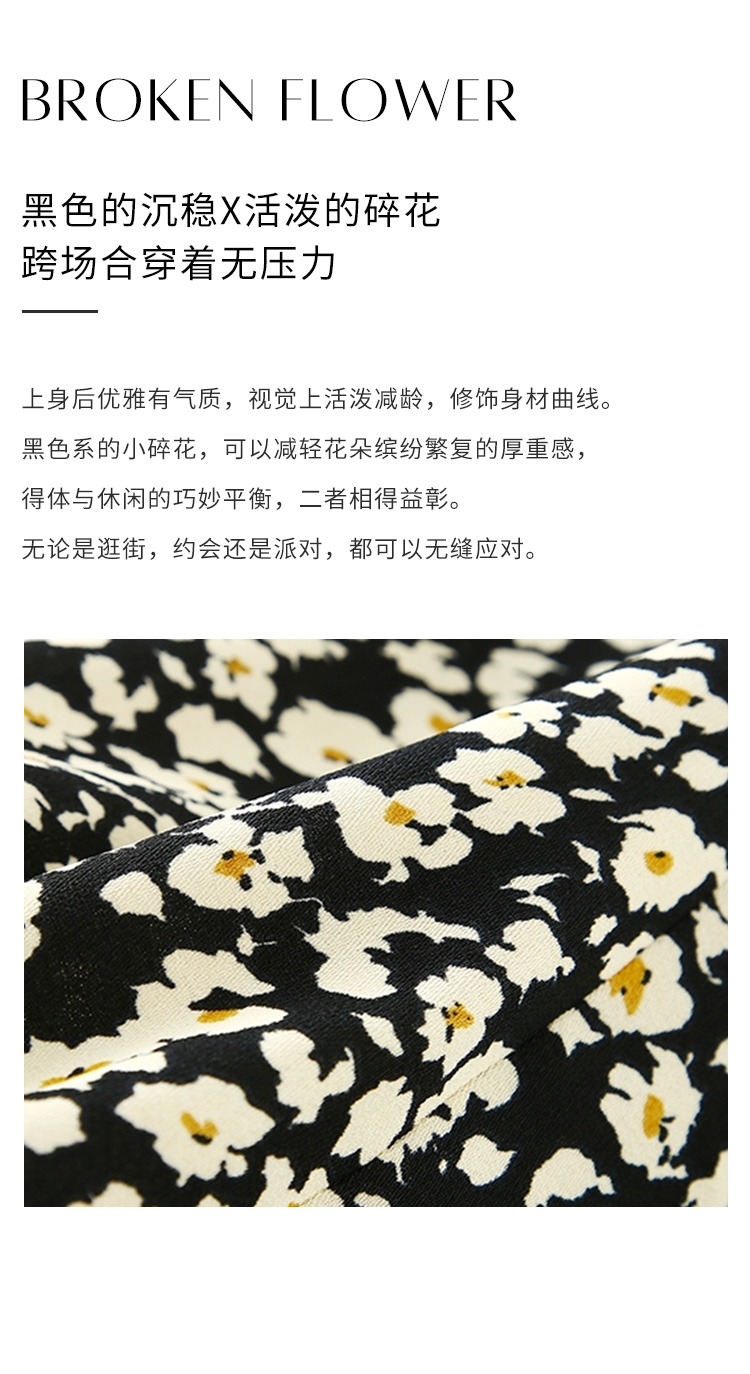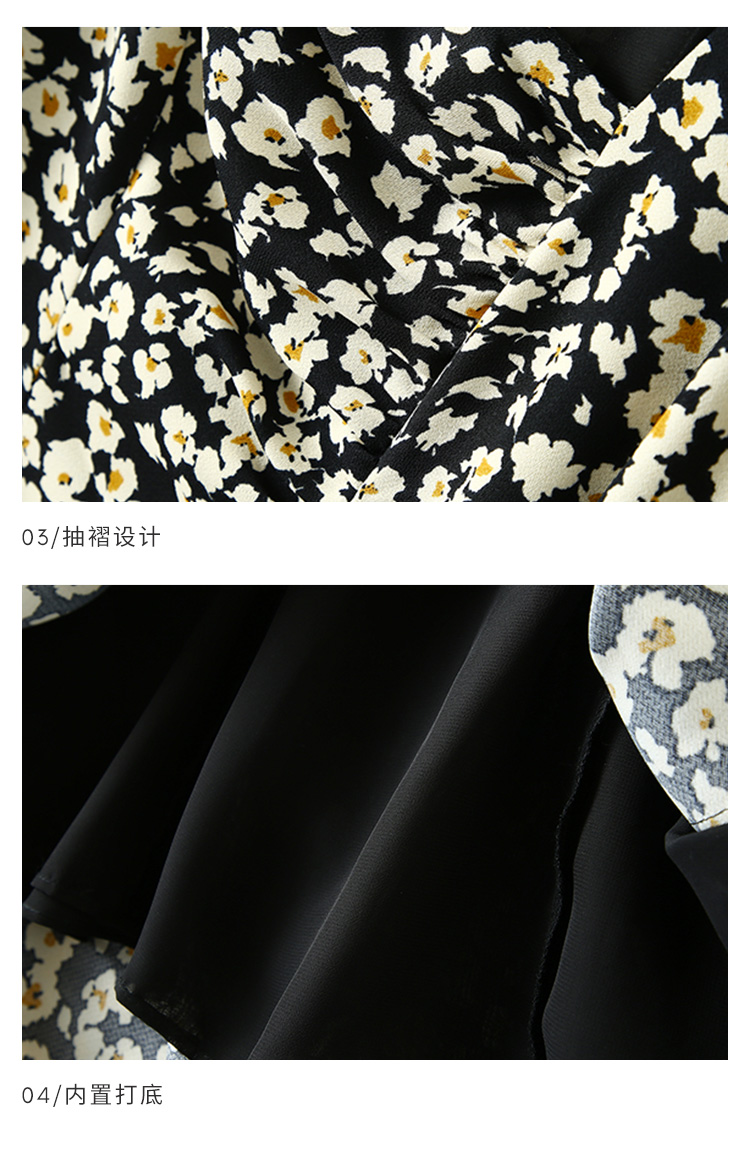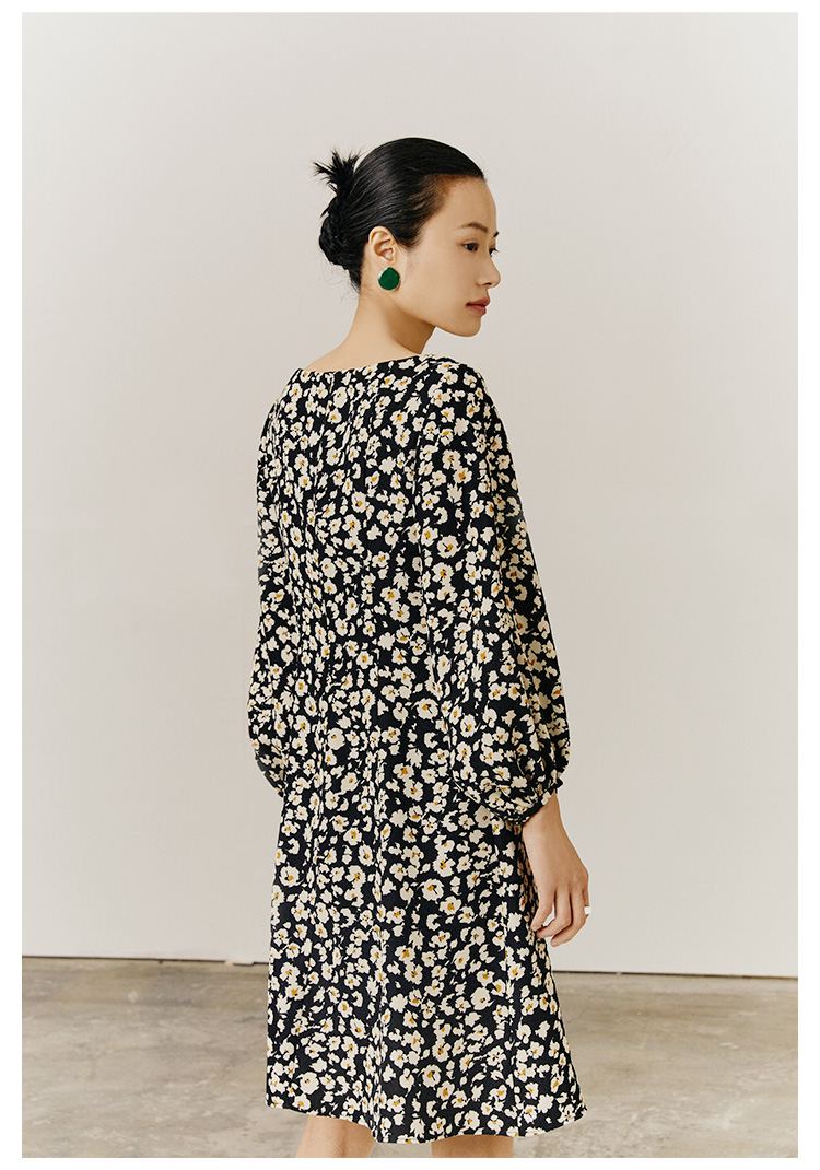 HeyDress斜领碎花连衣裙女抽褶显瘦设计感中长款裙子