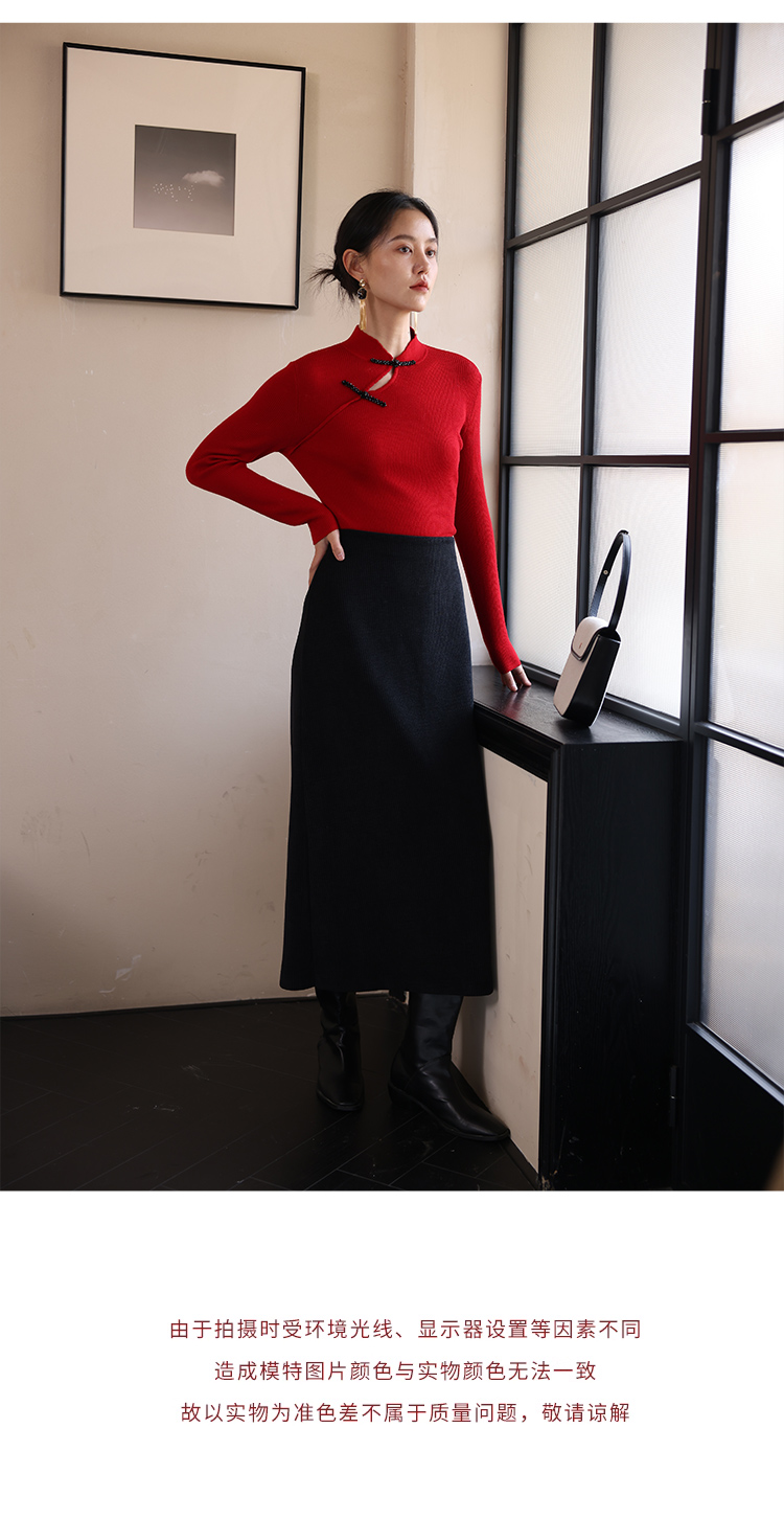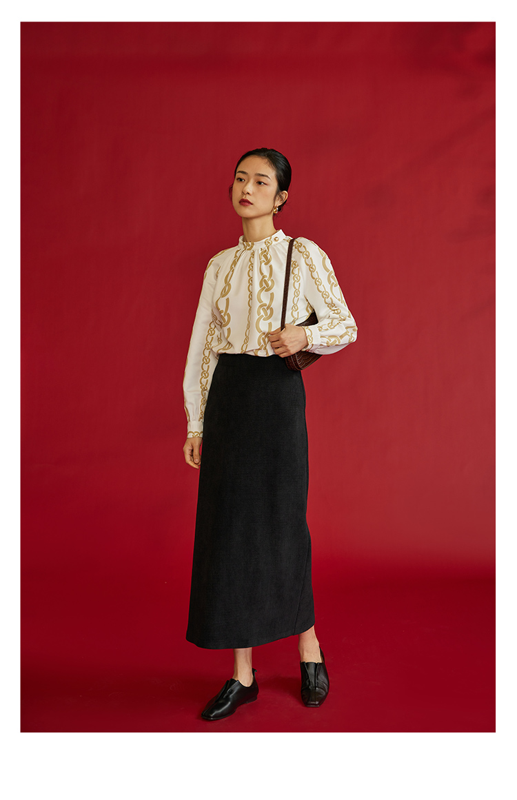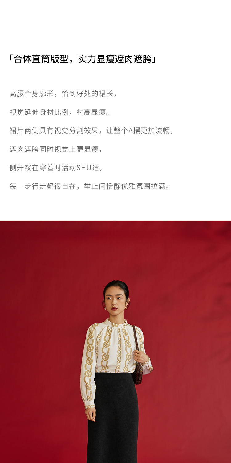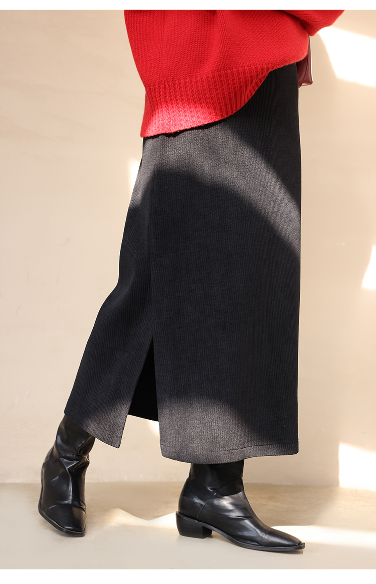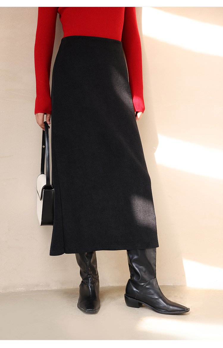 HeyDress黑色欧棉绒半身裙女秋冬法式复古高腰显瘦开叉直筒半裙