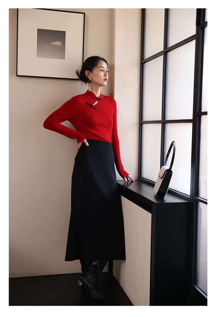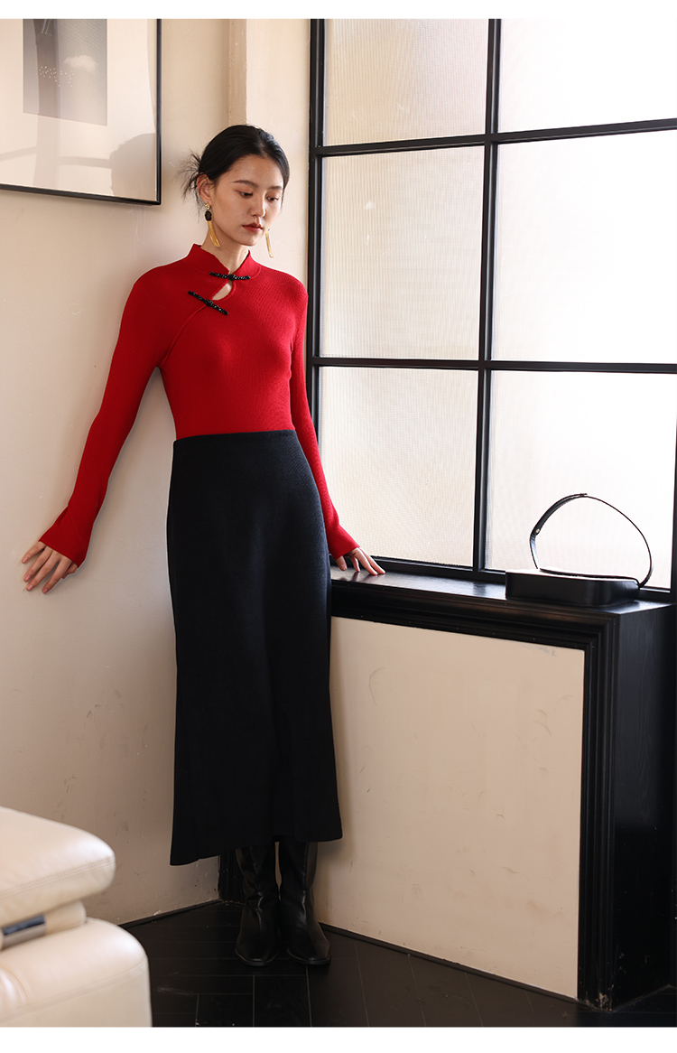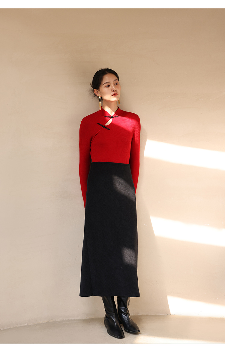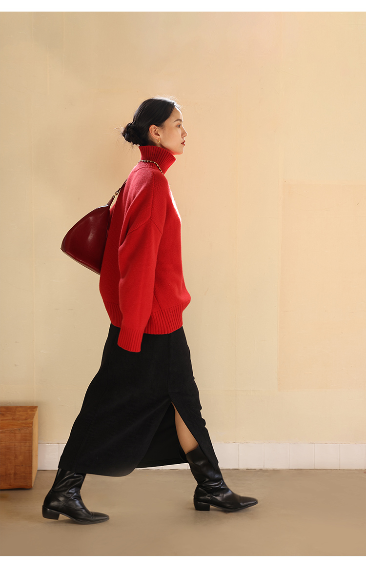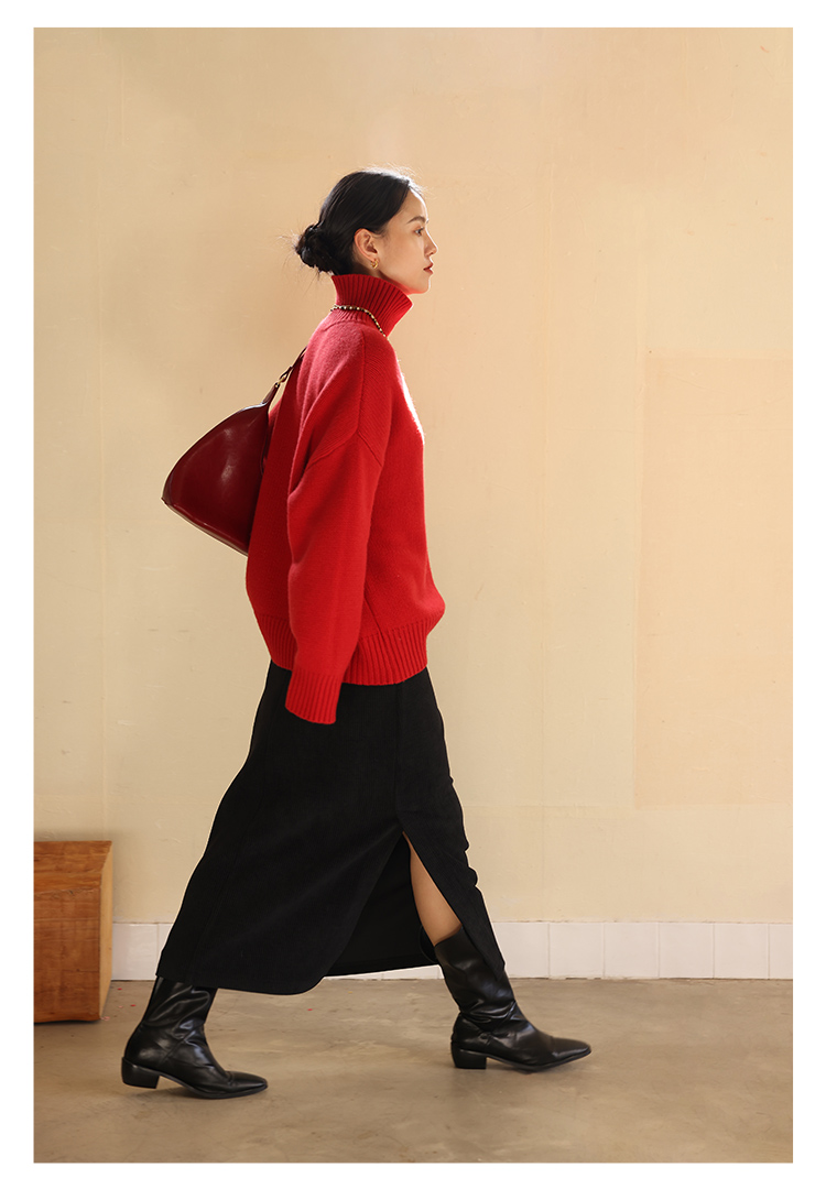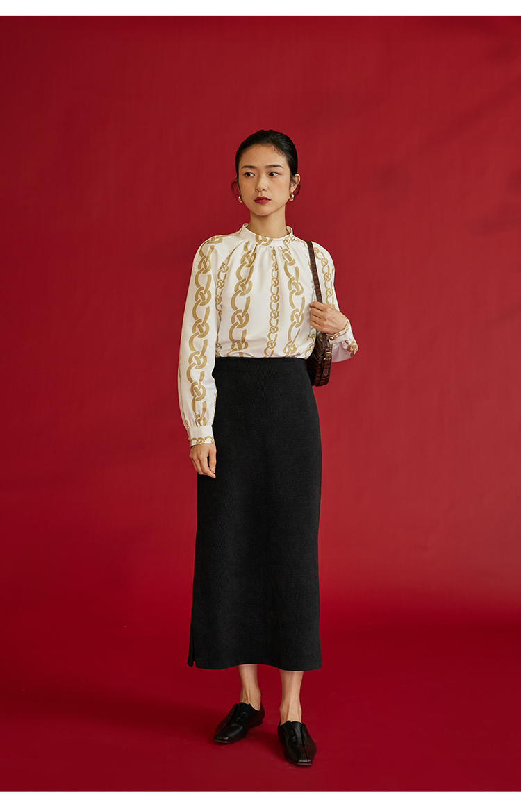 HeyDress黑色欧棉绒半身裙女秋冬法式复古高腰显瘦开叉直筒半裙