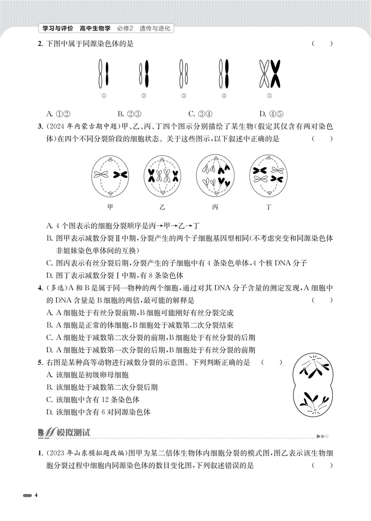 2025年 学习与评价 高中生物学 苏教版必修2 遗传与进化 高中教辅 江苏凤凰教育出版社