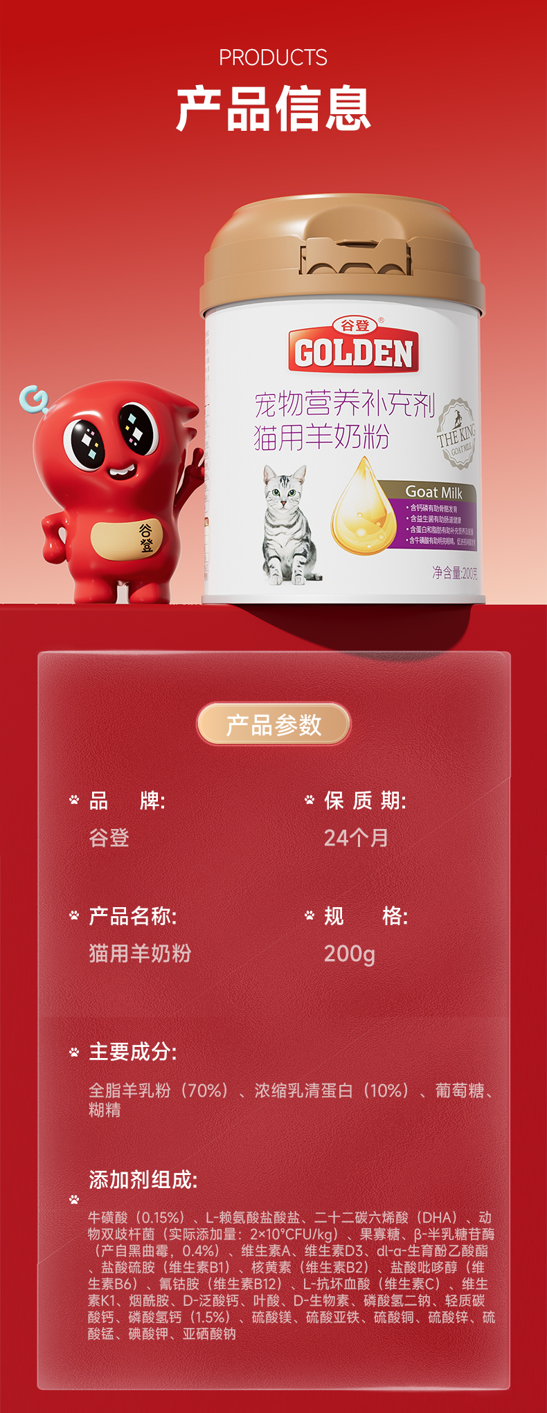 【2罐加送赠品 需要奶瓶下单备注】谷登羊奶粉(猫用)200g