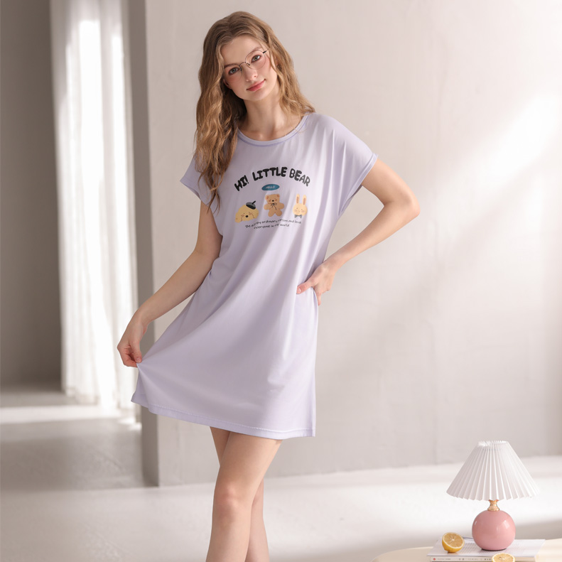 芬腾睡裙女士夏季薄款短袖睡衣短裙女款宽松休闲卡通可爱家居服