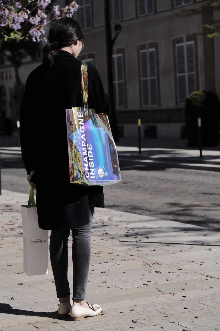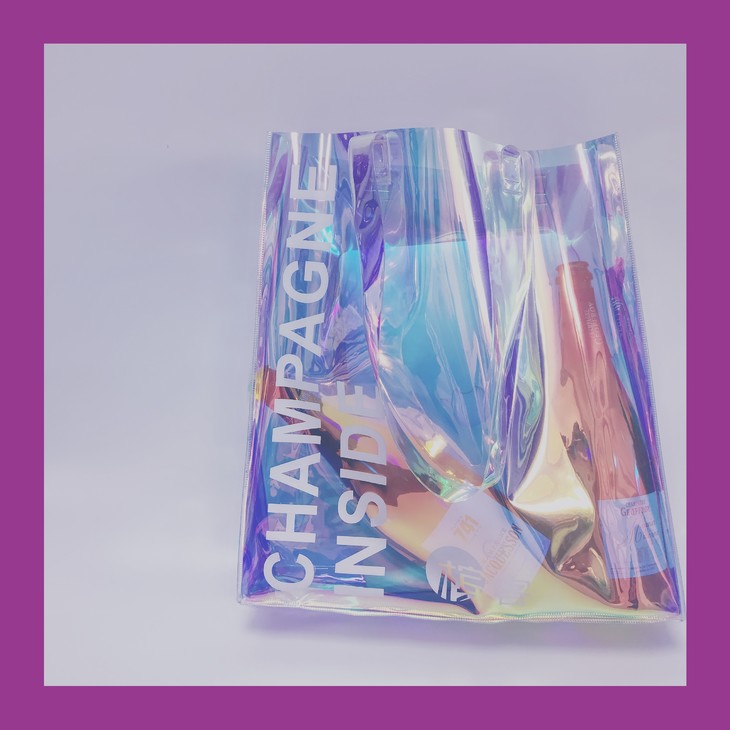 包包鉴赏词:槟客限量定制,专属香槟女神们的炫彩香槟包袋,超大容量,电脑、文件、杂志、香槟、通通都能放进美美的香槟包袋里!