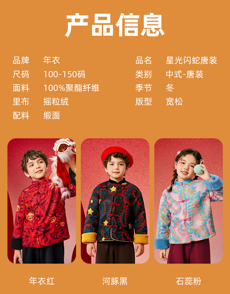 【开团】年衣 蛇年生肖儿童唐装外套 宝宝冬装演出服国风中式男女童生肖上衣棉服下单送独占鳌头拼图童装