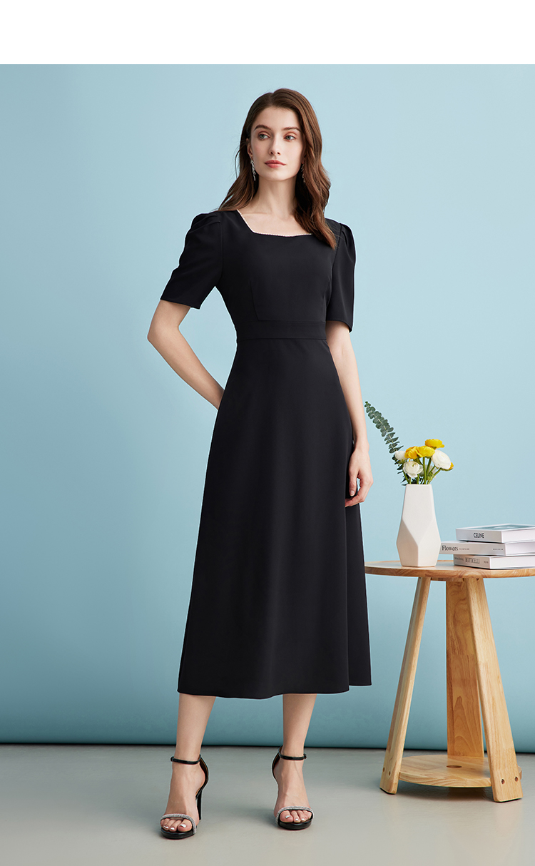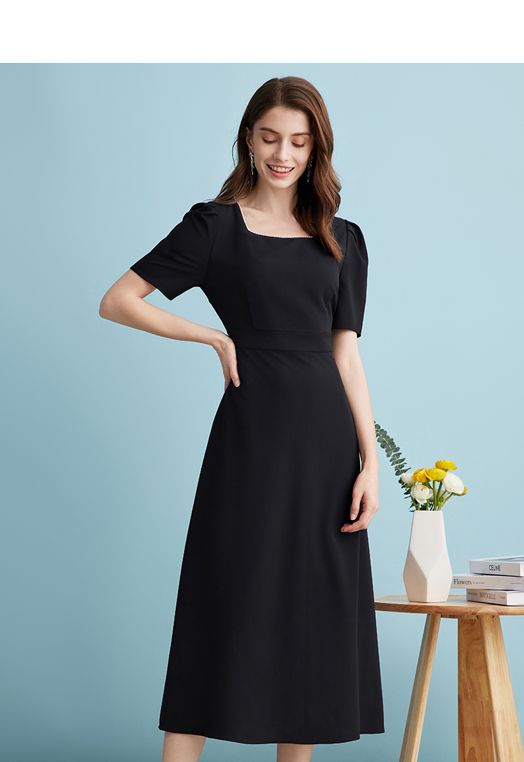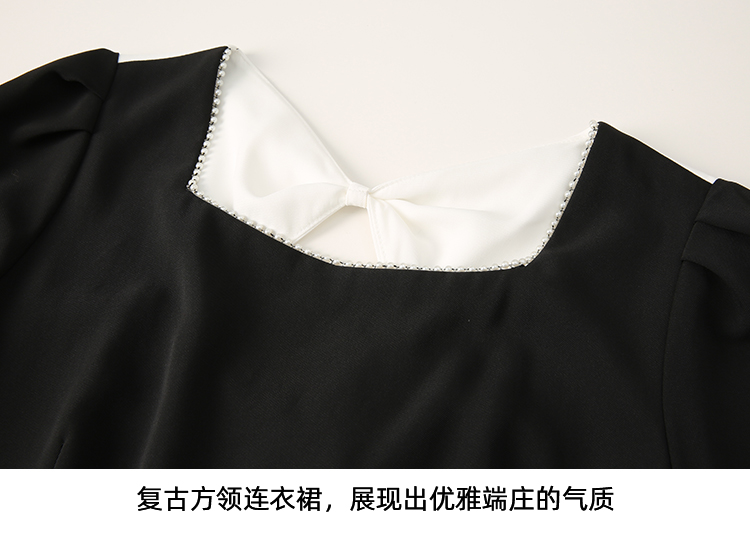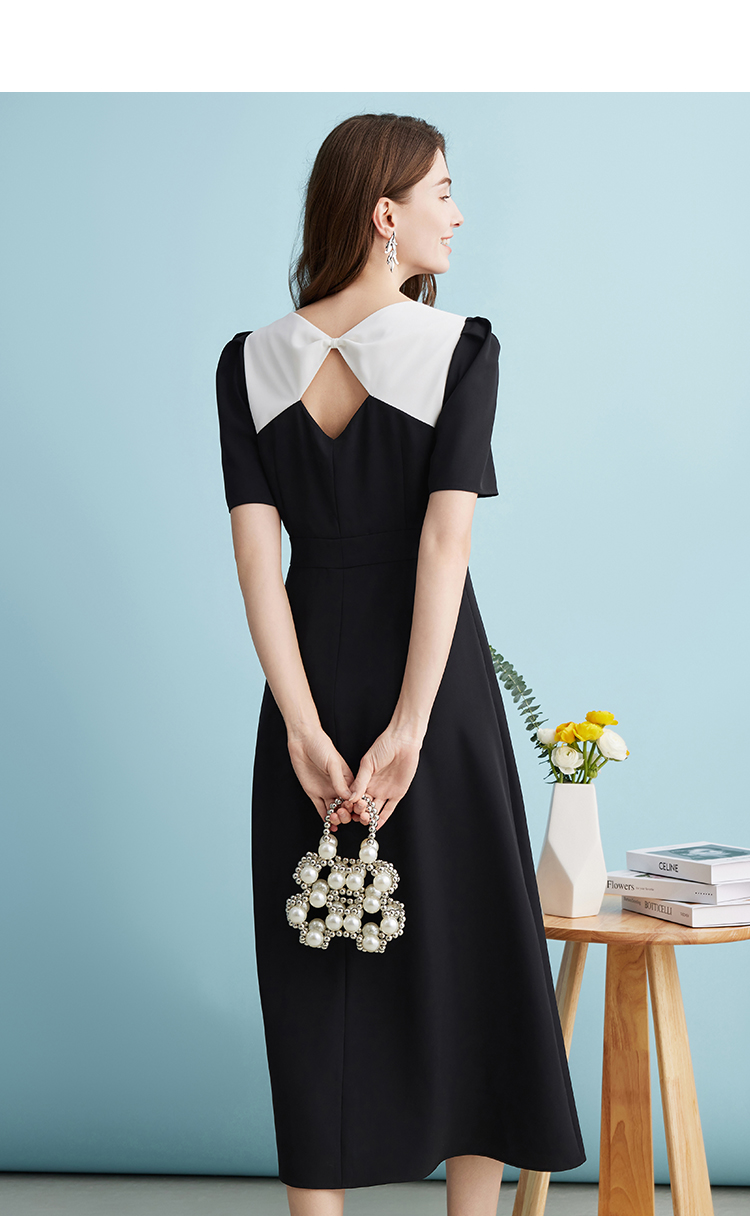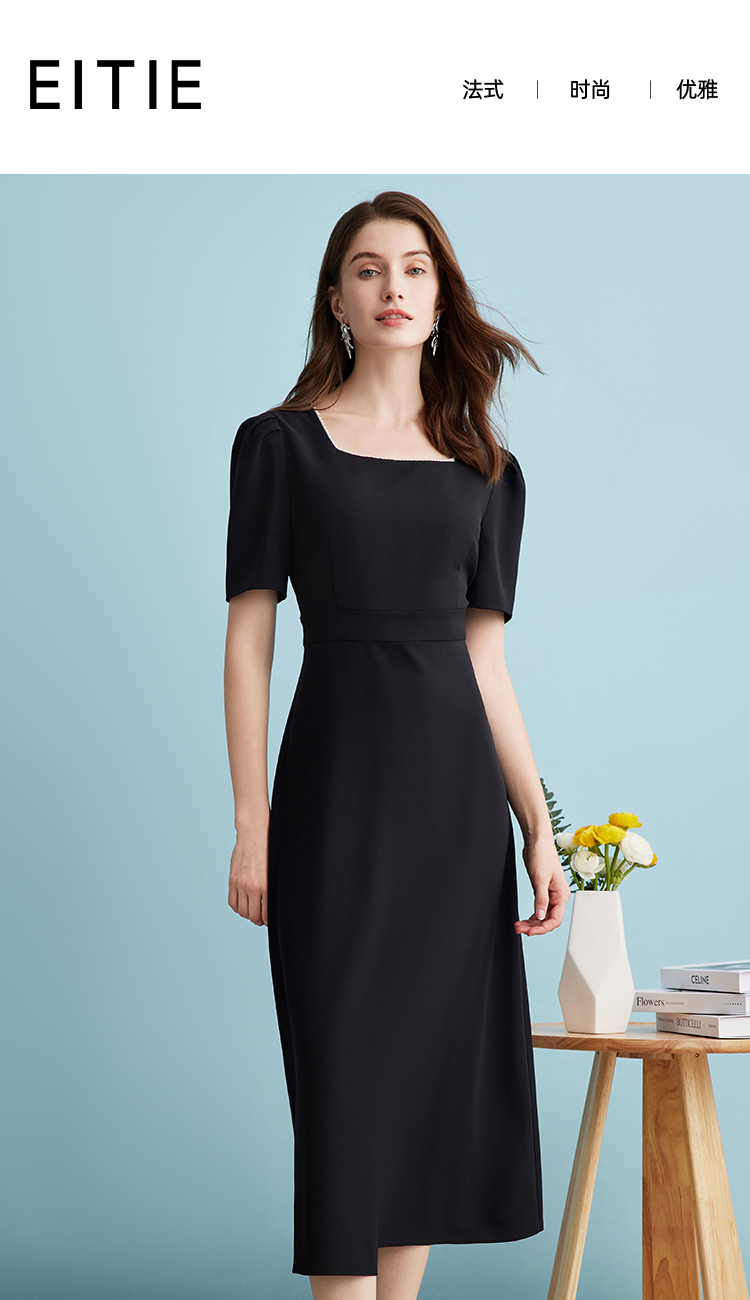 EITIE爱特爱气质方领蝴蝶结镂空收腰显瘦长裙连衣裙夏季新款B2407346