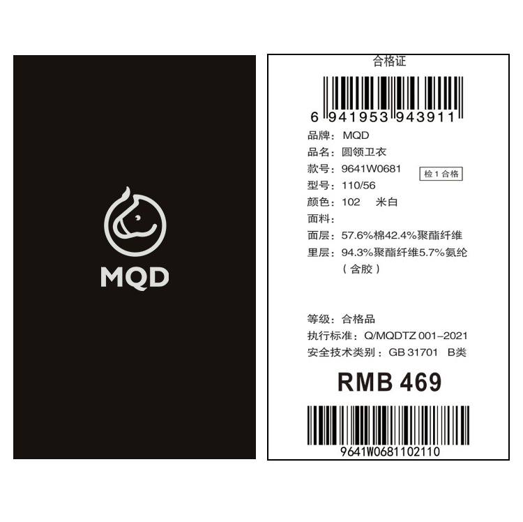 【MQD】童装儿童春新款学院风复古撞色字母休闲圆领卫衣9641W0681