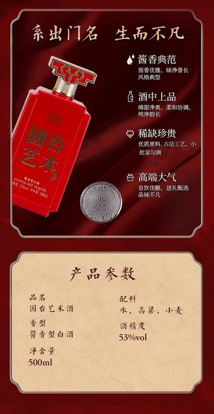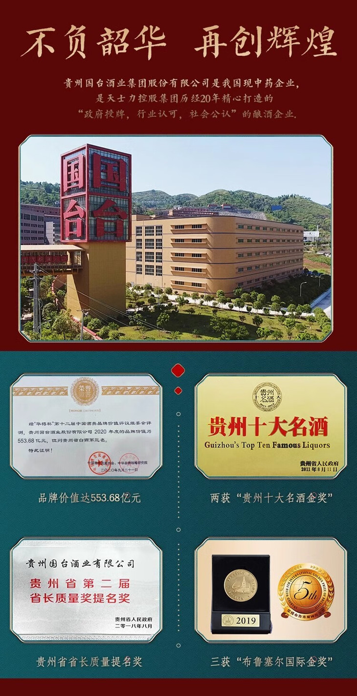 【2022年1月生产】国台酒 龙酒53度 500ml单瓶礼盒装 酱香型白酒