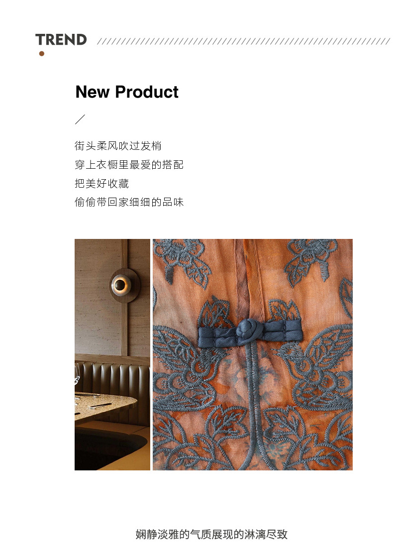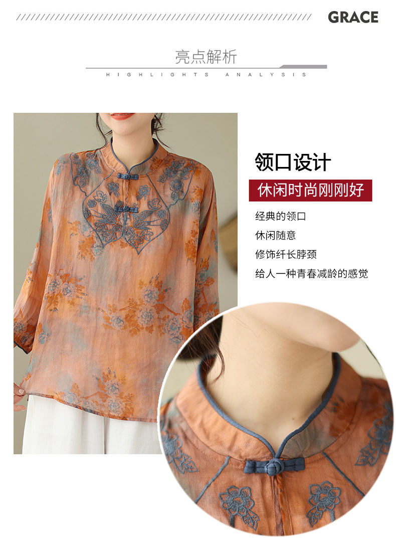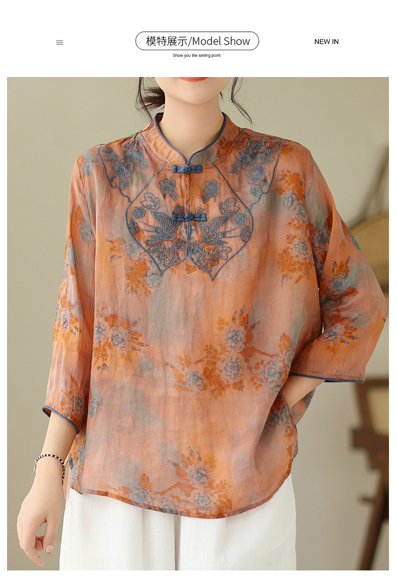 雀说 棉麻复古盘扣刺绣立领短袖衬衫上衣 C028-K9302