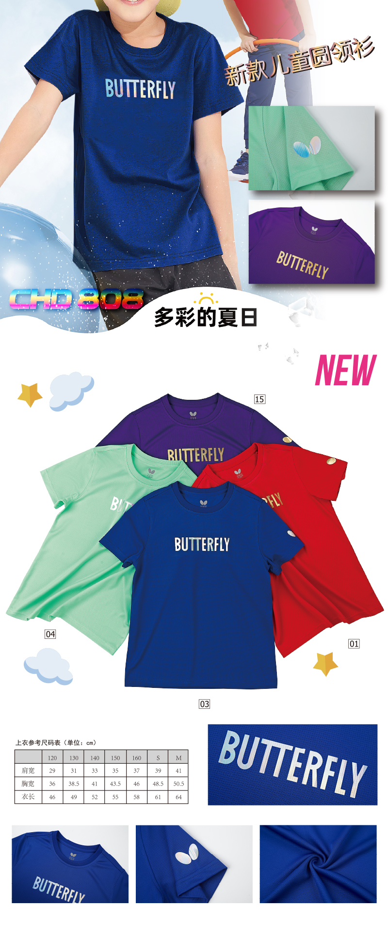 Butterfly蝴蝶儿童乒乓球服CHD-808专业儿童运动衫运动T恤速干面料透气排汗4色可选
