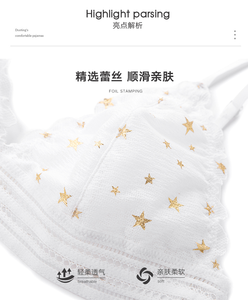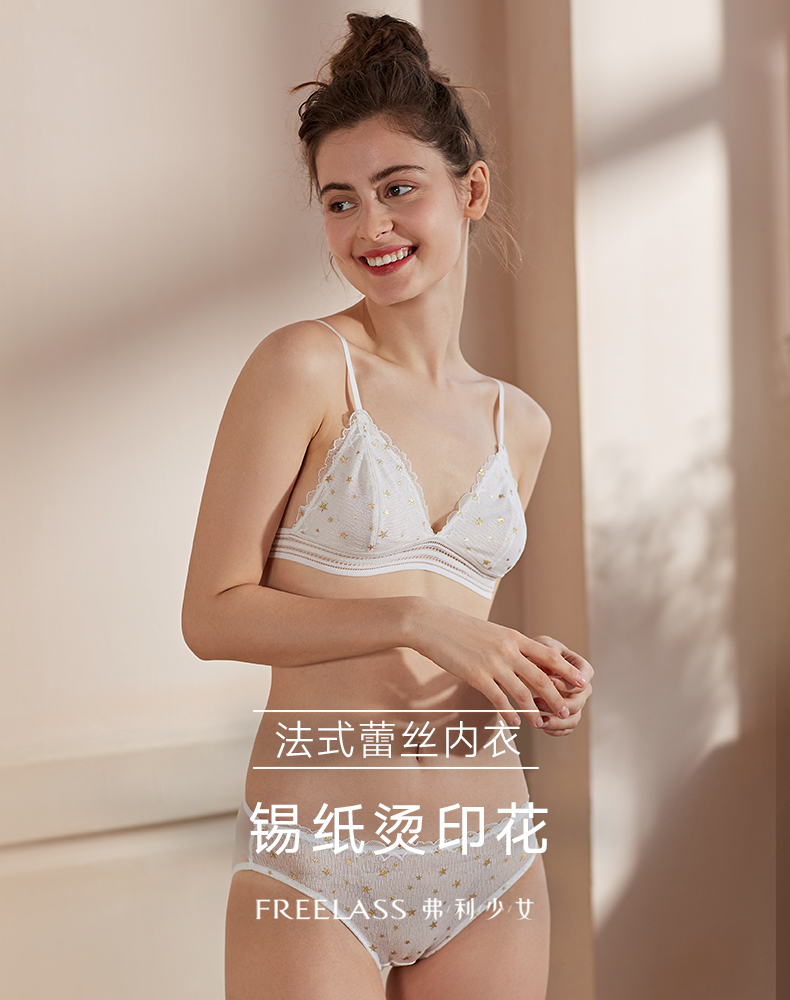 弗利少女法式三角杯内衣 夏季薄款文胸无钢圈小胸蕾丝美背胸罩女