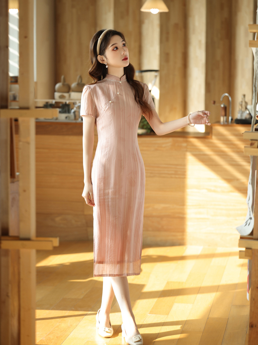 C2203新款中式礼服旗袍棉麻改良日常旗袍