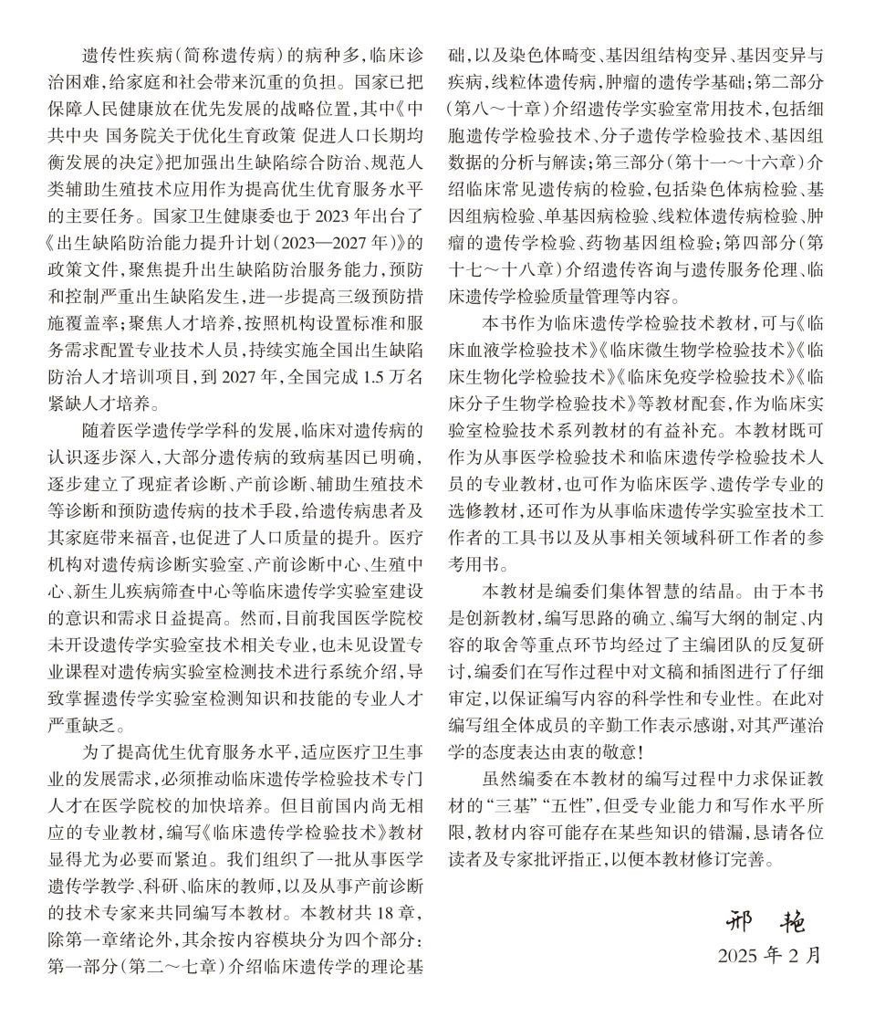 本书作为临床遗传学检验技术的专业教材,可与临床