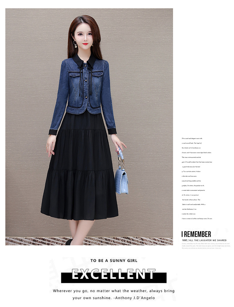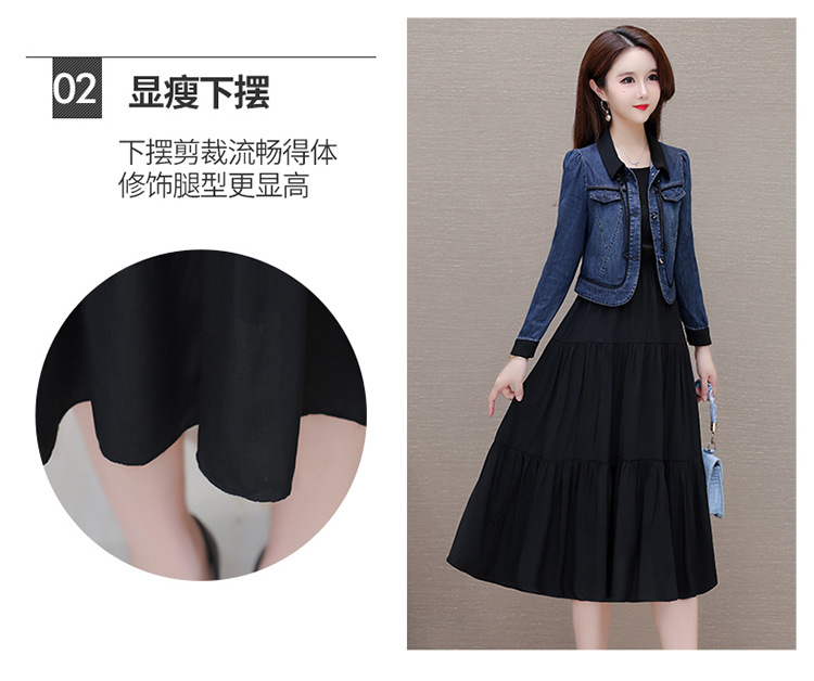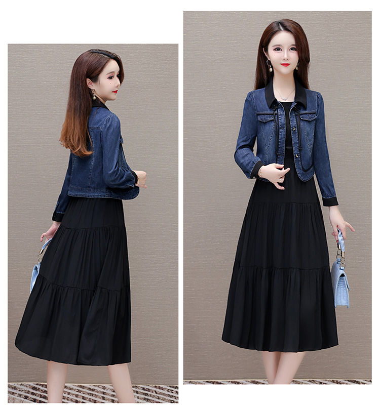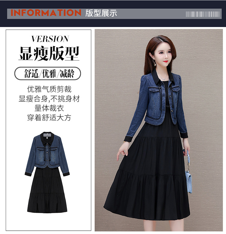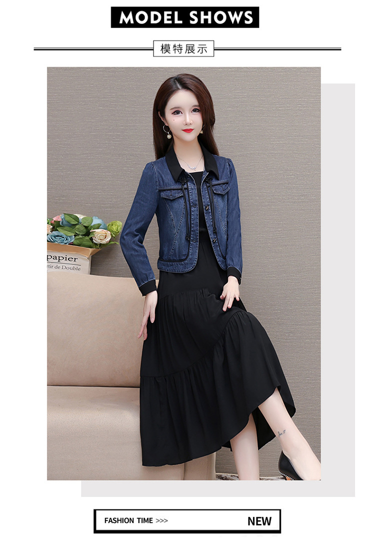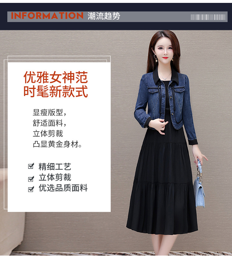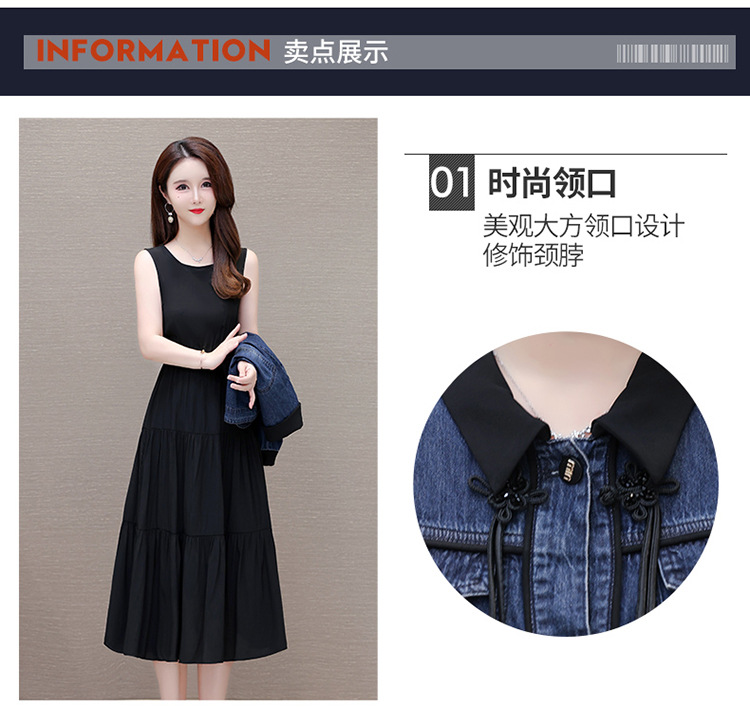 QYMJJ-6628036-Y 牛仔开衫外套无袖背心裙中长款连衣裙2024年新款小香风外套两件套
