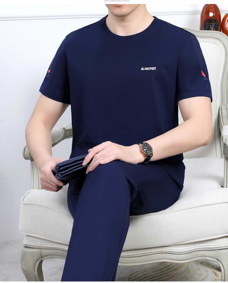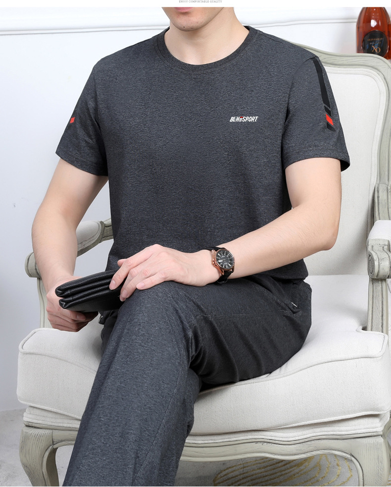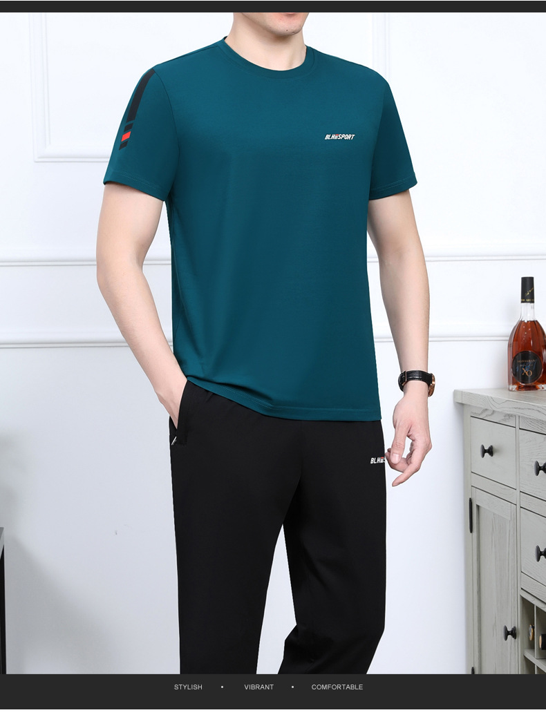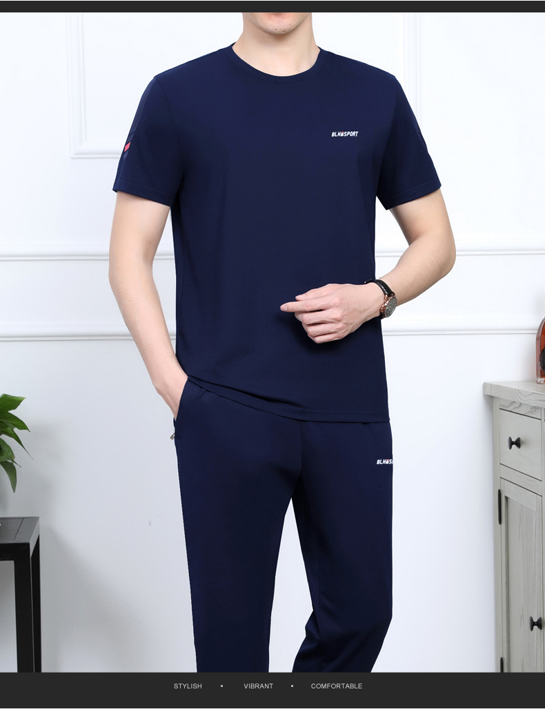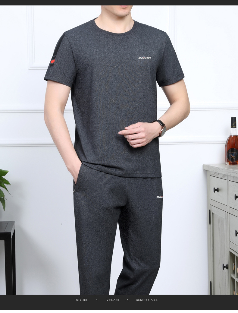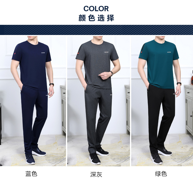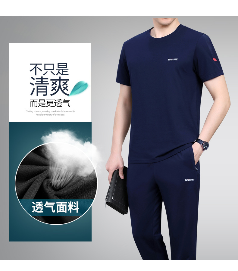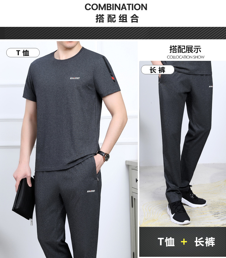 SP-149-2268夏季短袖长裤运动套装大码男士跑步休闲运动服爸爸半袖夏装