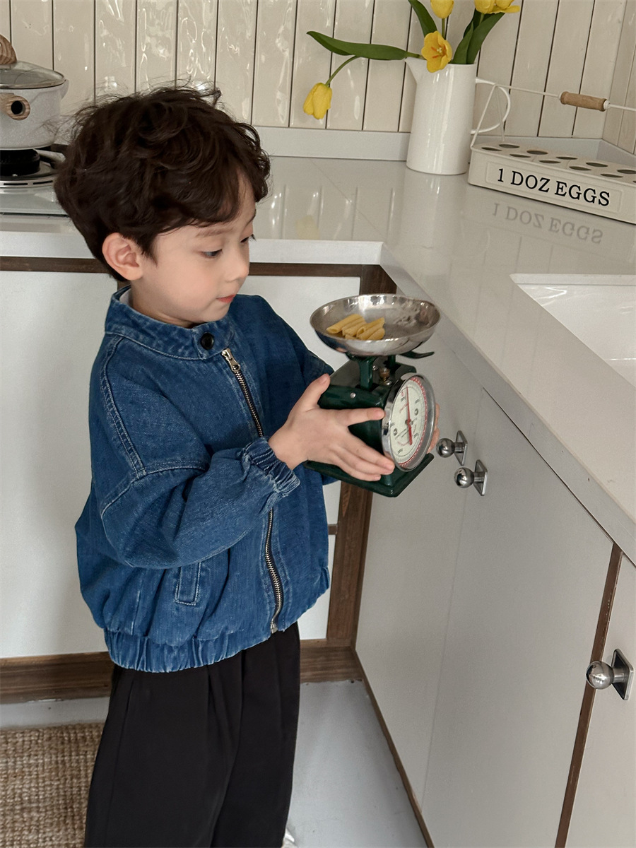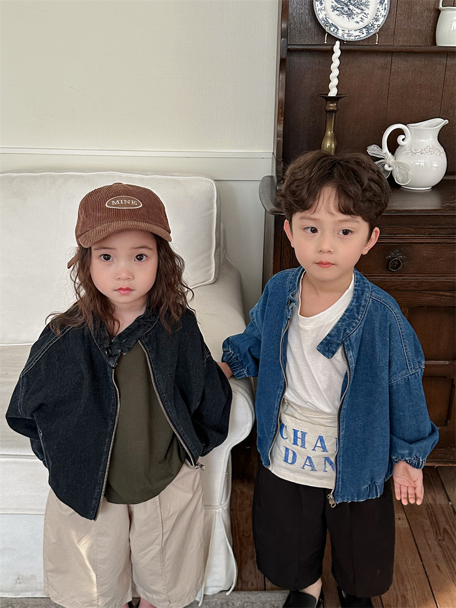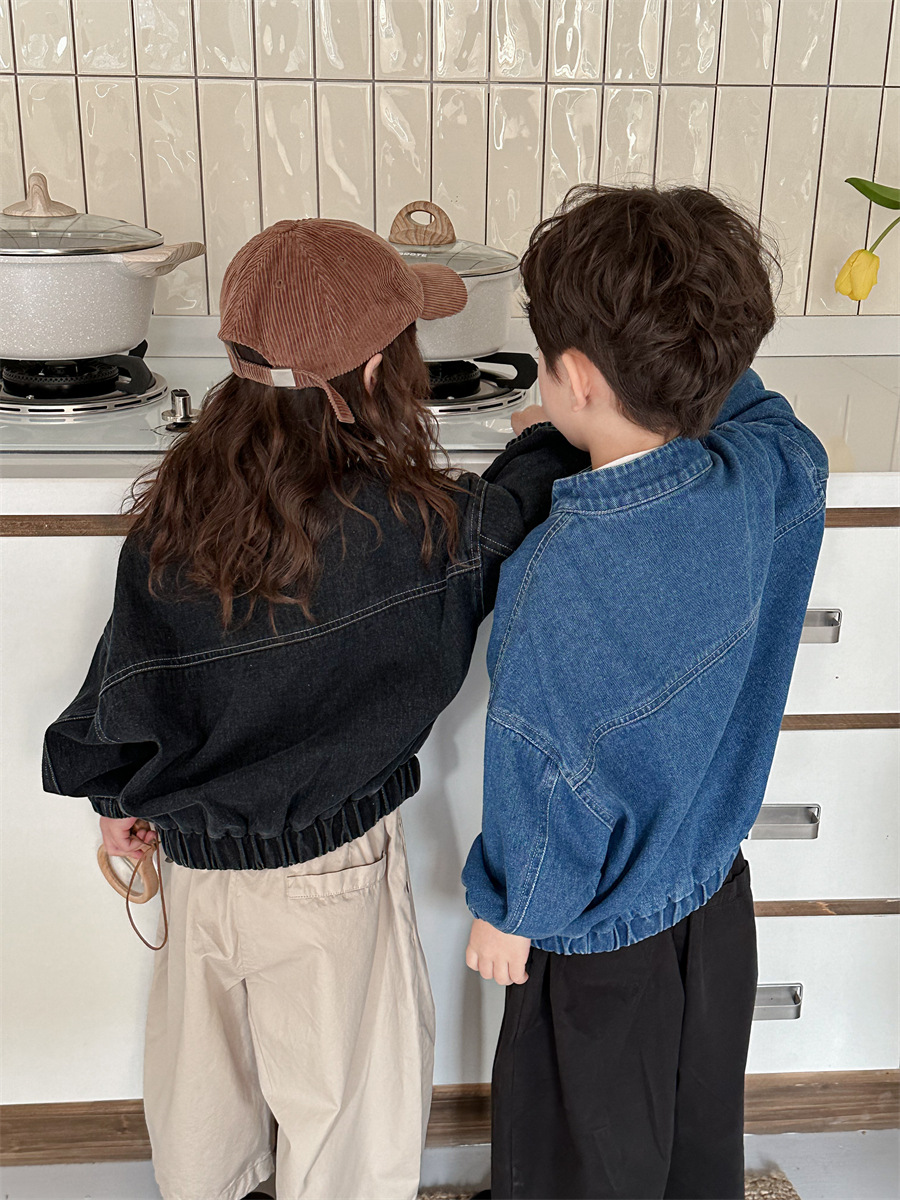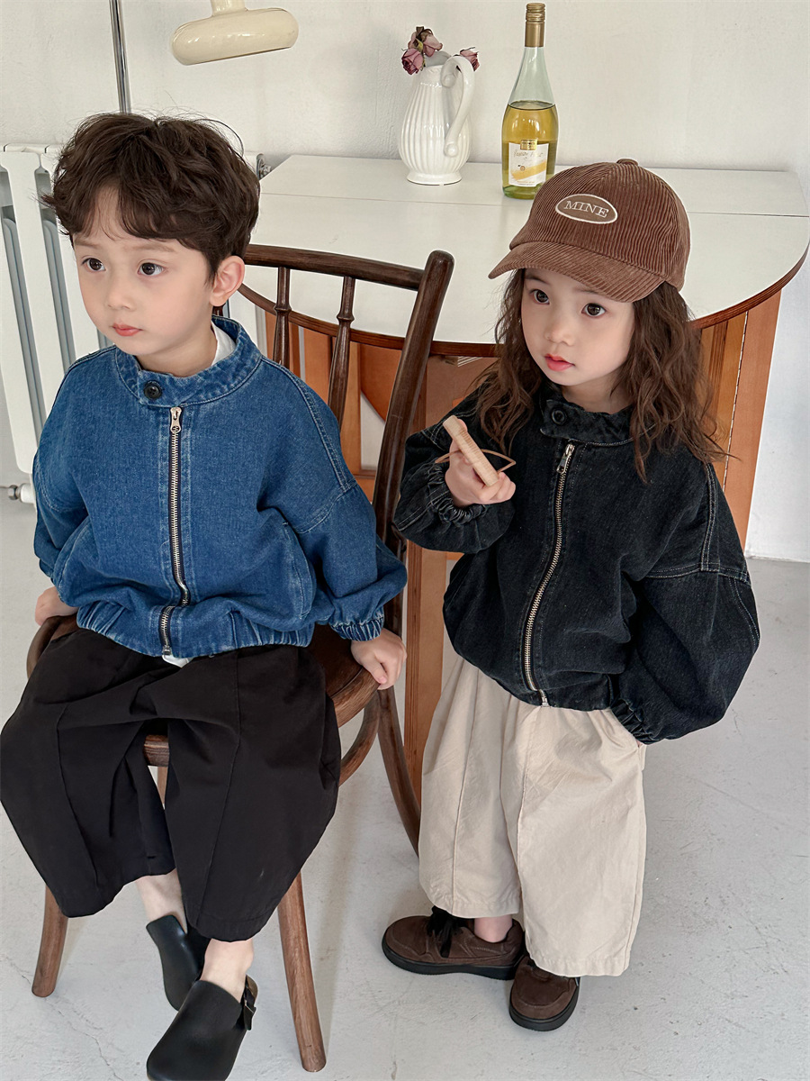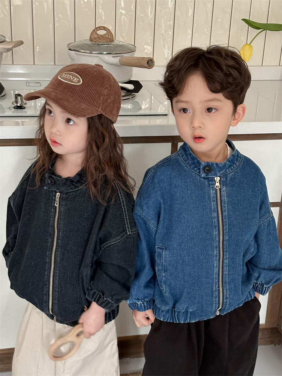 【简洁利落版型,率性潇洒~】2025儿童春季机车风 牛仔外套 男女宝宝百搭上衣 时髦夹克外套 男女同款-QQ