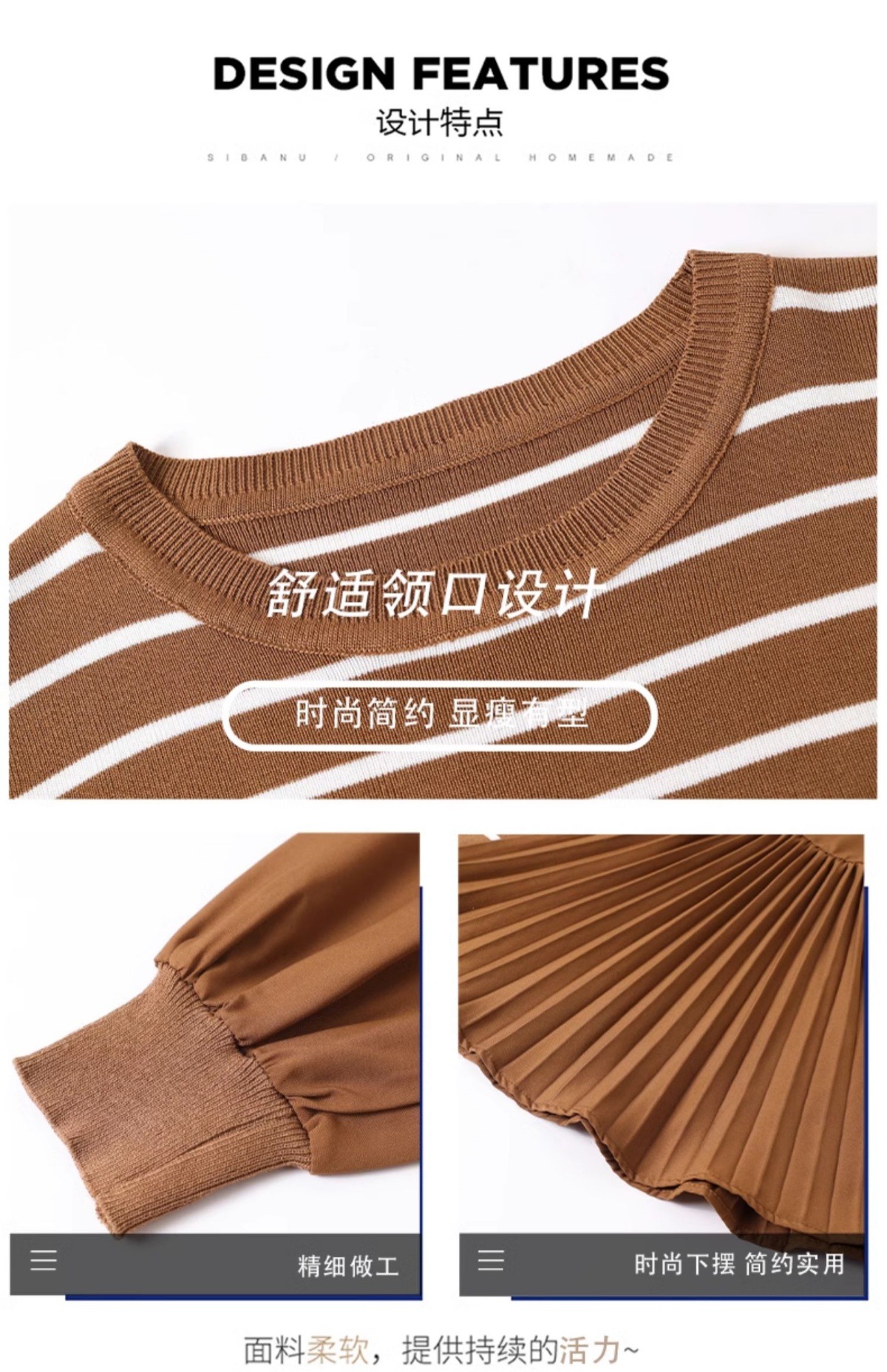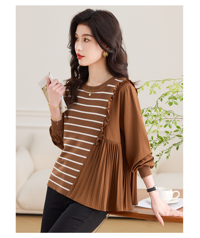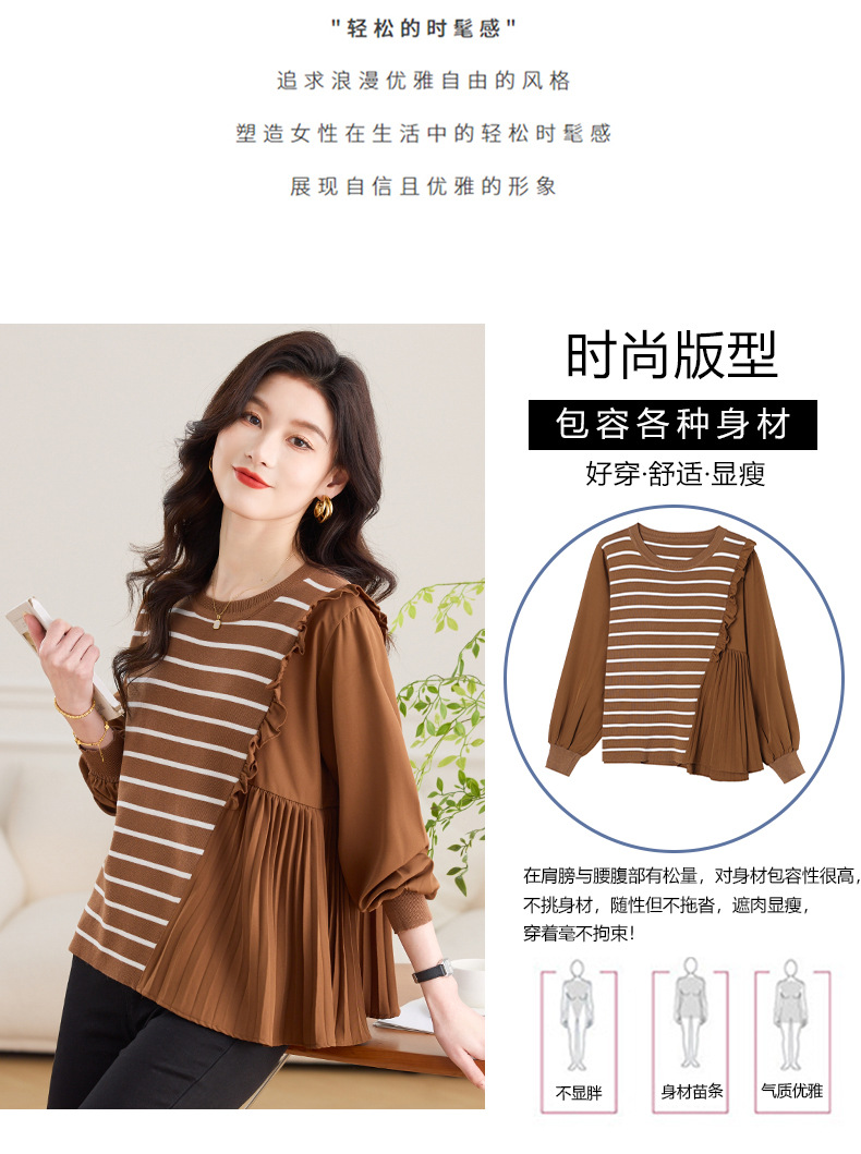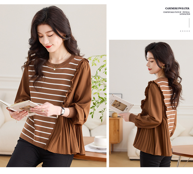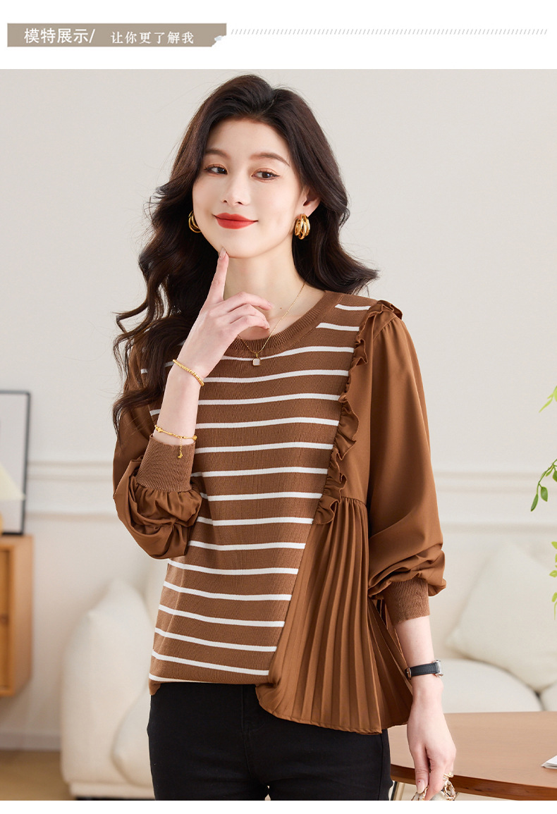CC-13-2802假两件黑白条纹针织拼接衬衫女士长袖2025春秋季新款宽松遮肉上衣