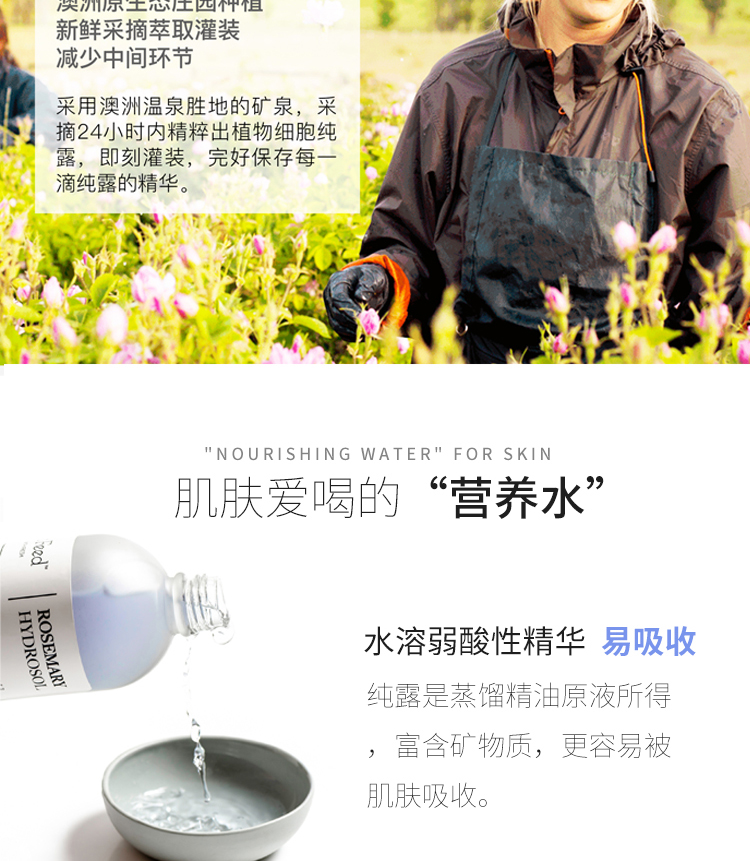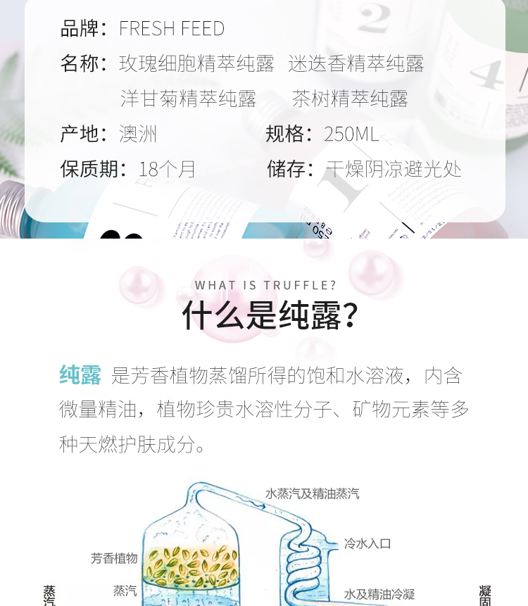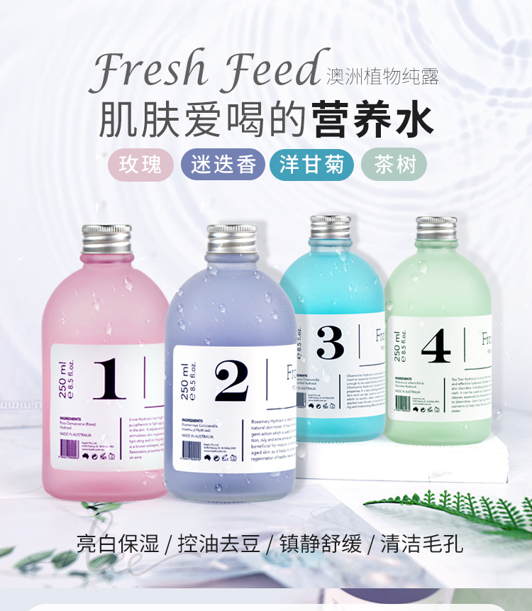 现货 澳洲Fresh Feed玫瑰洋甘菊茶树马鞭草酮迷迭香纯露万用爽肤水