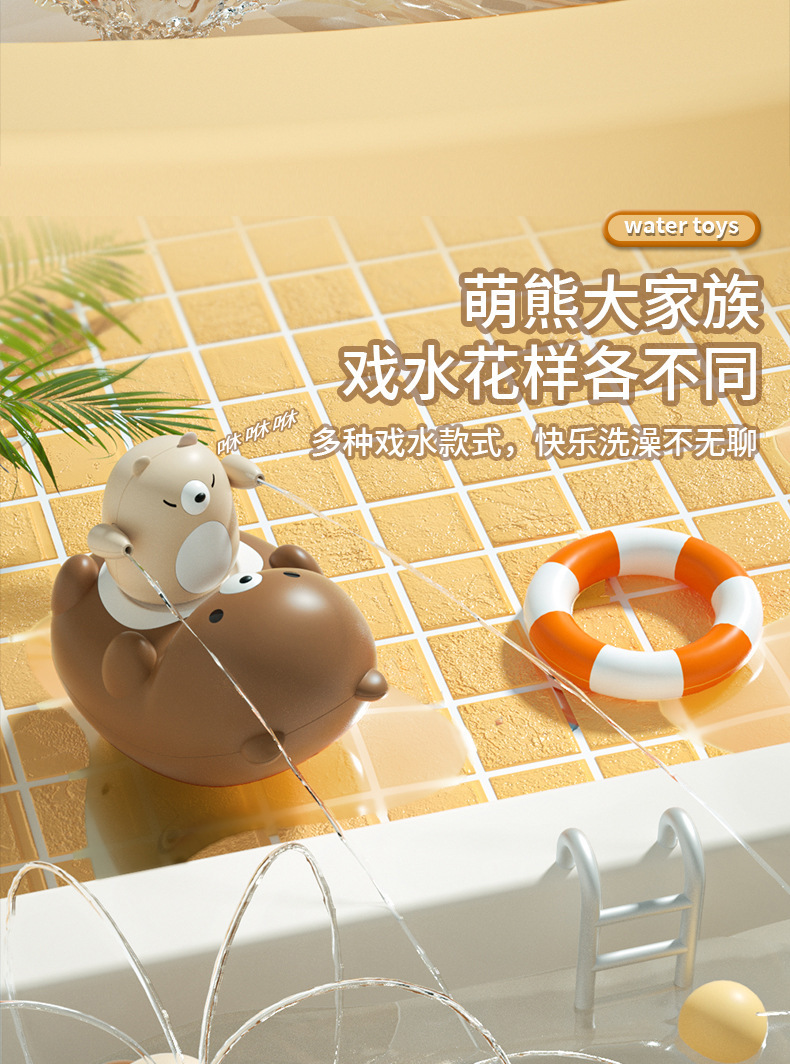【宝宝戏水小熊玩具】婴儿戏水玩具,电动喷水,小熊花洒宝宝浴室洗澡玩具,会游泳的动物